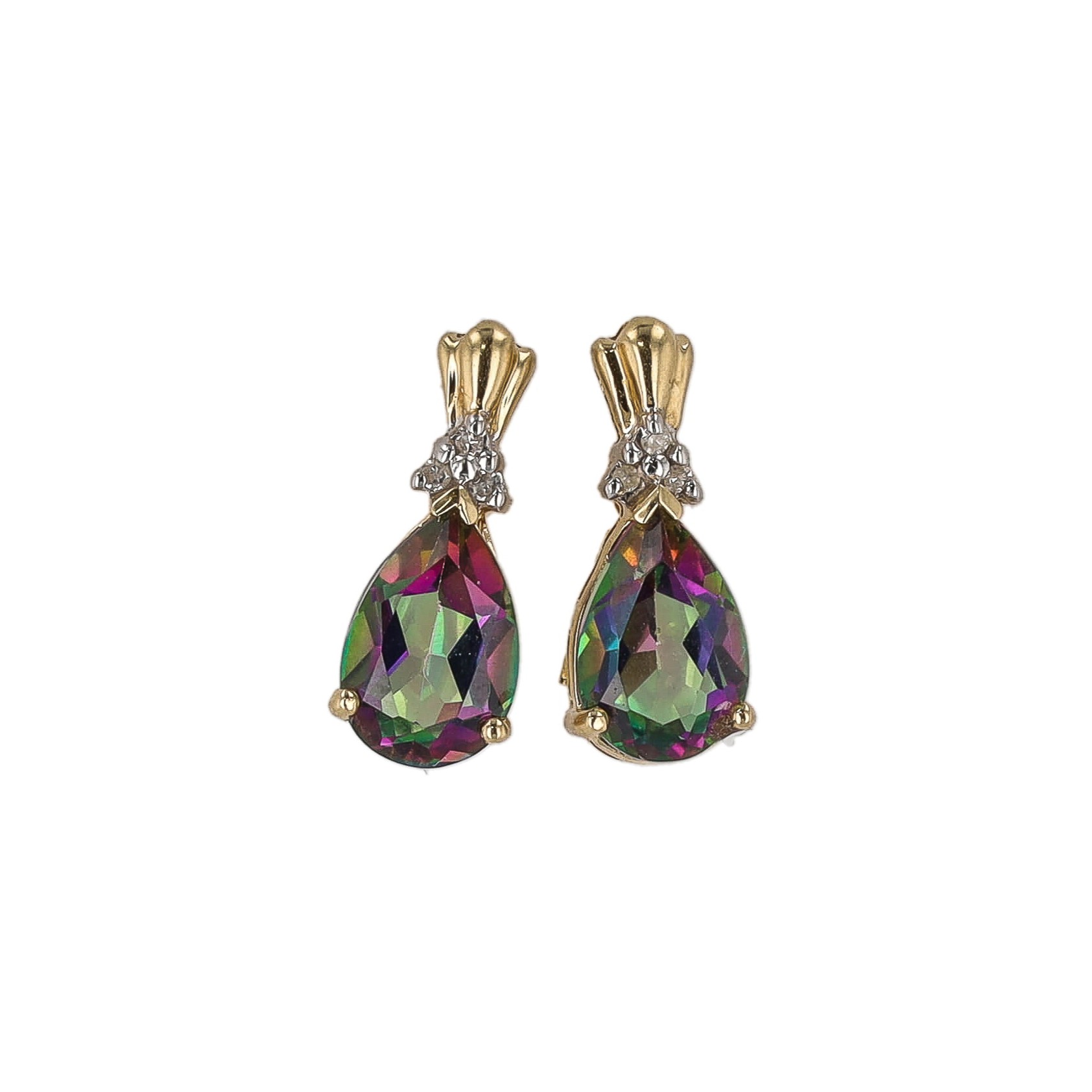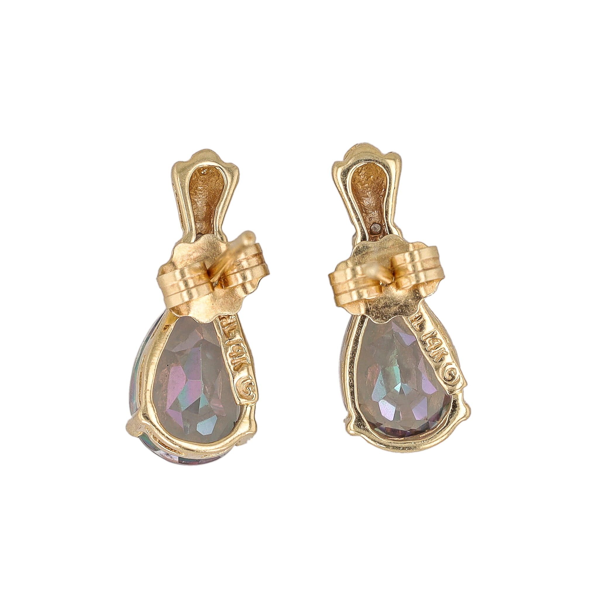Signed THL Mystic Topaz 14K Gold Earrings 2.2g, Approx 2 TCW