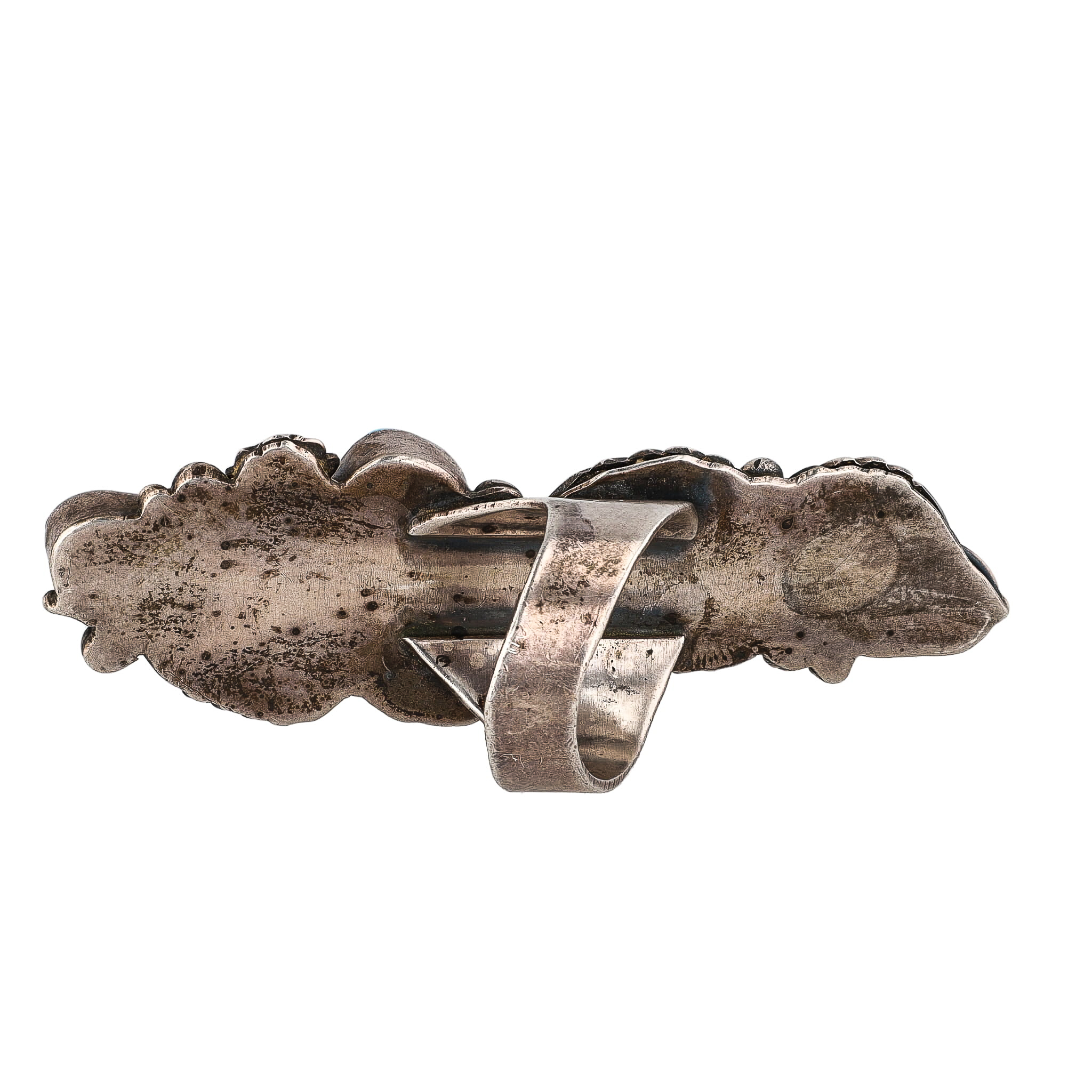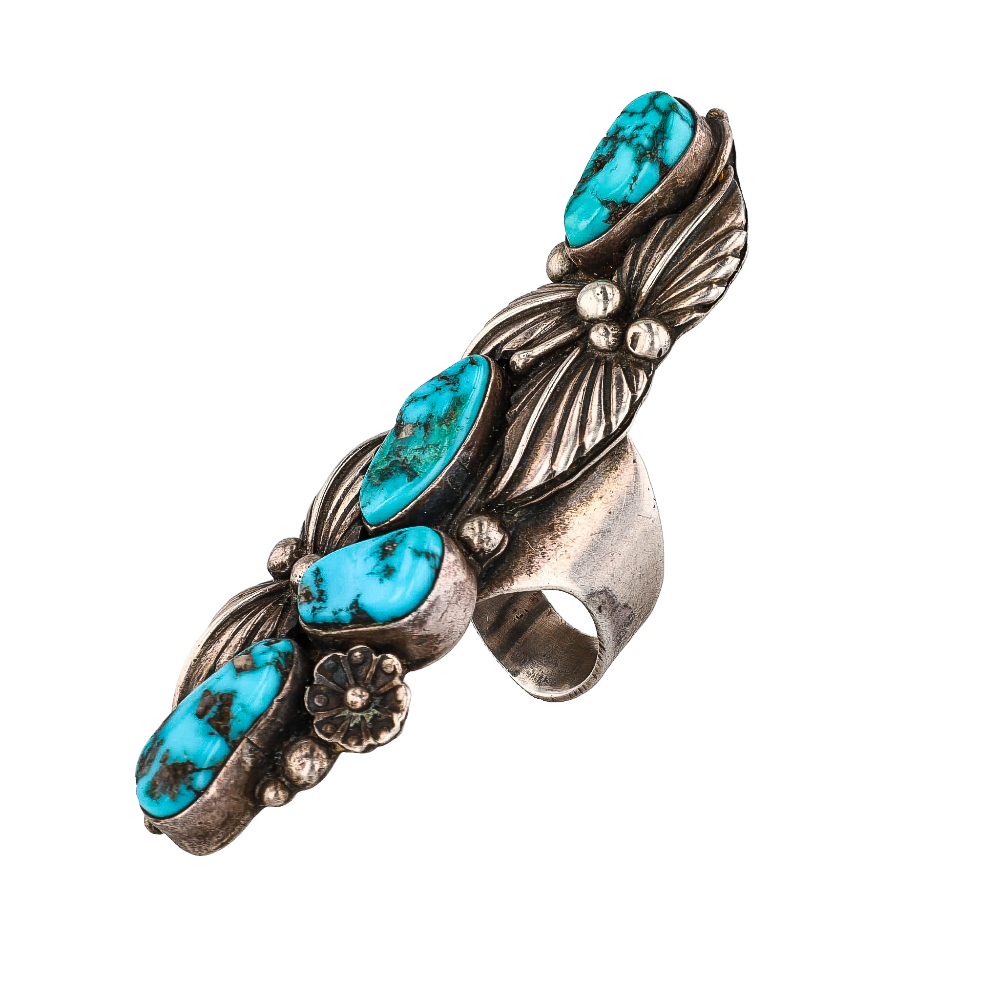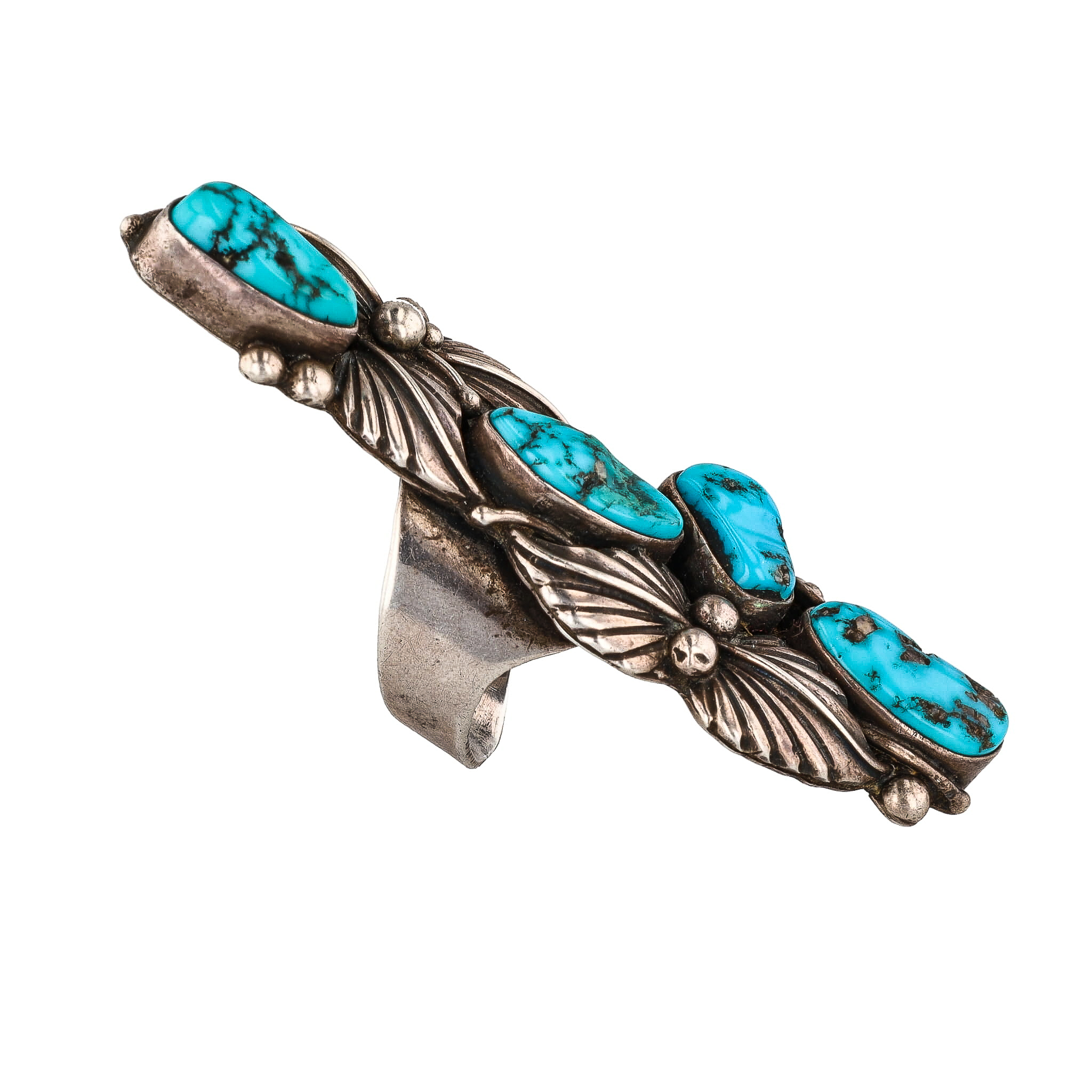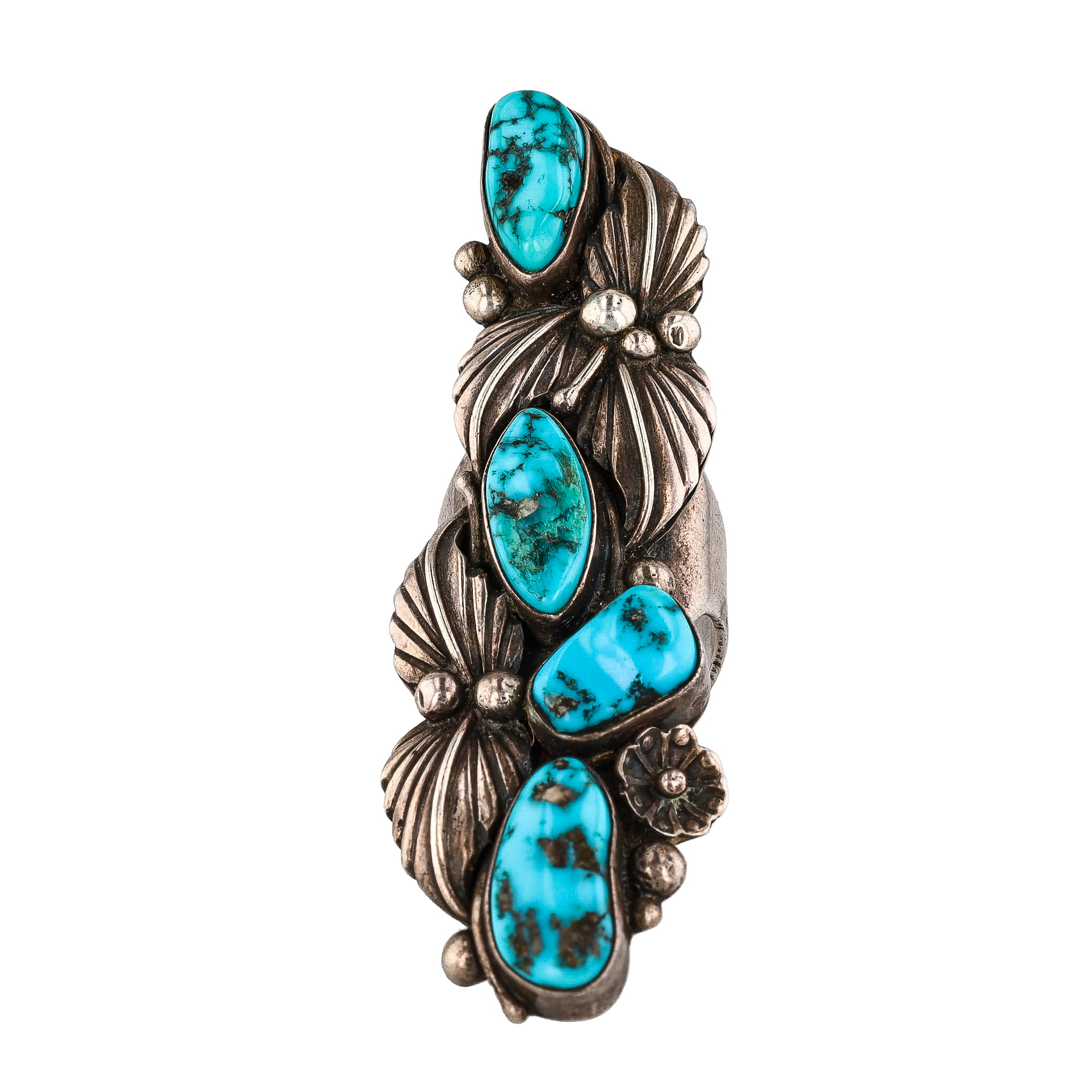 Robin Wood Navajo Turquoise Sterling Floral Blossom Ring Sz. 8, 26g