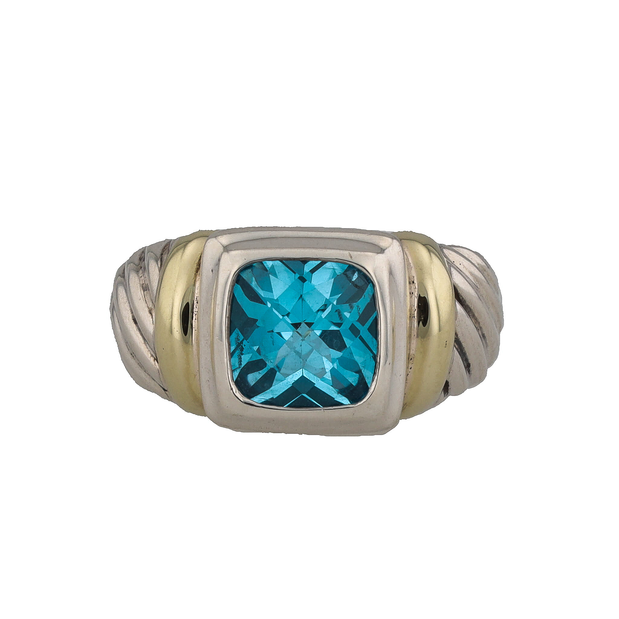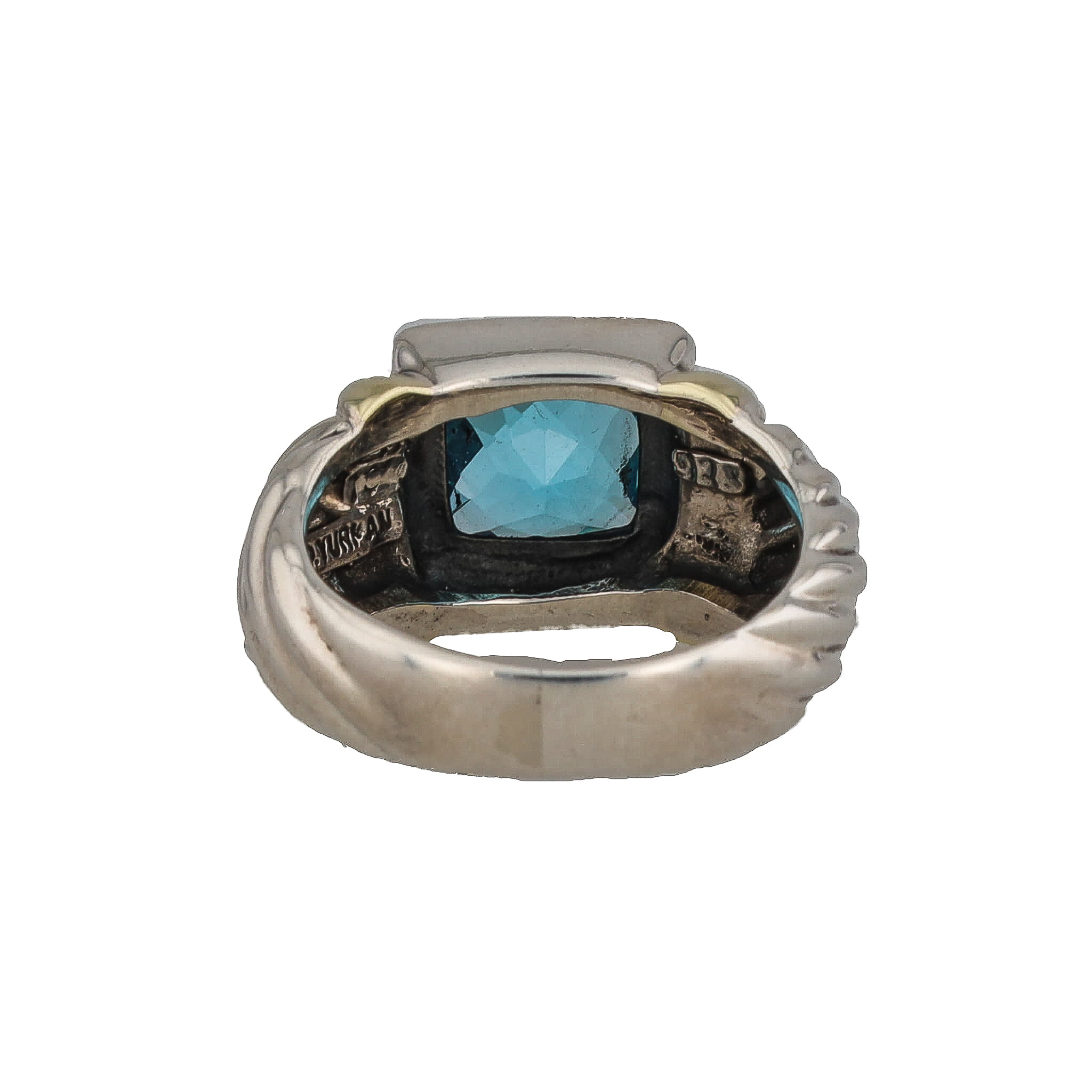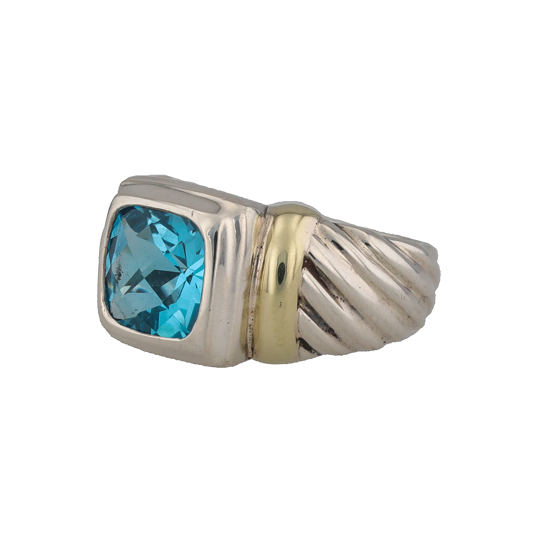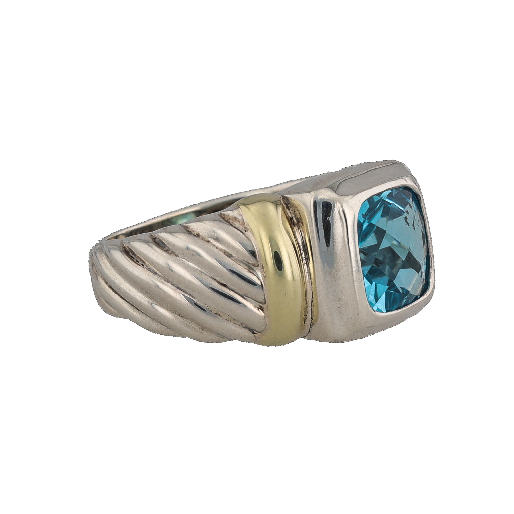 David Yurman Cushion Cut Topaz 14K Gold Sterling Silver Cocktail Ring Sz. 4.25, 6.2g Approx 2.25 TCW