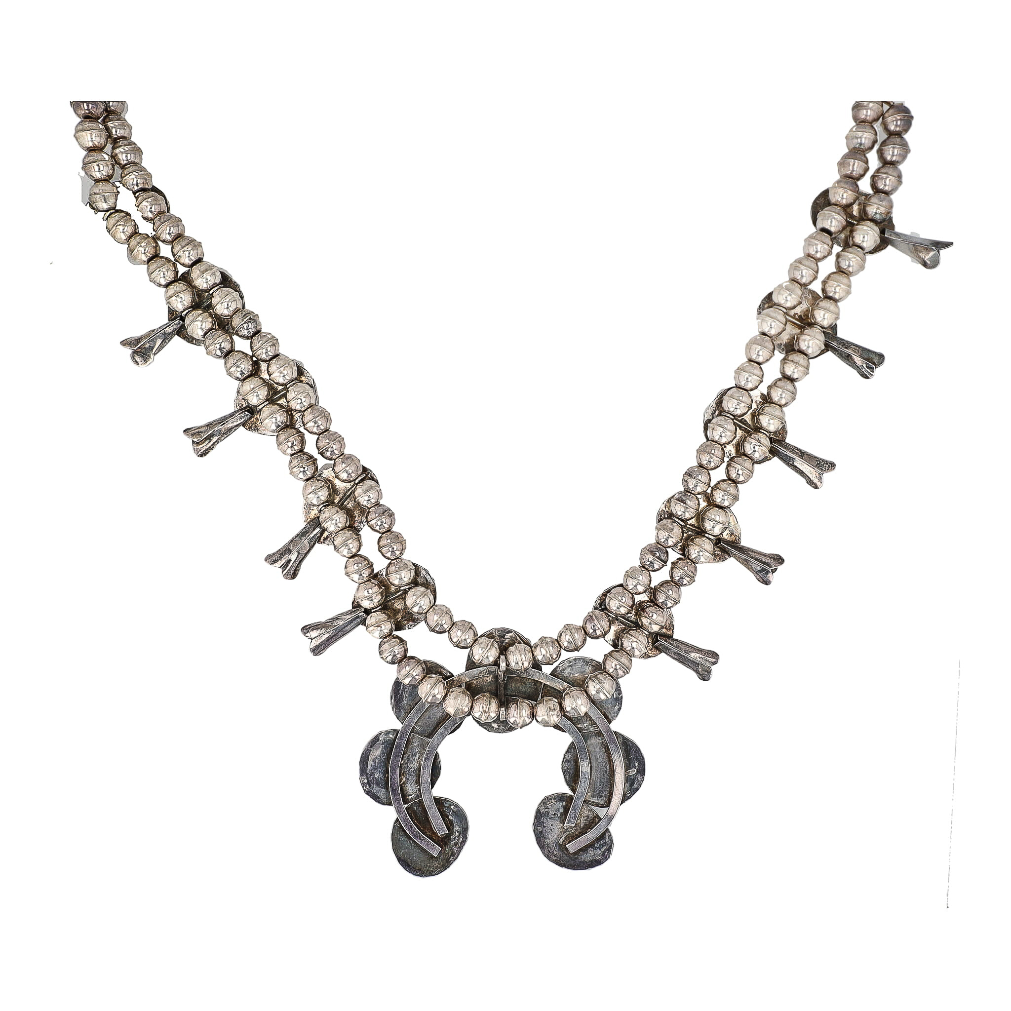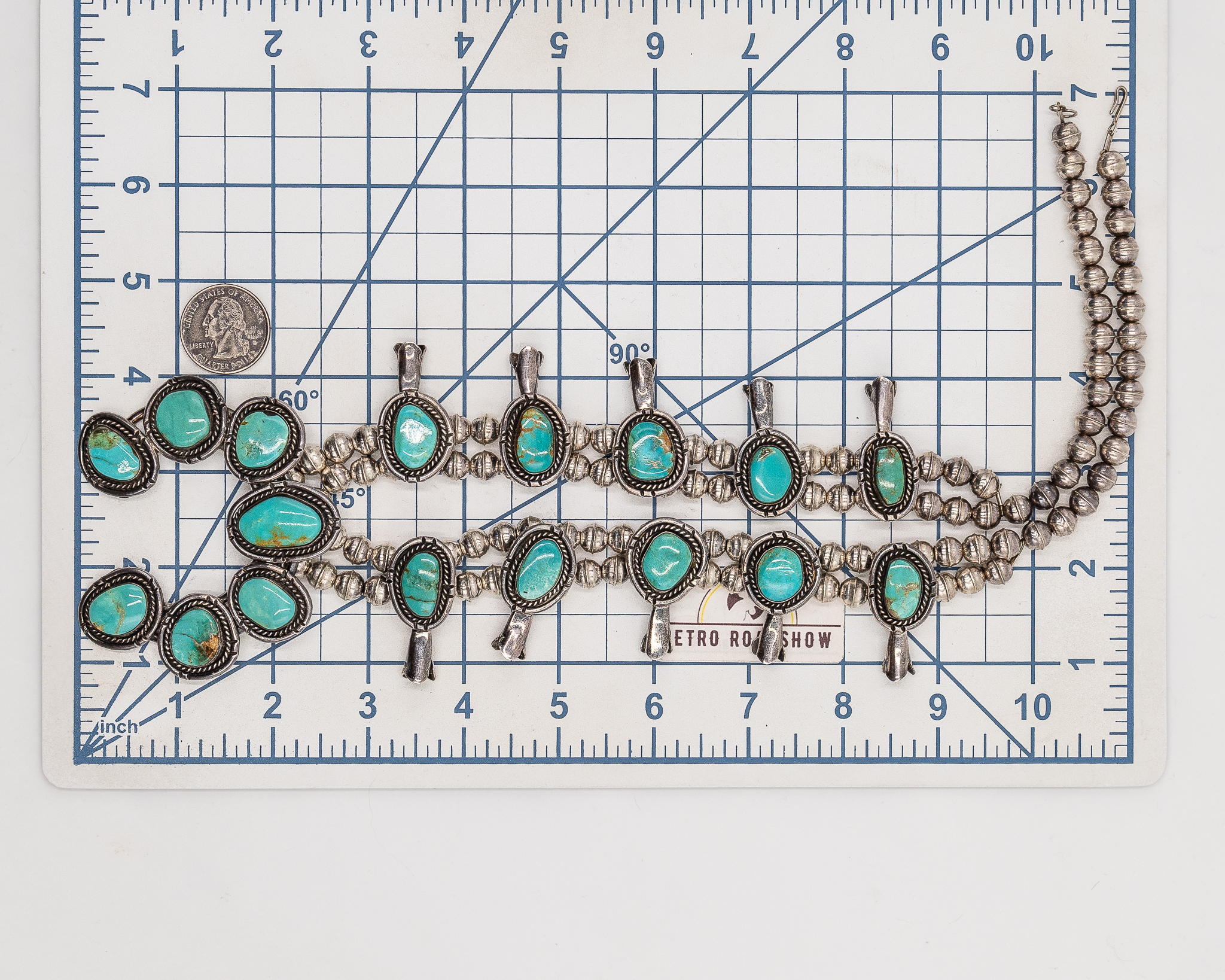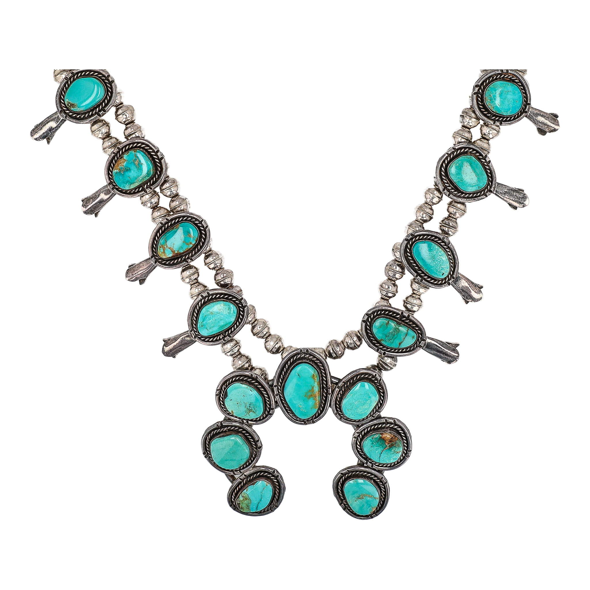 Navajo Turquoise Sterling Squash Blossom Necklace 157.5g