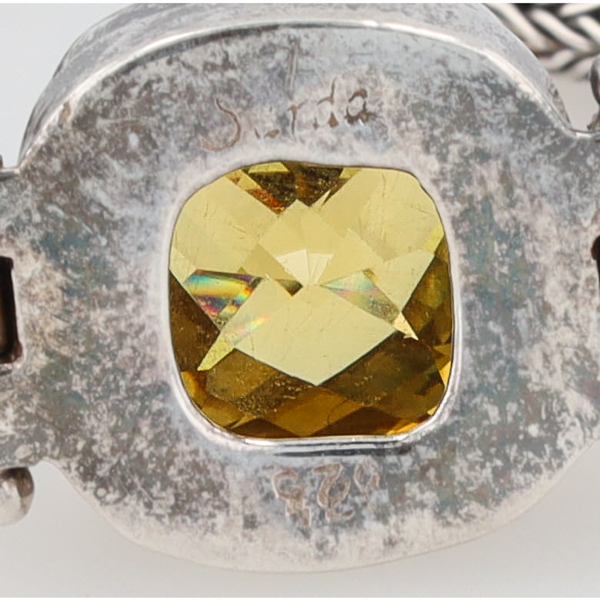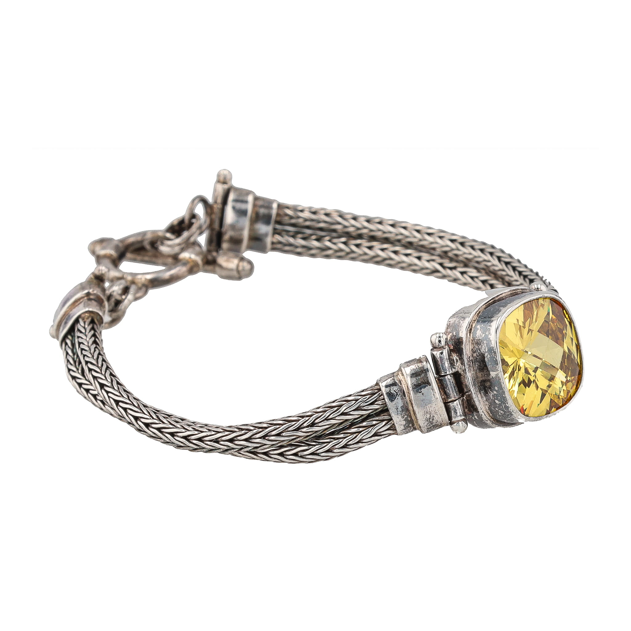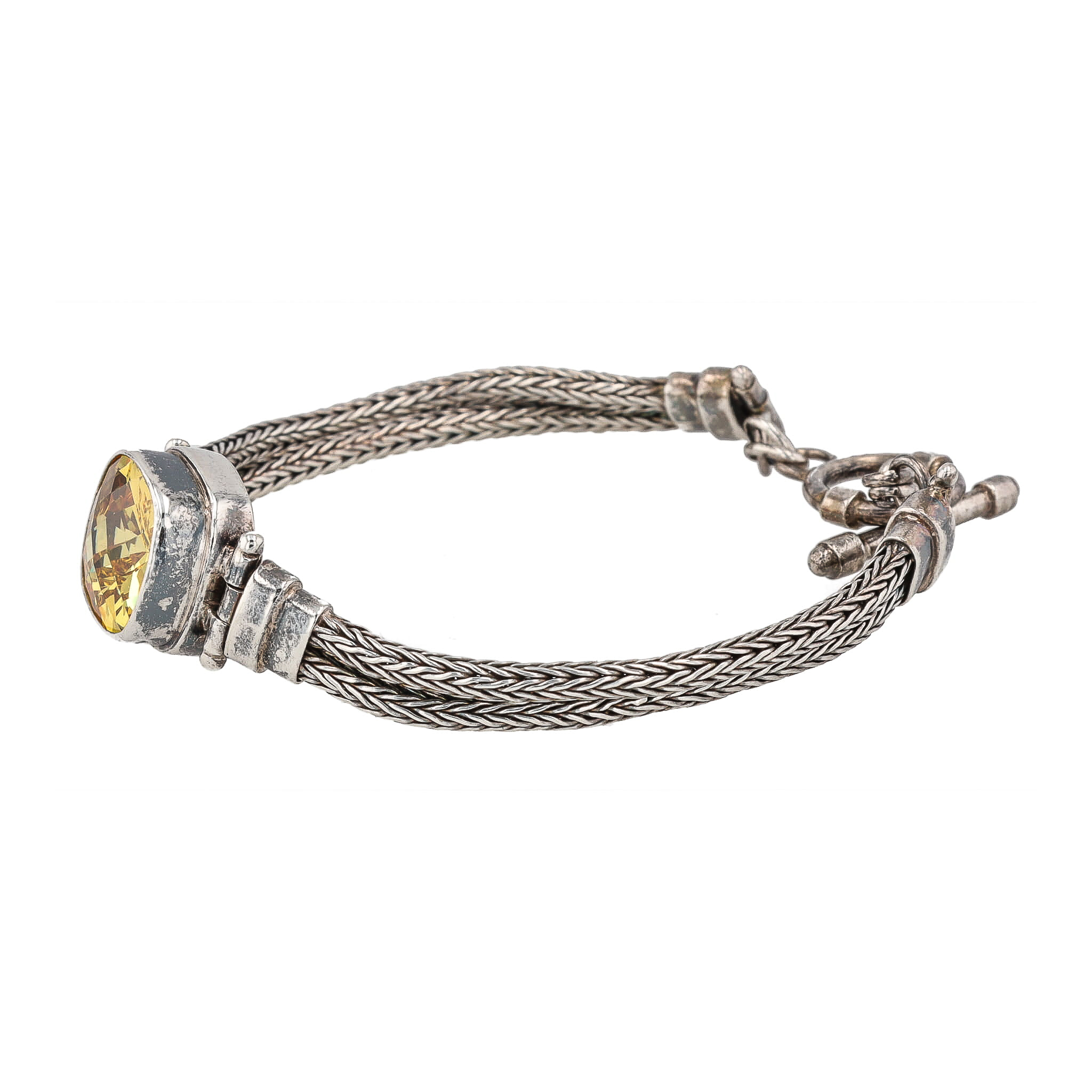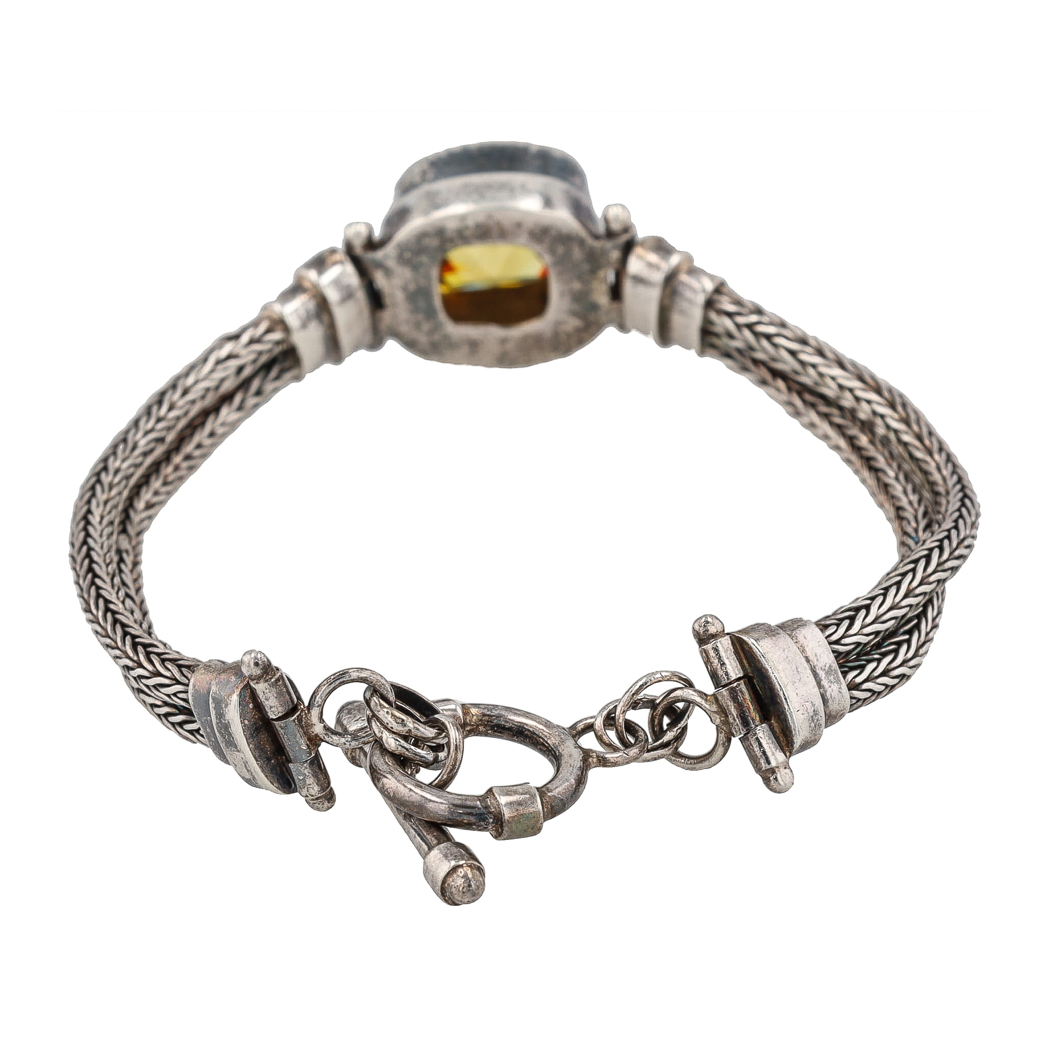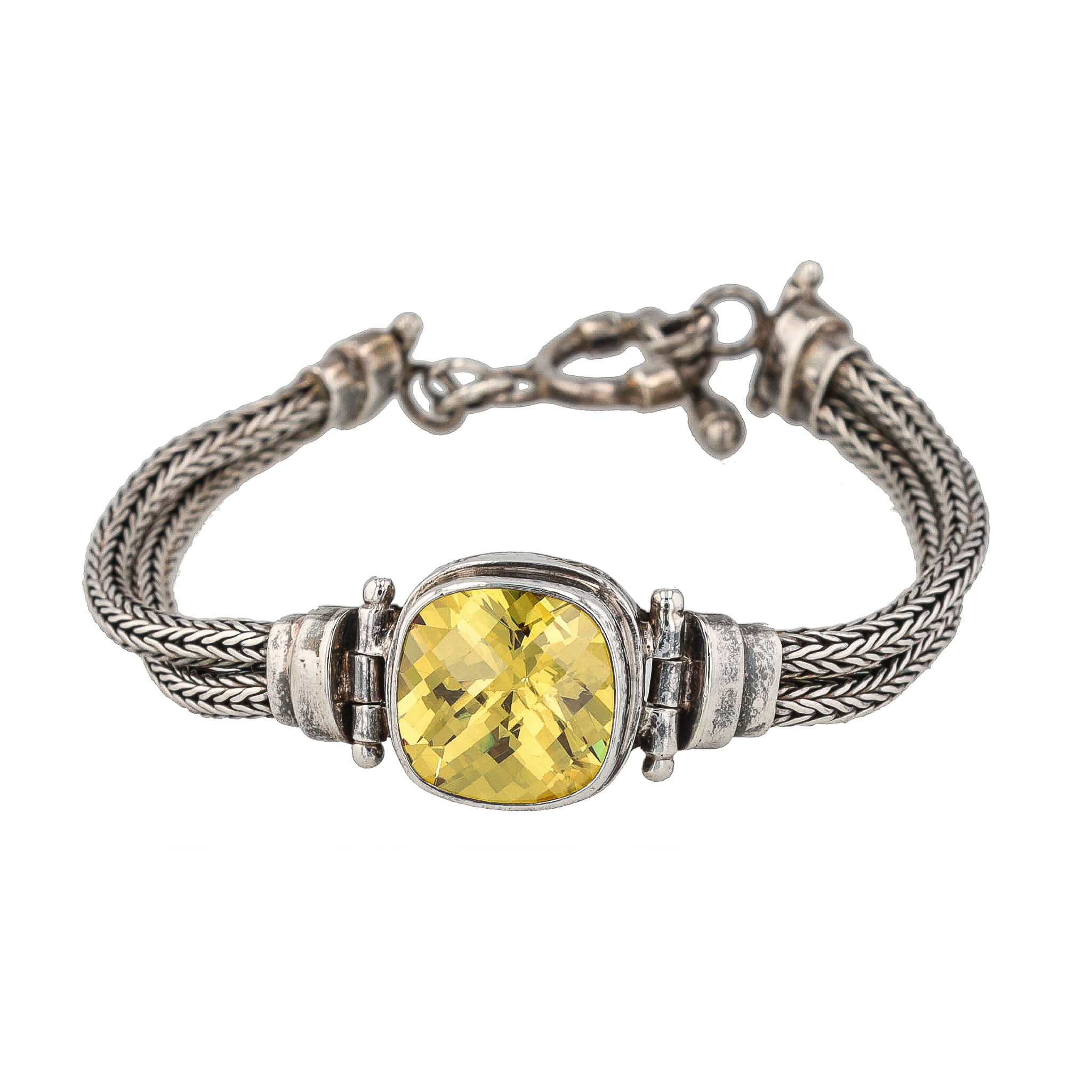 Sarda Gemstone Cushion Cut Sterling Silver Double Wheat Chain Bracelet 18g