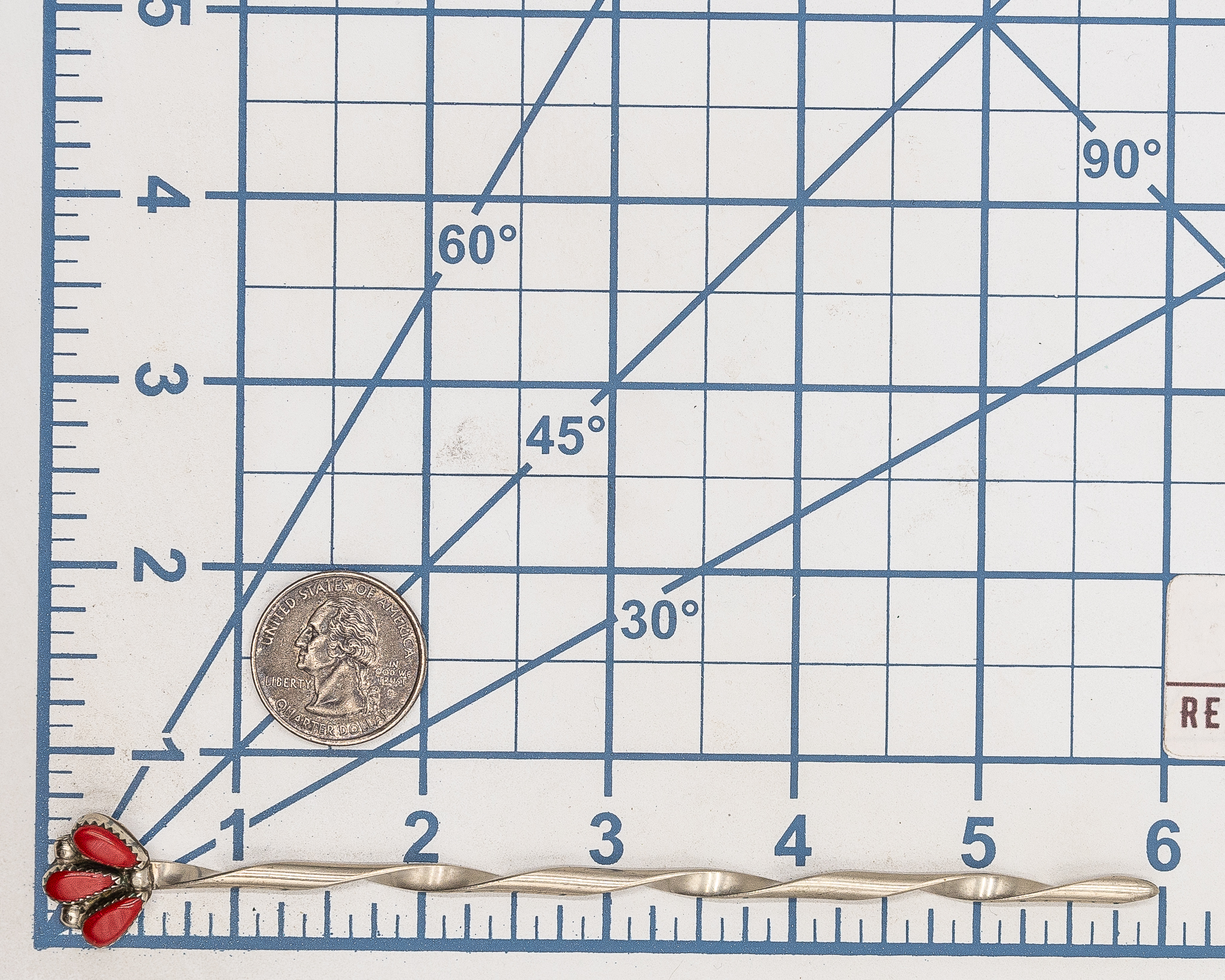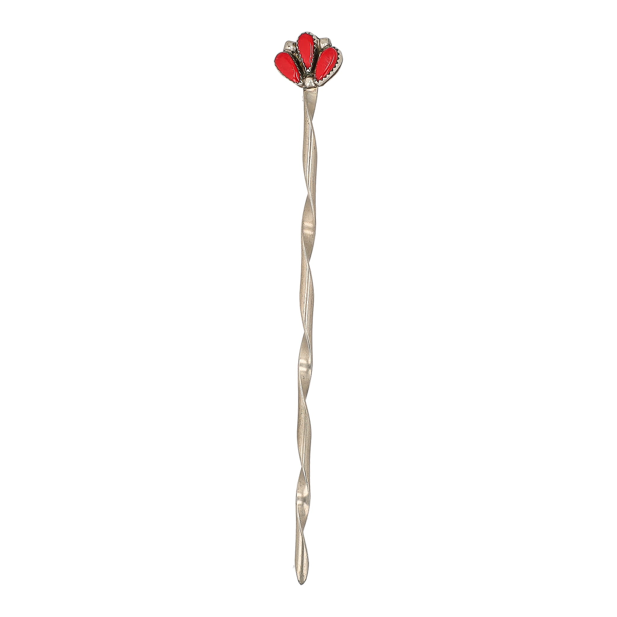 Vintage Navajo Coral Sterling Hair Pin 10.5g