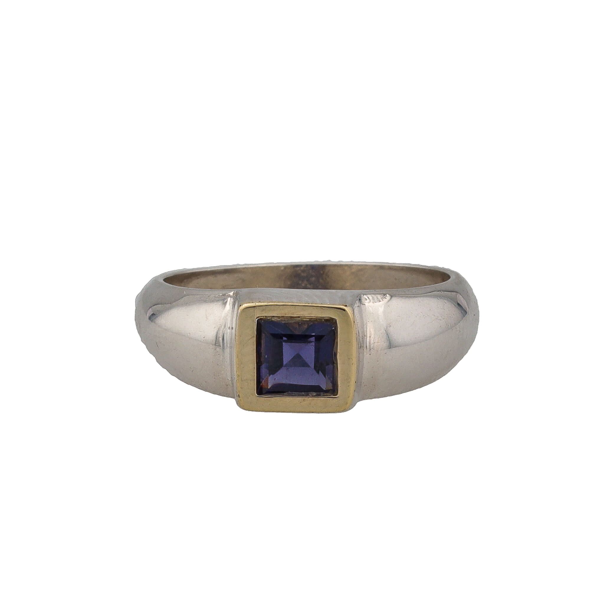 Iolite 18K Gold Sterling Silver Cocktail Ring Sz. 6.75, 4g Approx 0.59 TCW