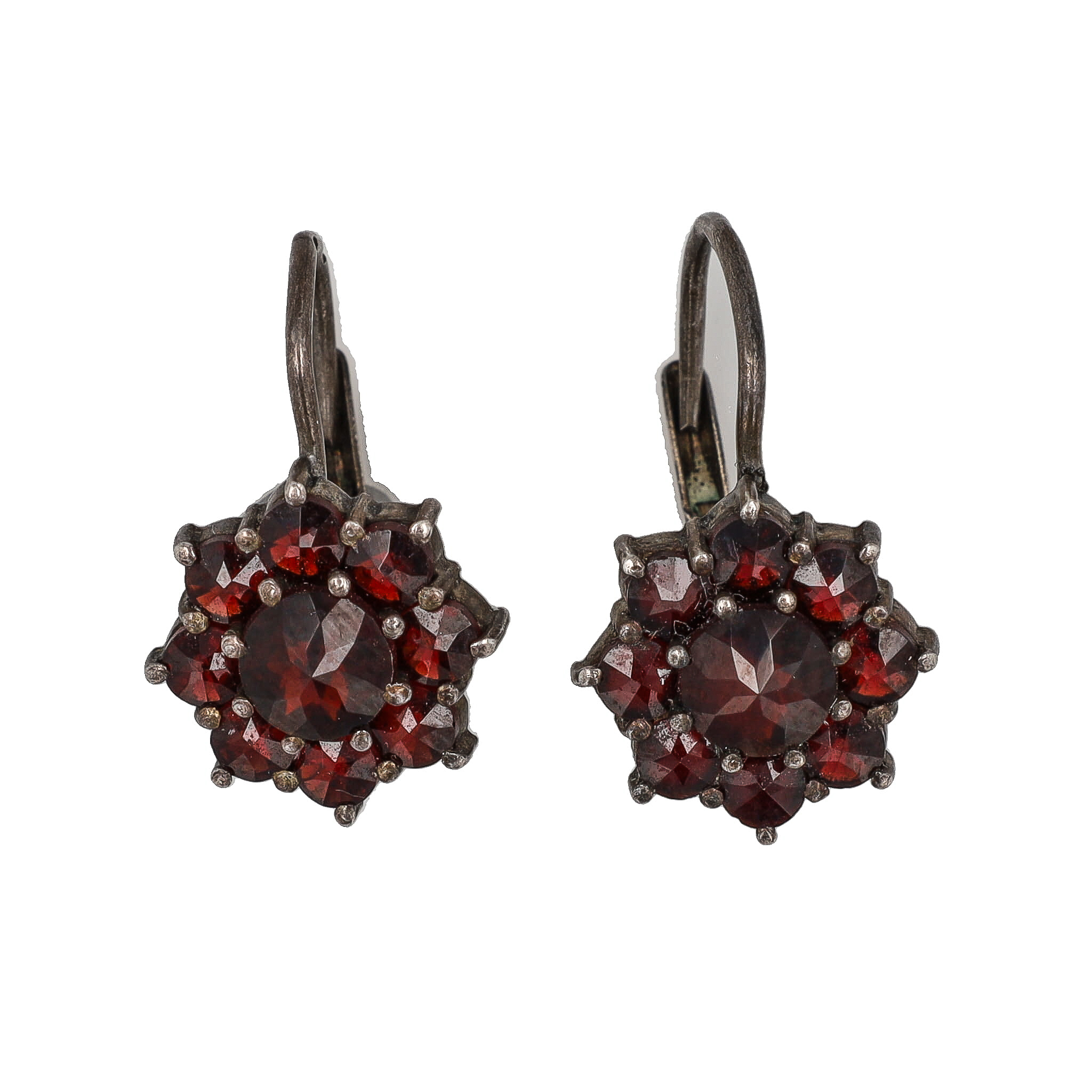 Vintage Bohemian Garnet Sterling Silver Drop Dangle Earrings 2.7g Approx 2.6 TCW