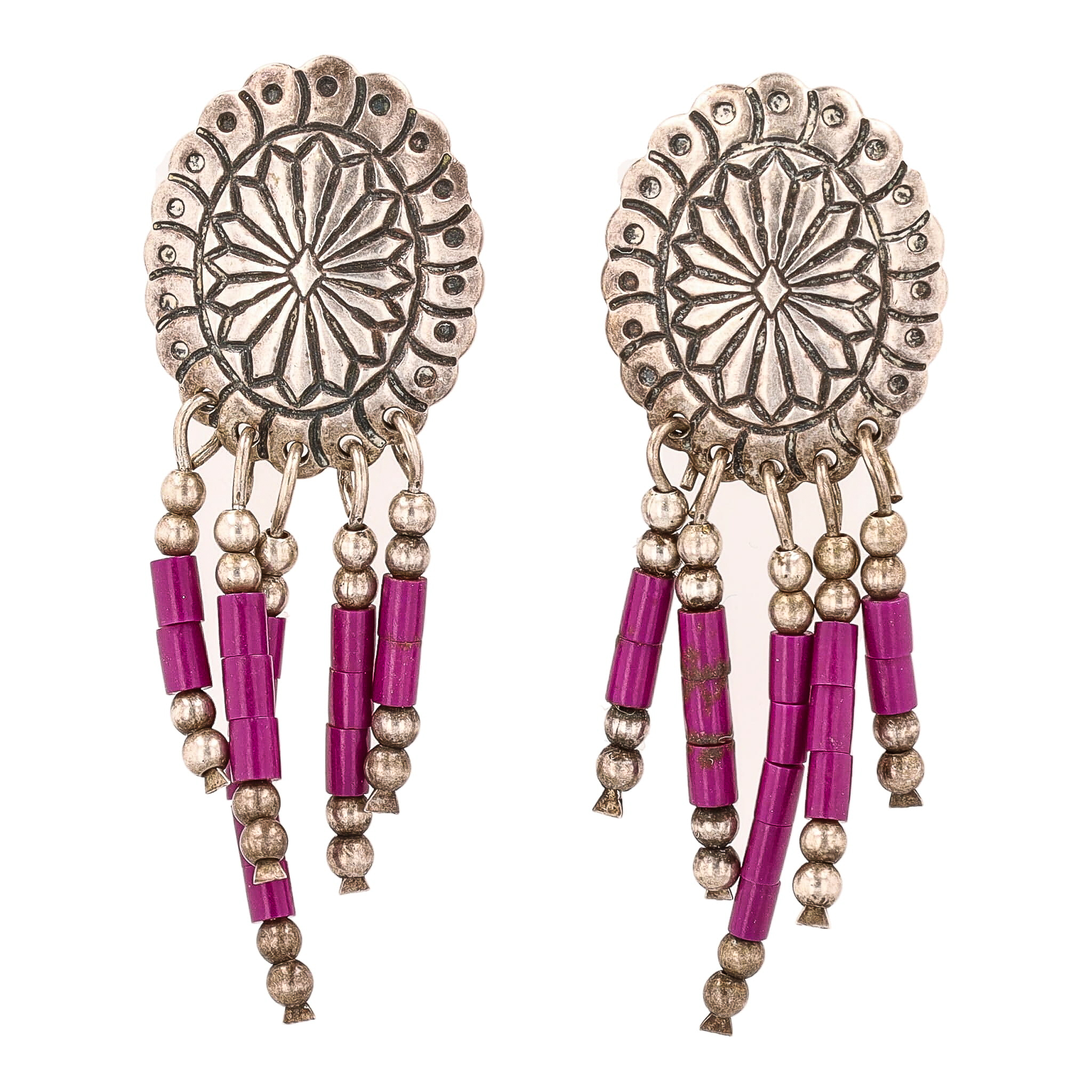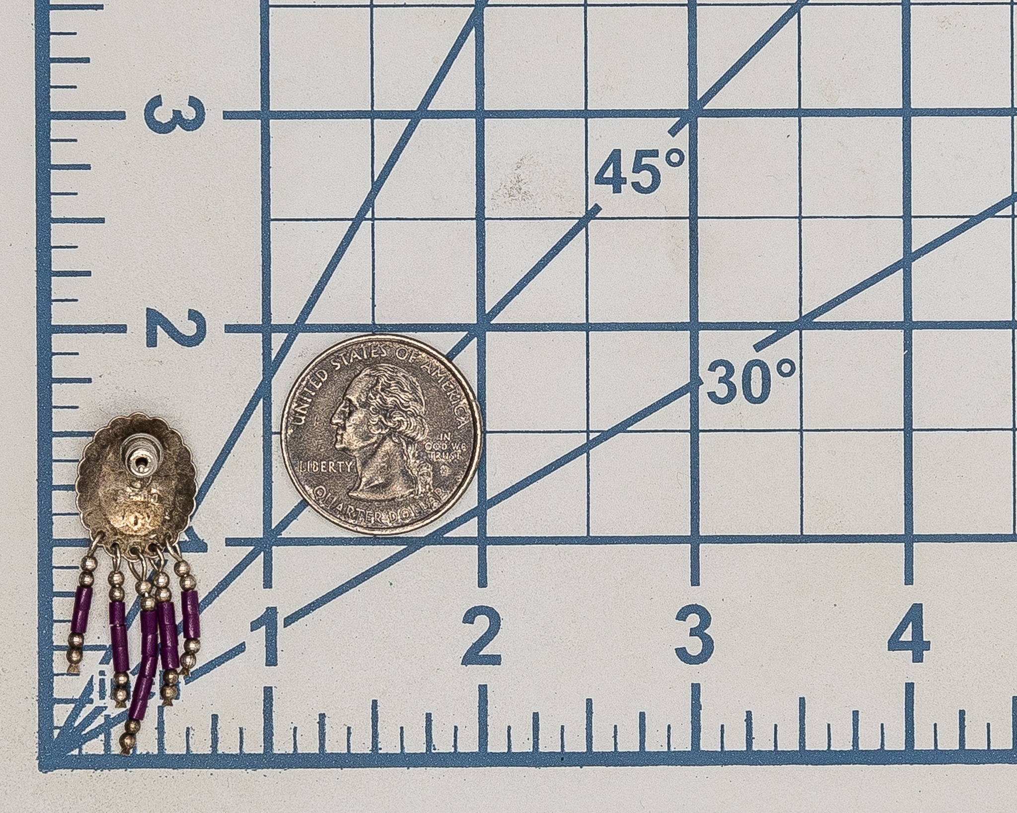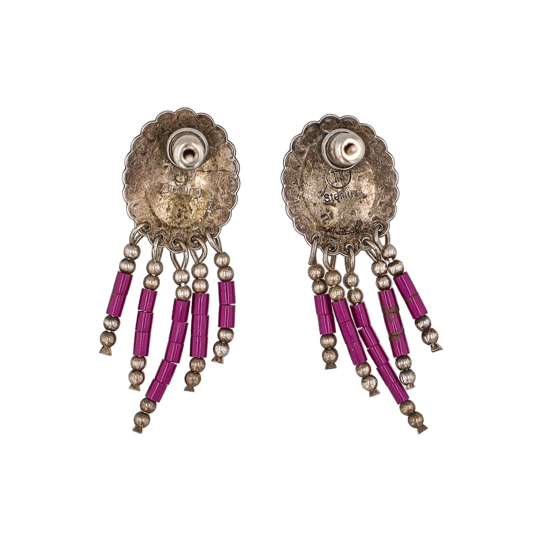 TK Emerson Sterling Purple Beaded Concho Dangle Earrings 5g Signed TK