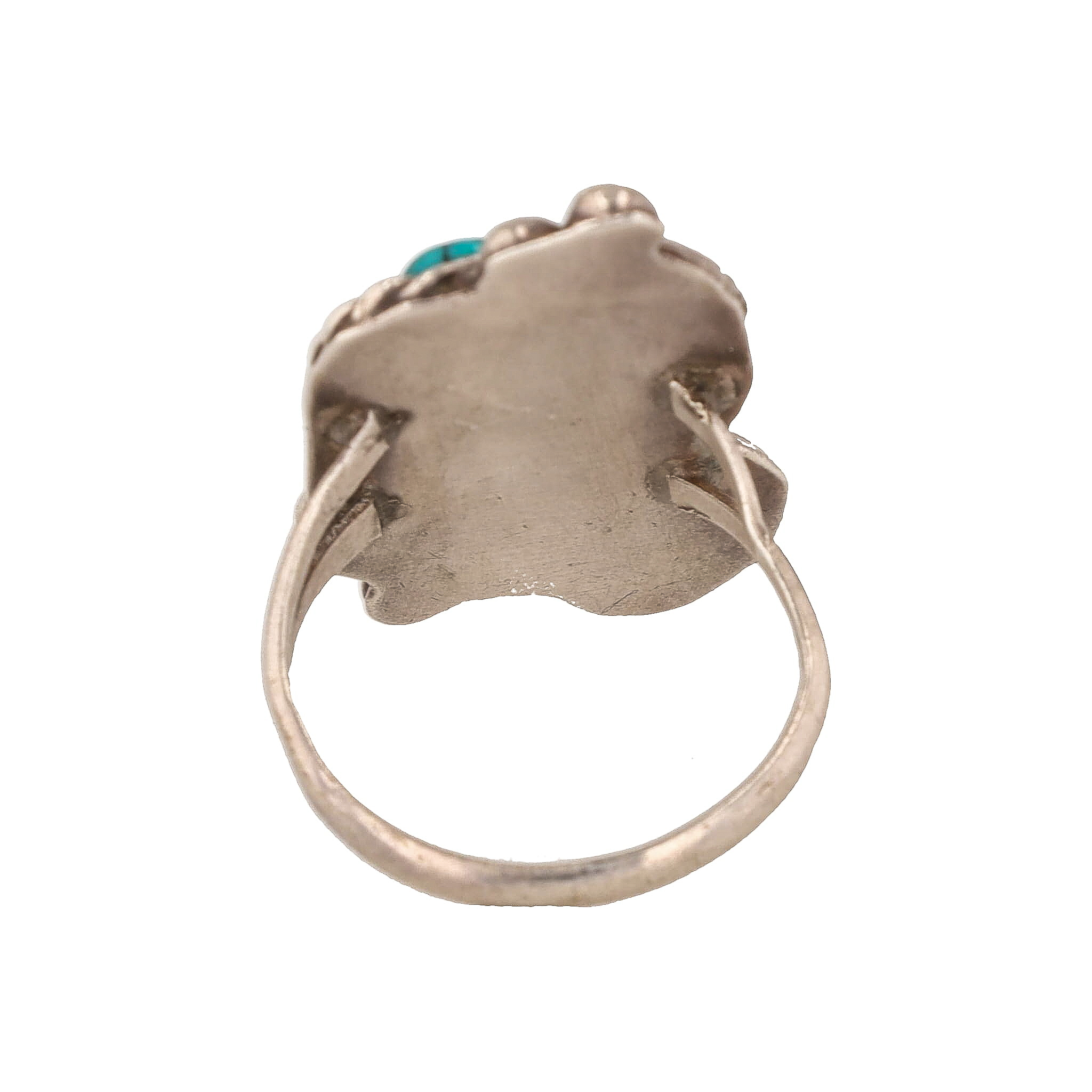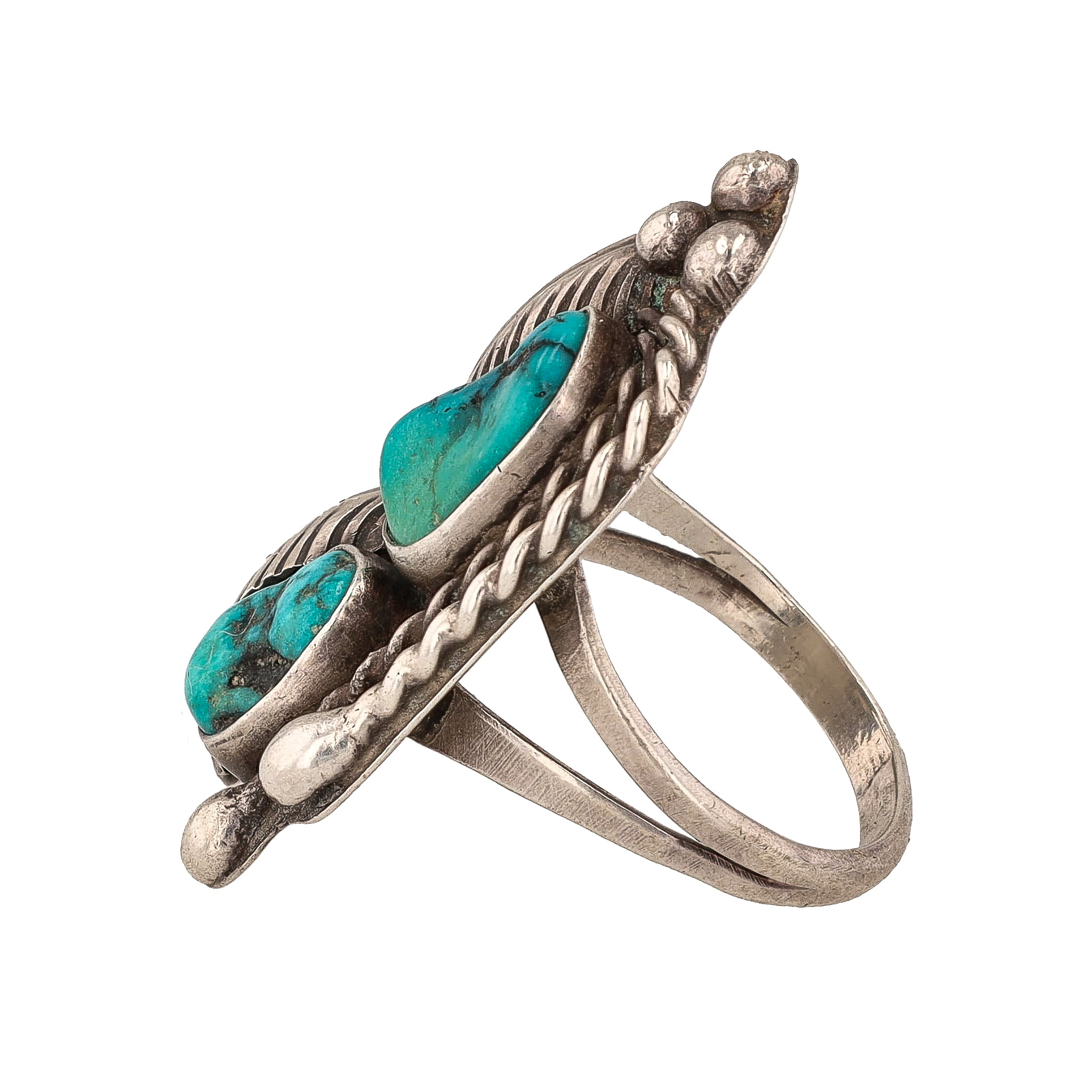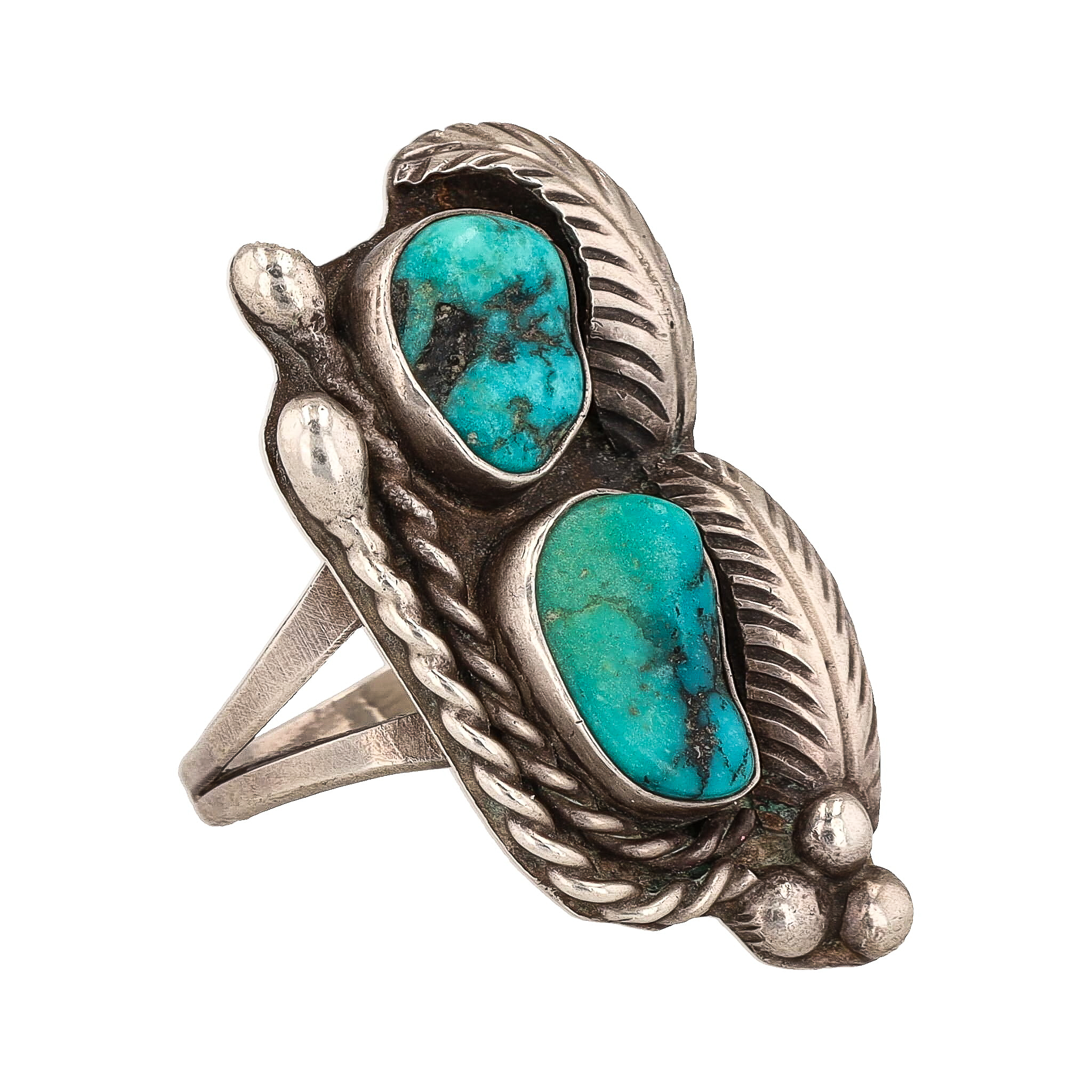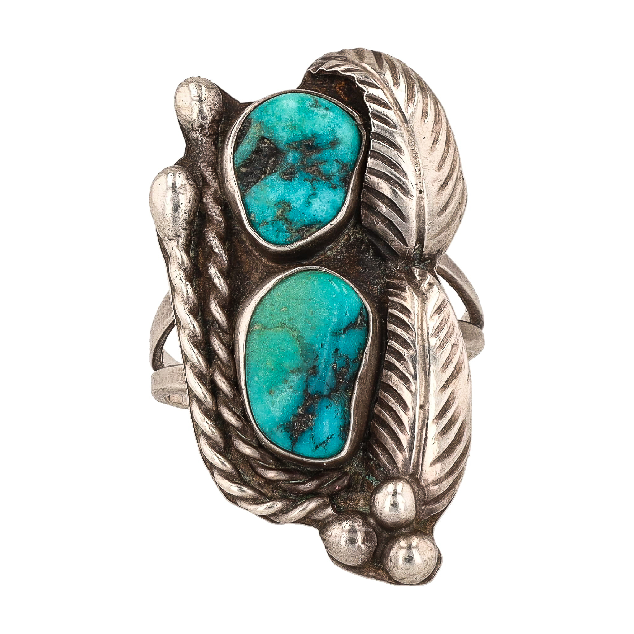Vintage Navajo Turquoise Sterling Leaf Ring Sz. 8.25, 7.5g