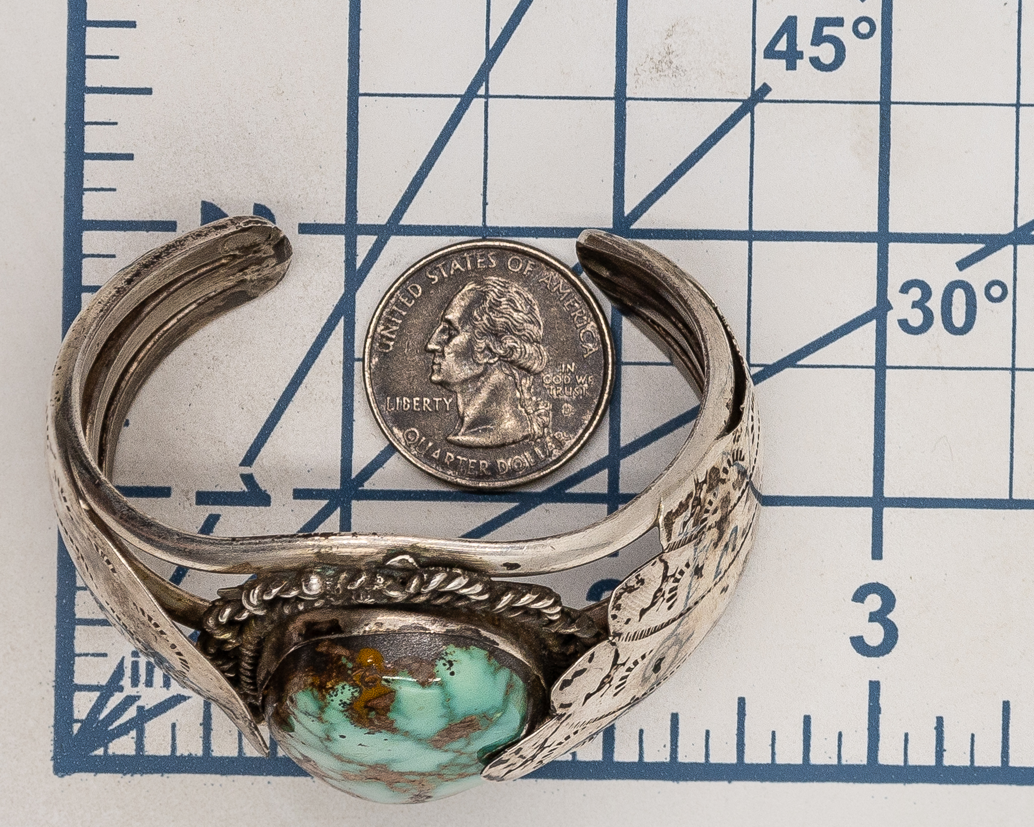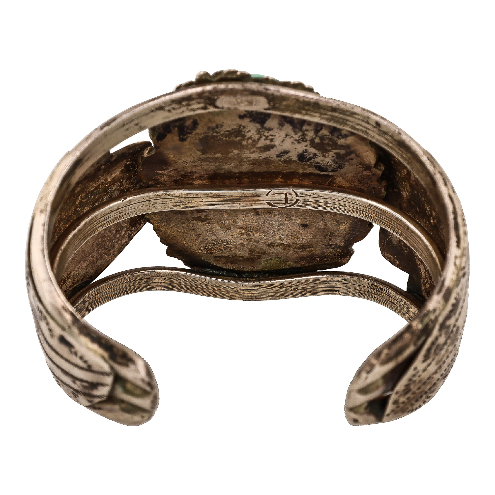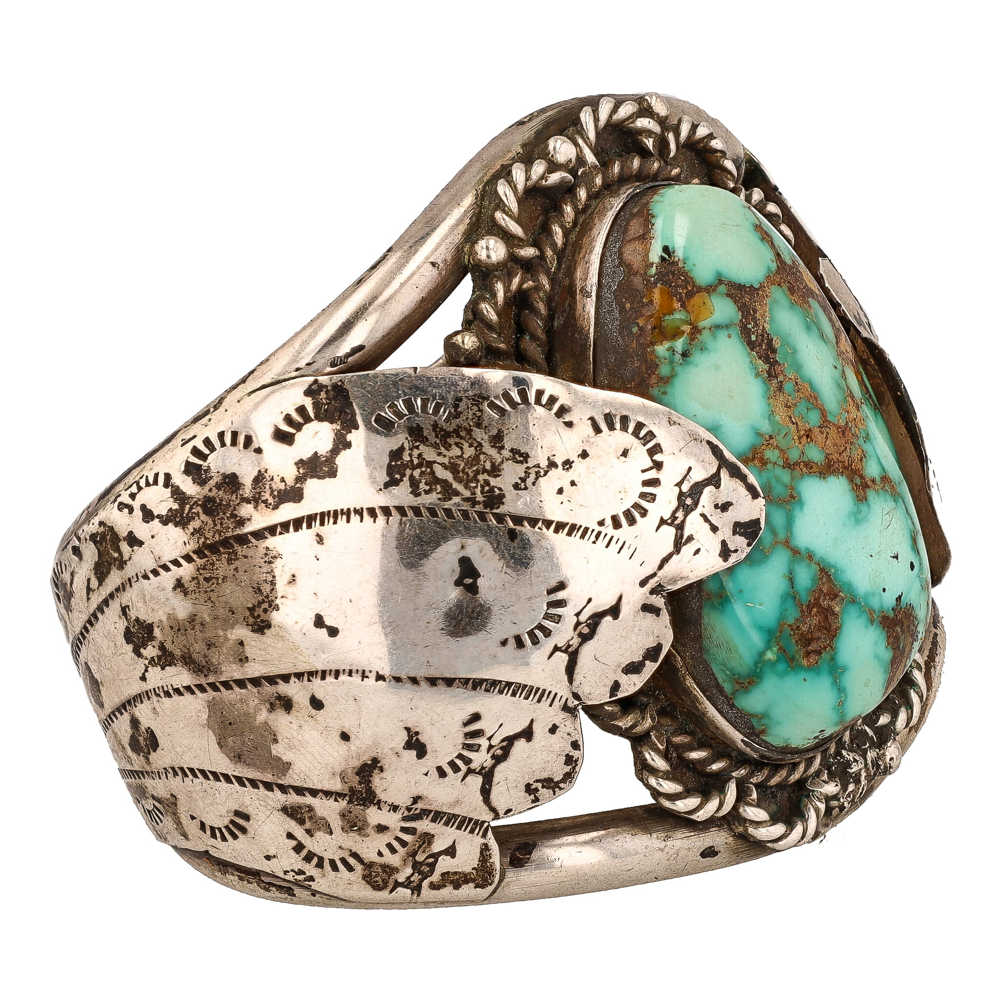Amazing Vintage Navajo Royston Turquoise Sterling Leaf Cuff Bracelet 83g, Signed L in a Circle