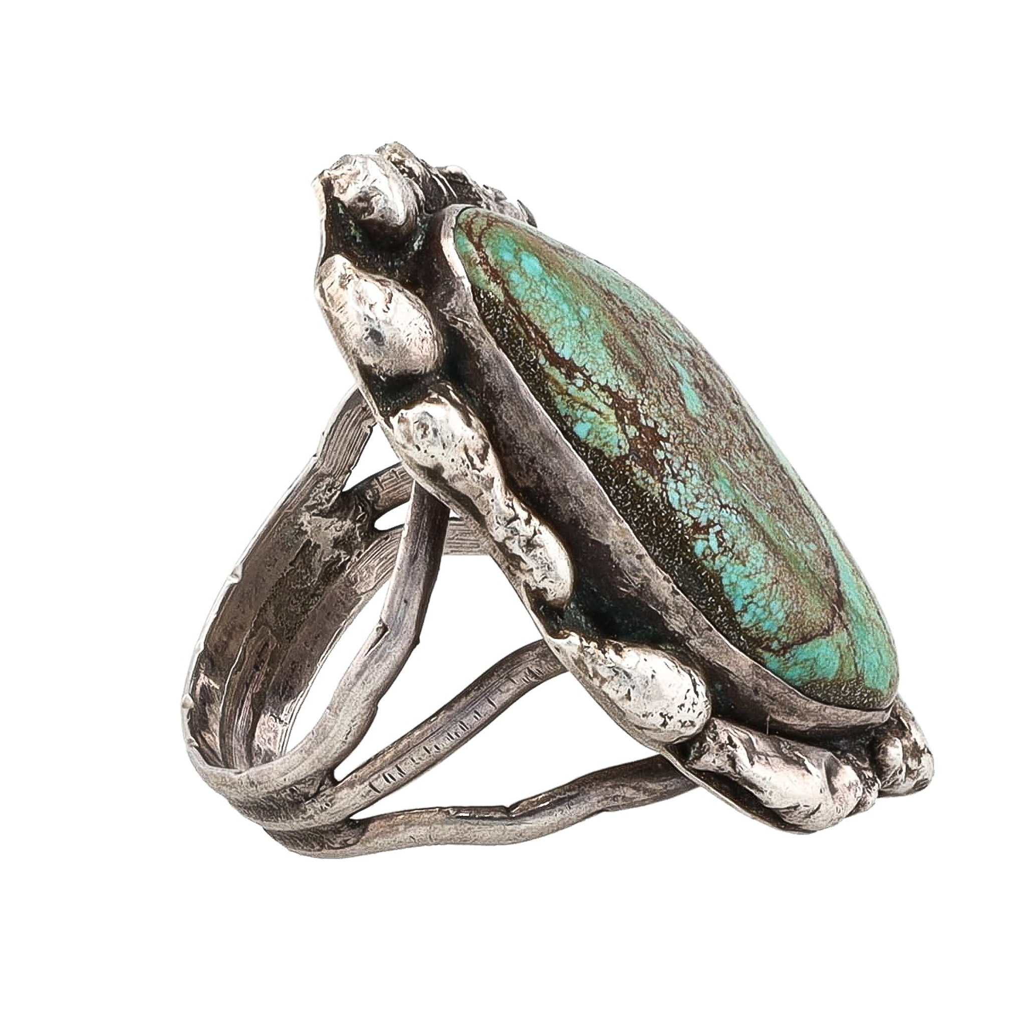 Vintage Navajo Turquoise Sterling Ring Sz. 8, 12.5g