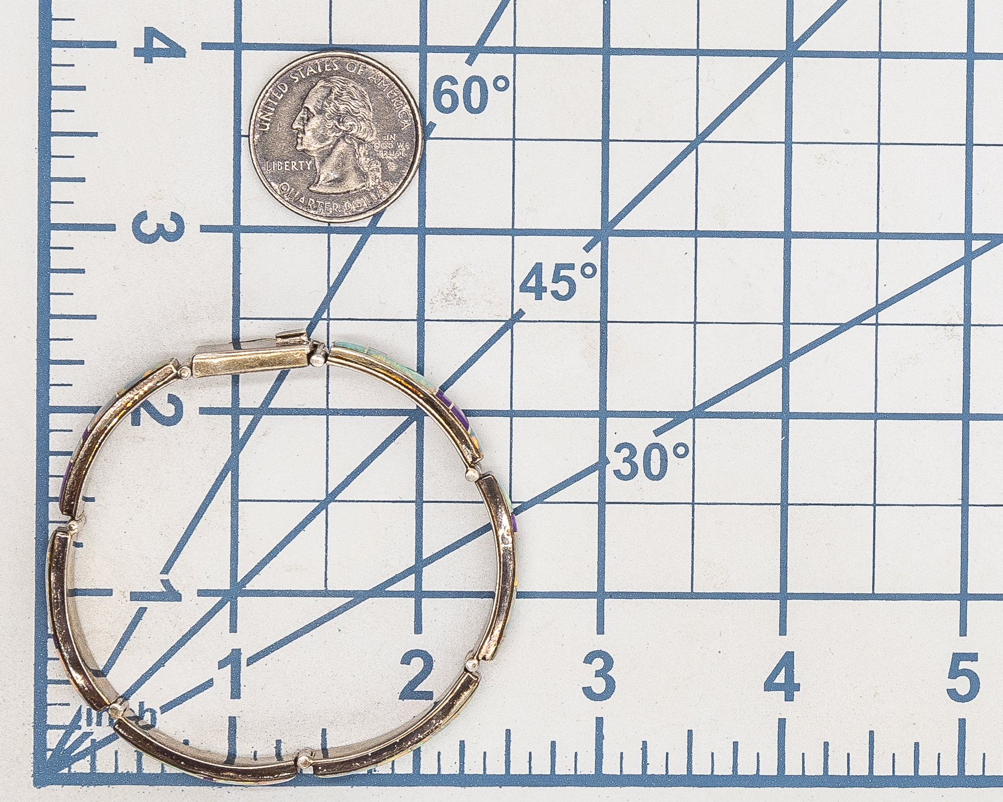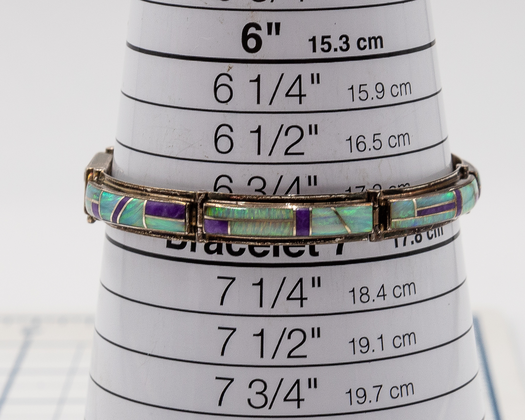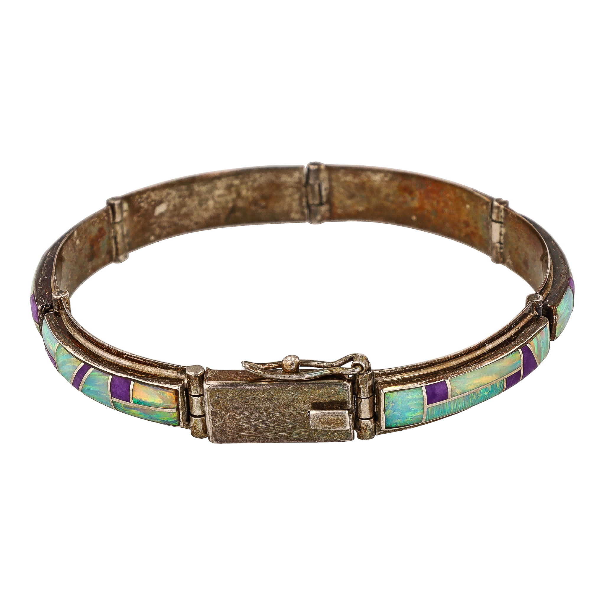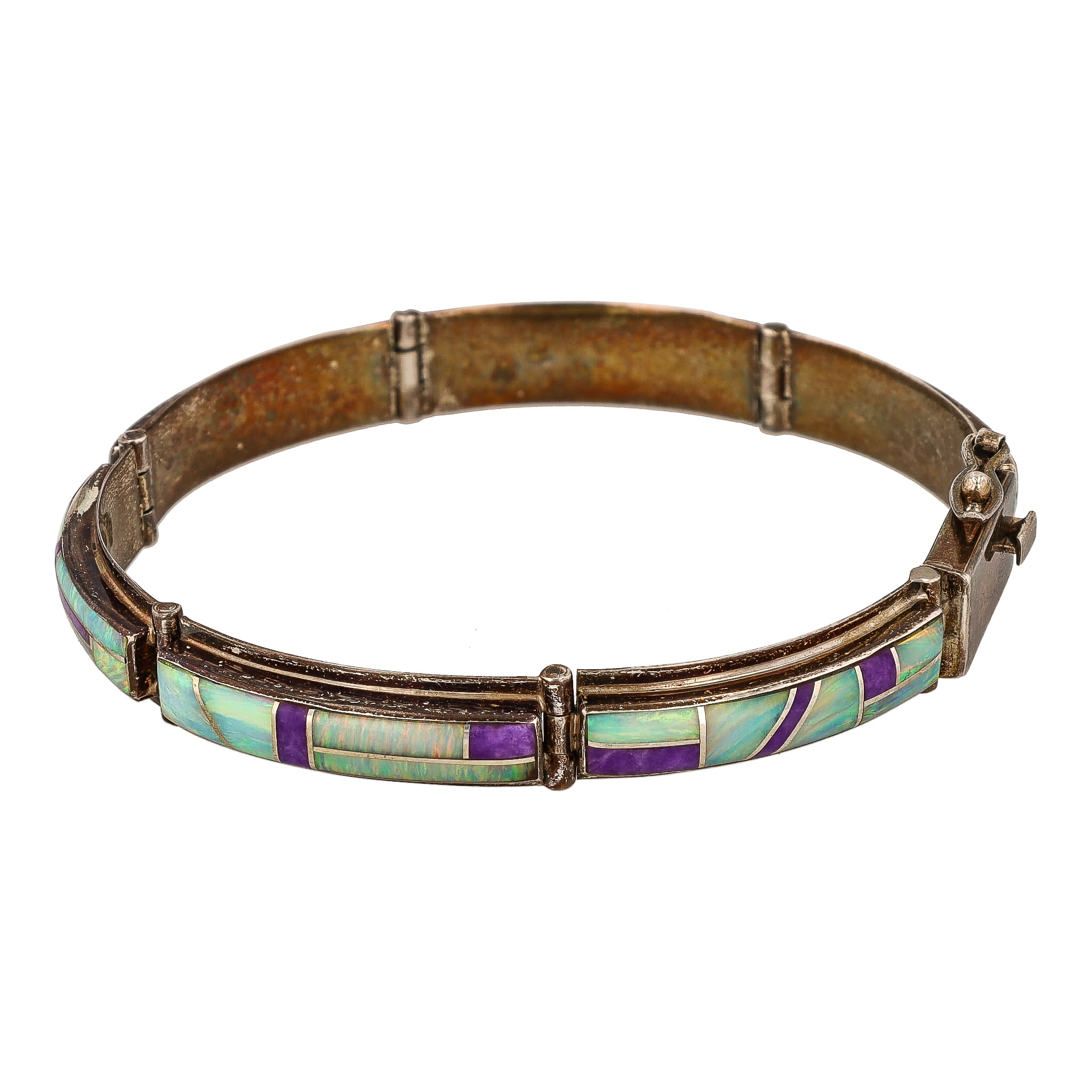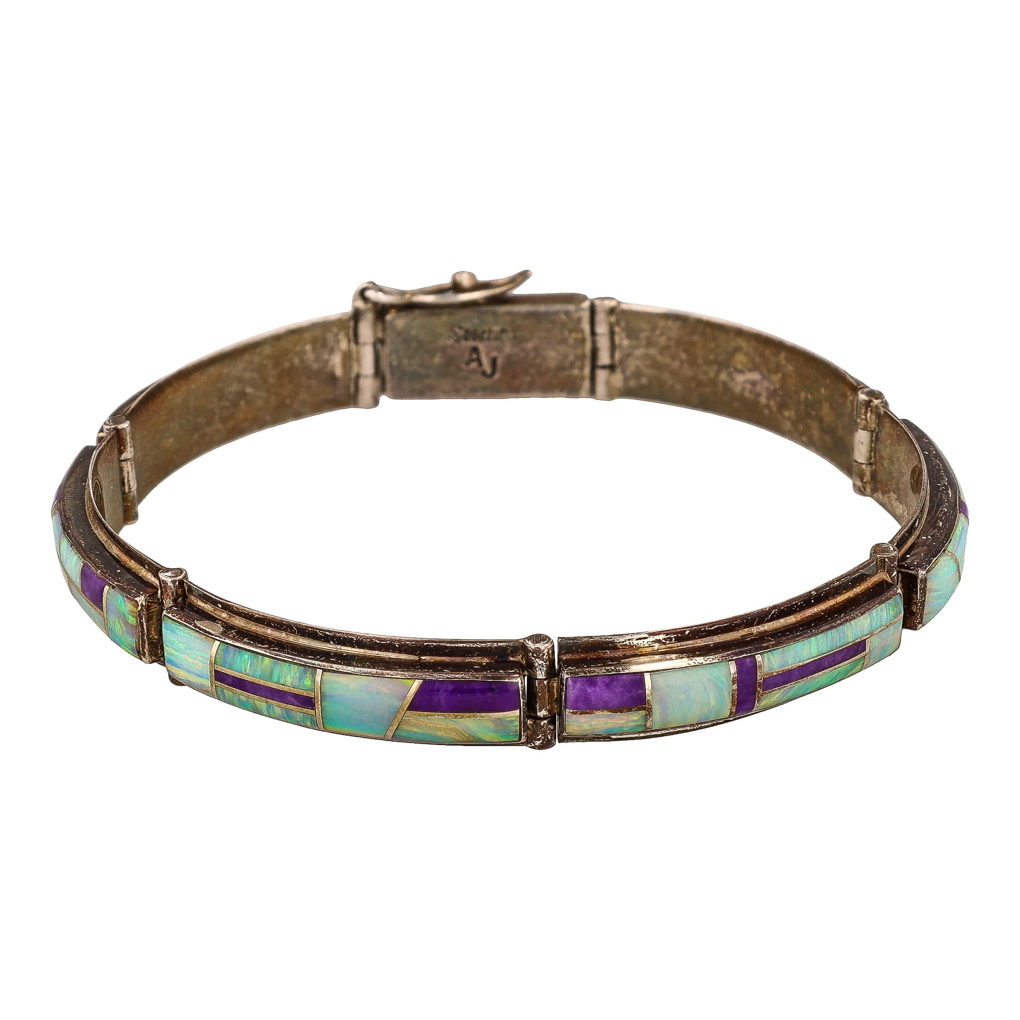 Signed AJ Zuni Purple Spiny Oyster Opal Sterling Inlay Bracelet 18g