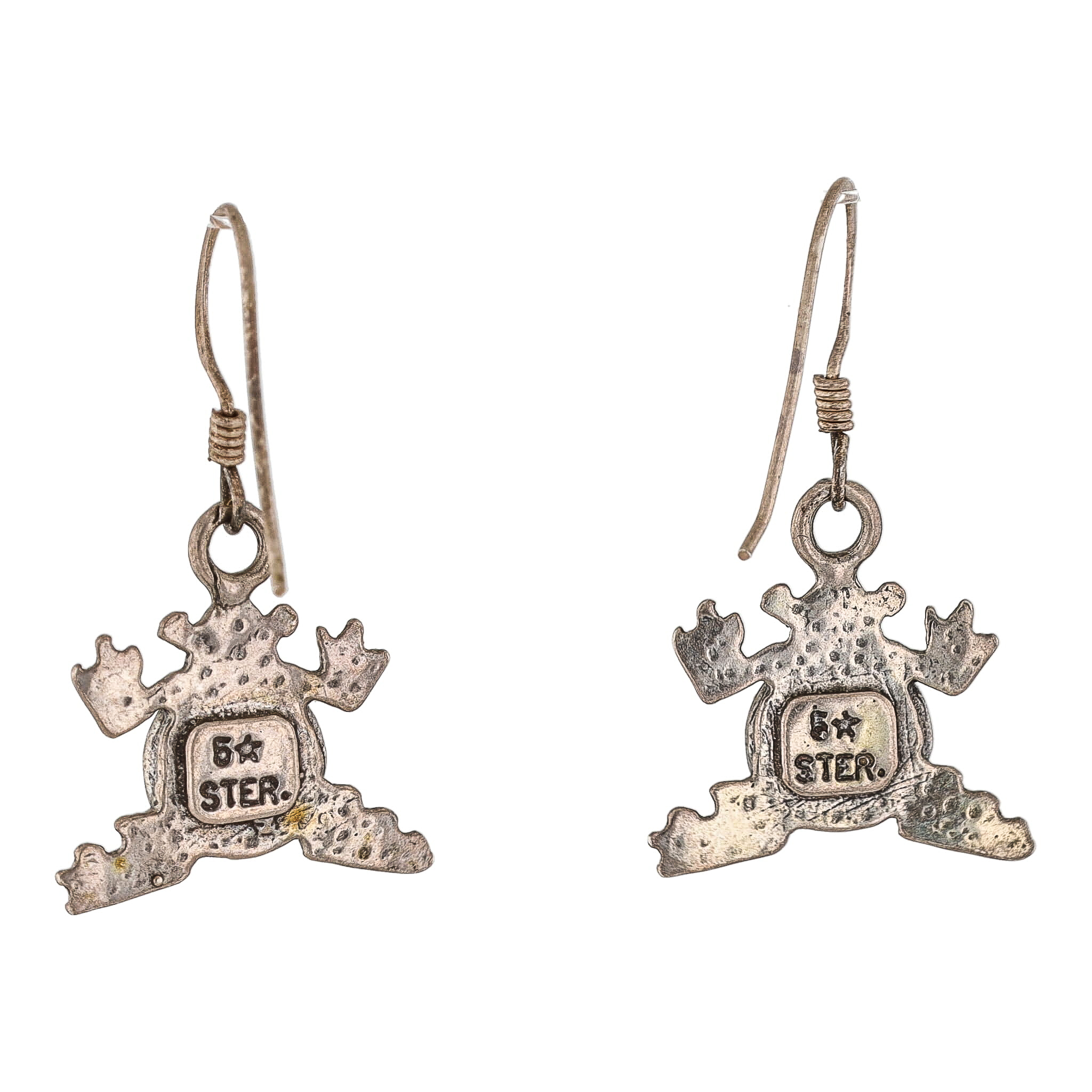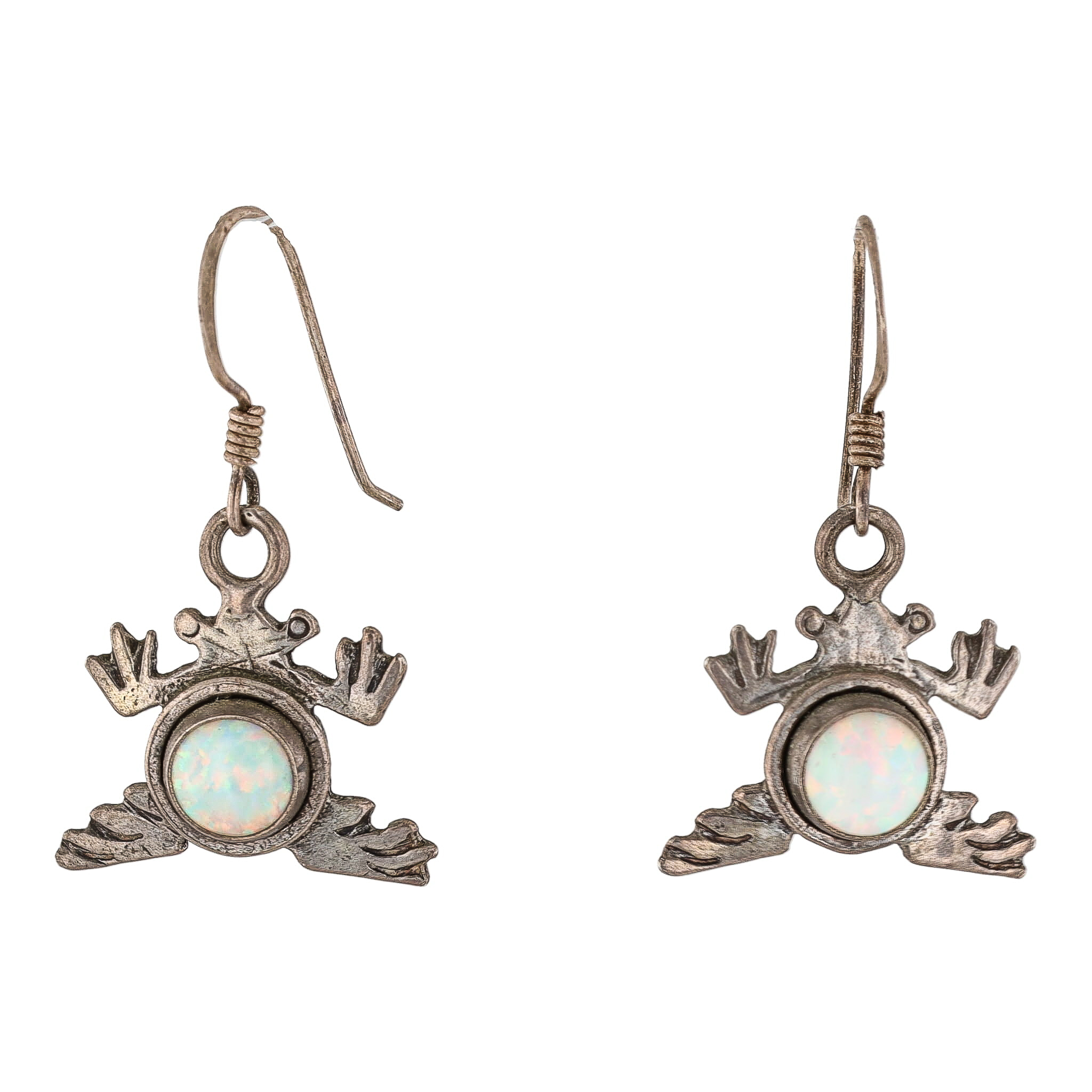 5 Star Opal Sterling Frog Drop Dangle Earrings 3.5g