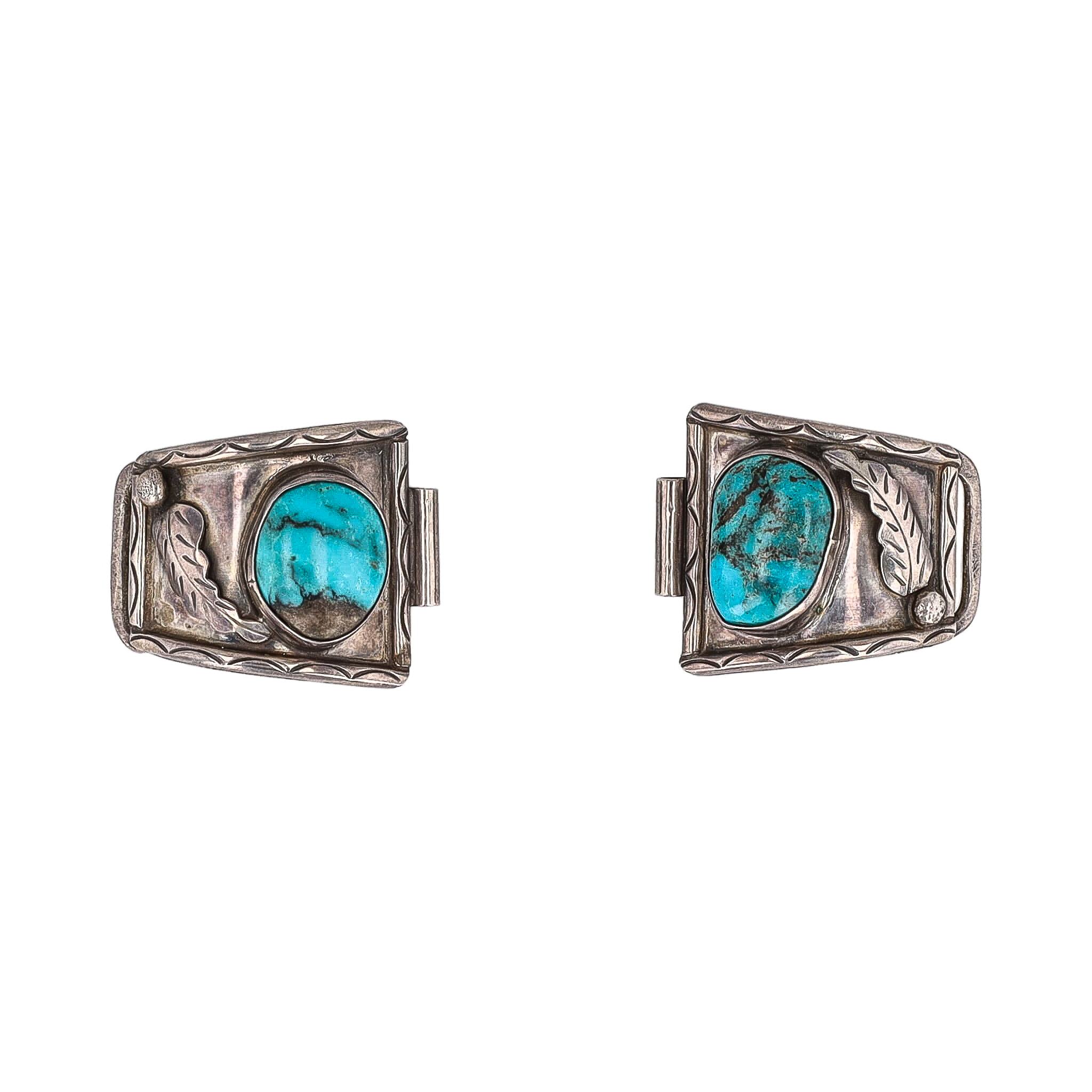 Vintage Navajo Turquoise Sterling Leaf Watch Nibs 27.5g