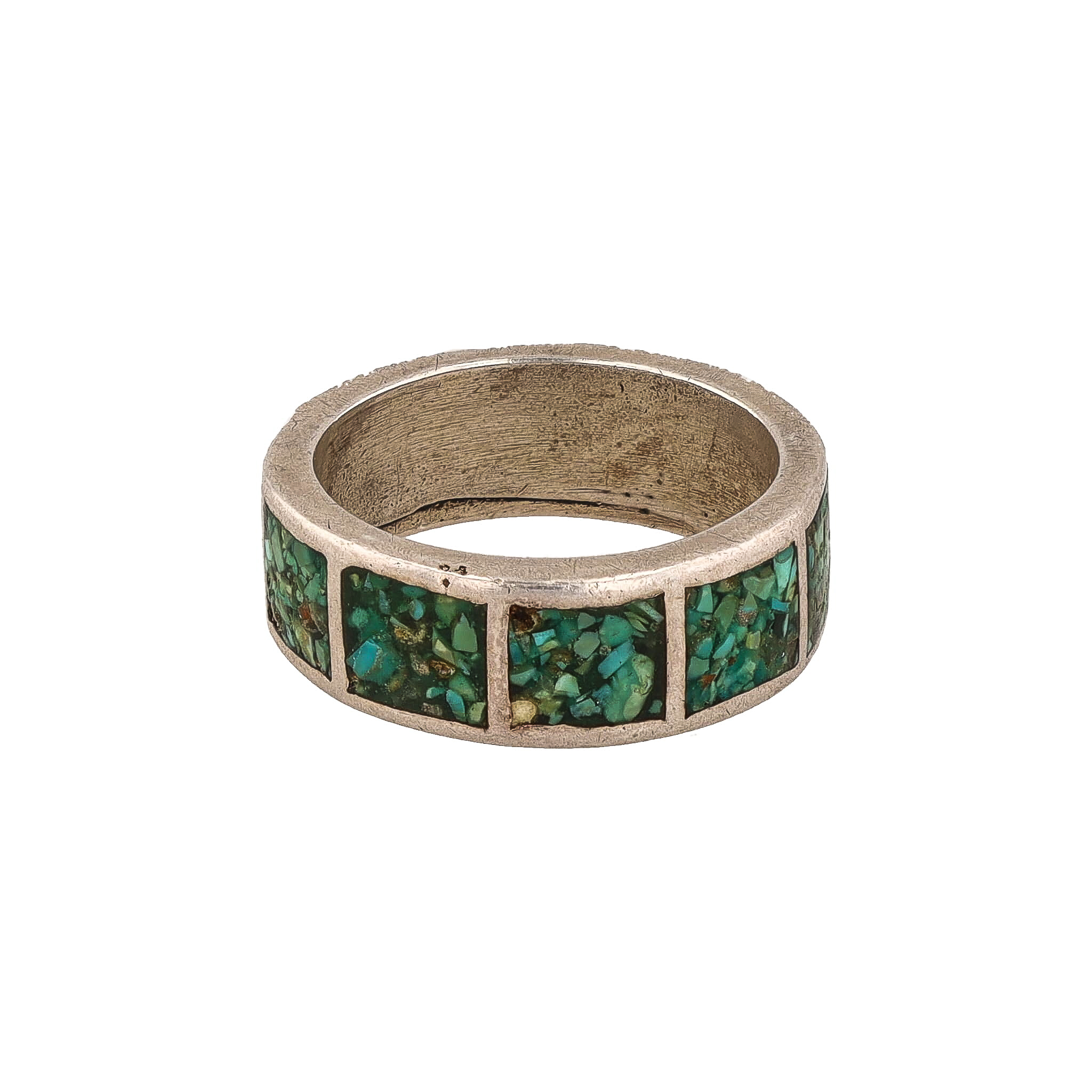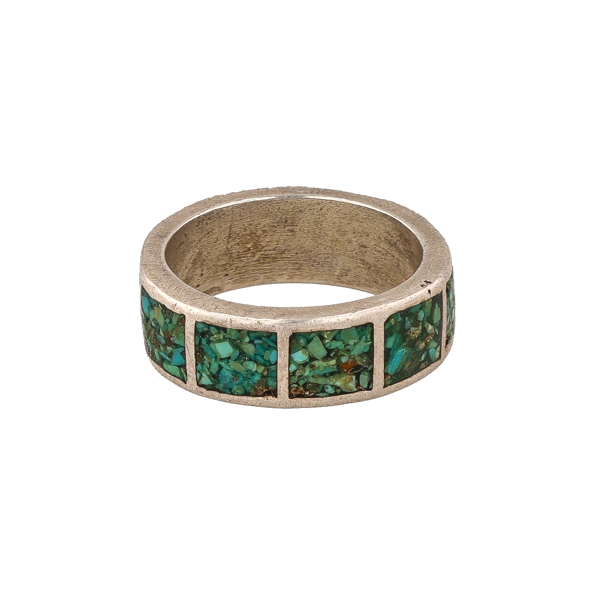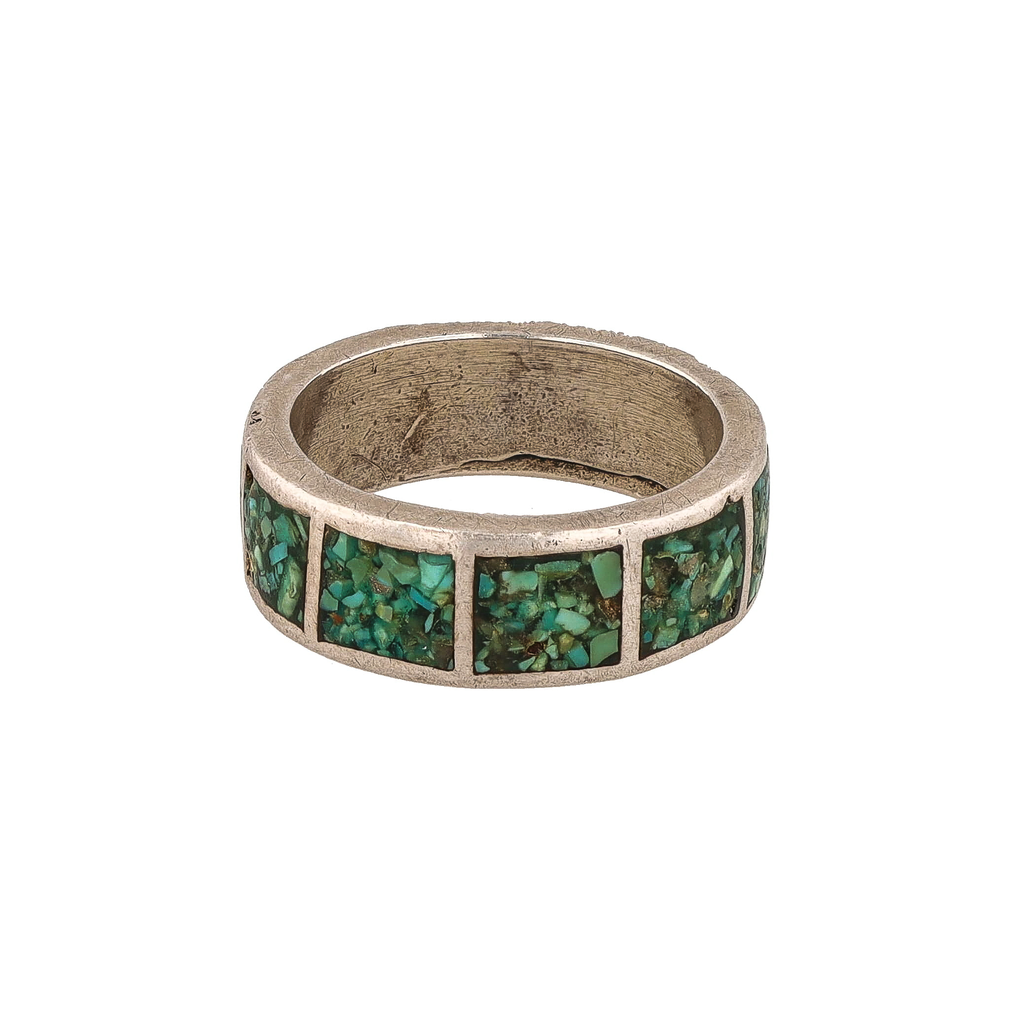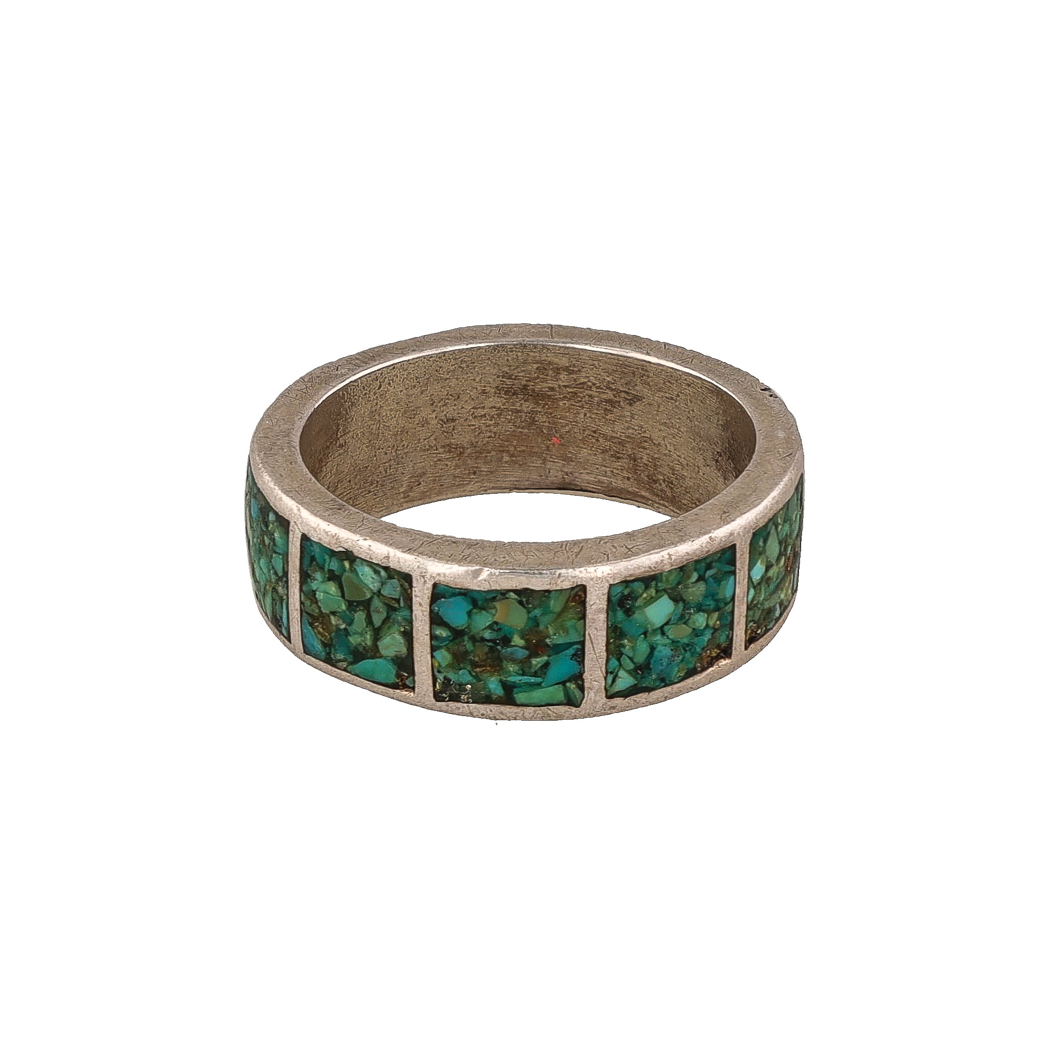 Vintage Navajo Crushed Turquoise Sterling Ring Sz. 7.5, 6.5g