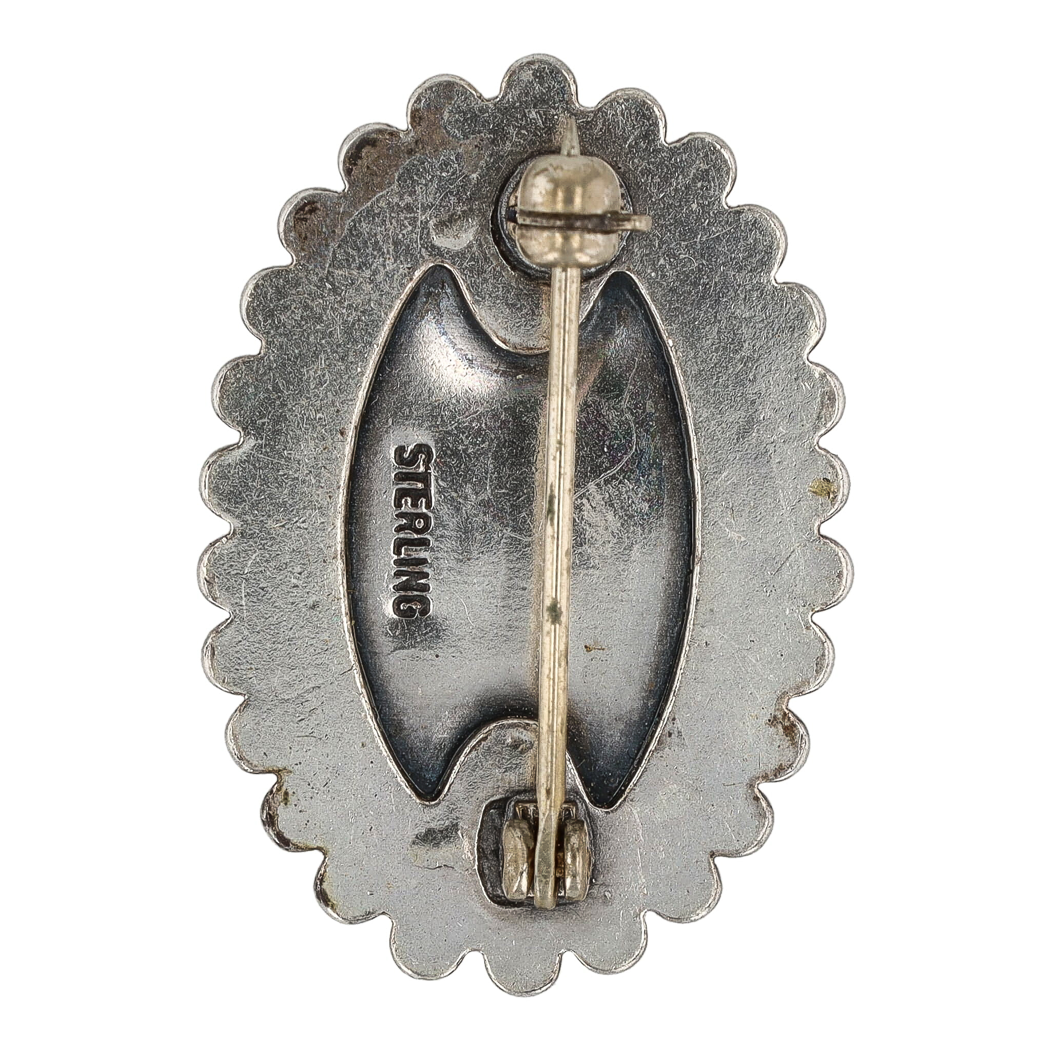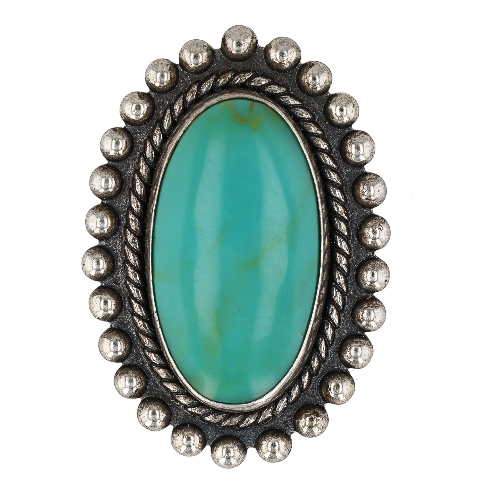 Southwestern Native American Turquoise Sterling Oval Brooch 5.5g
