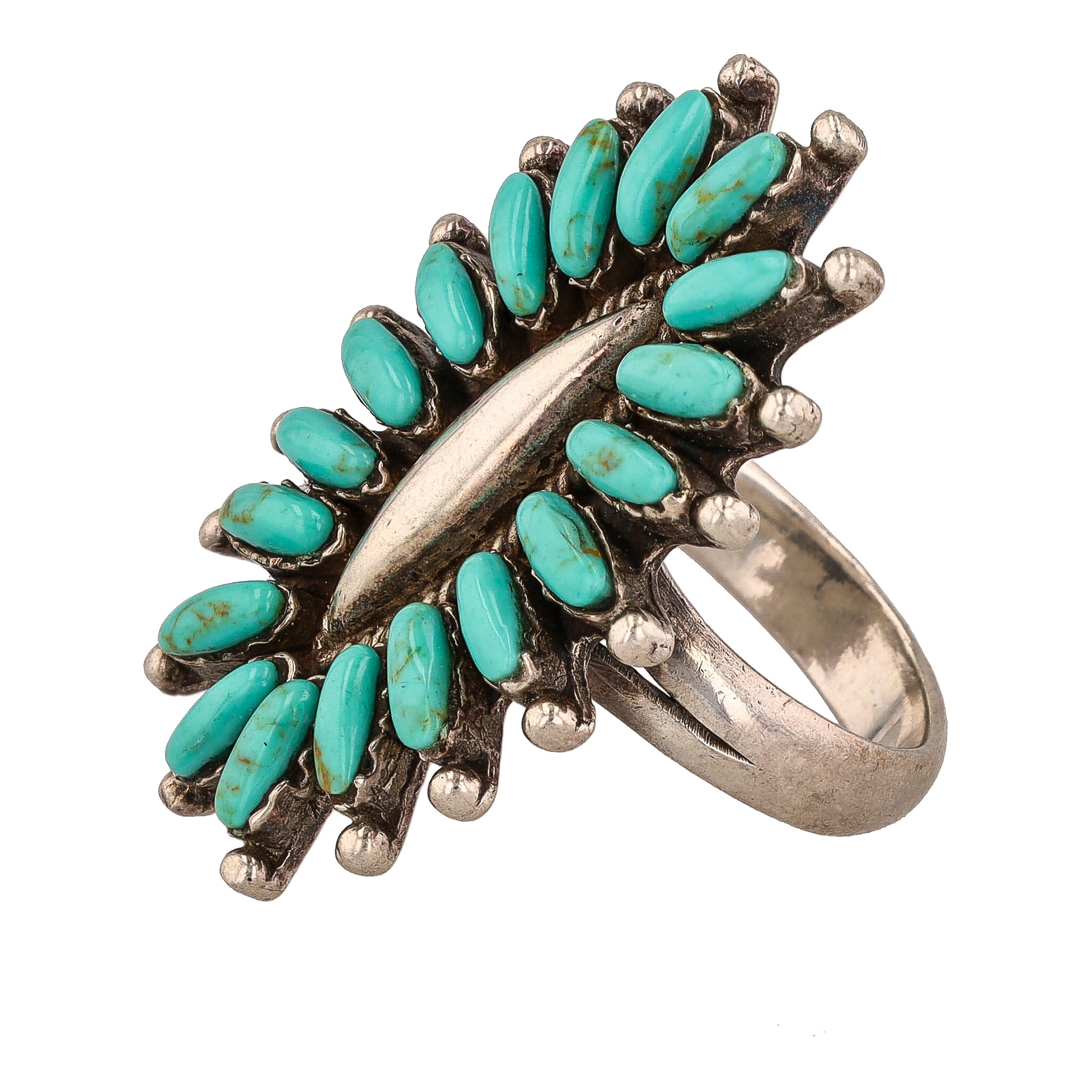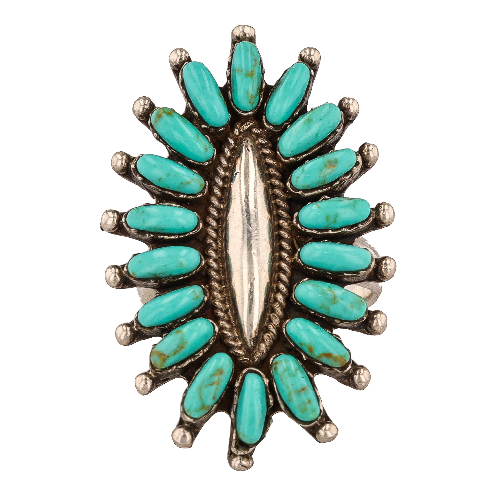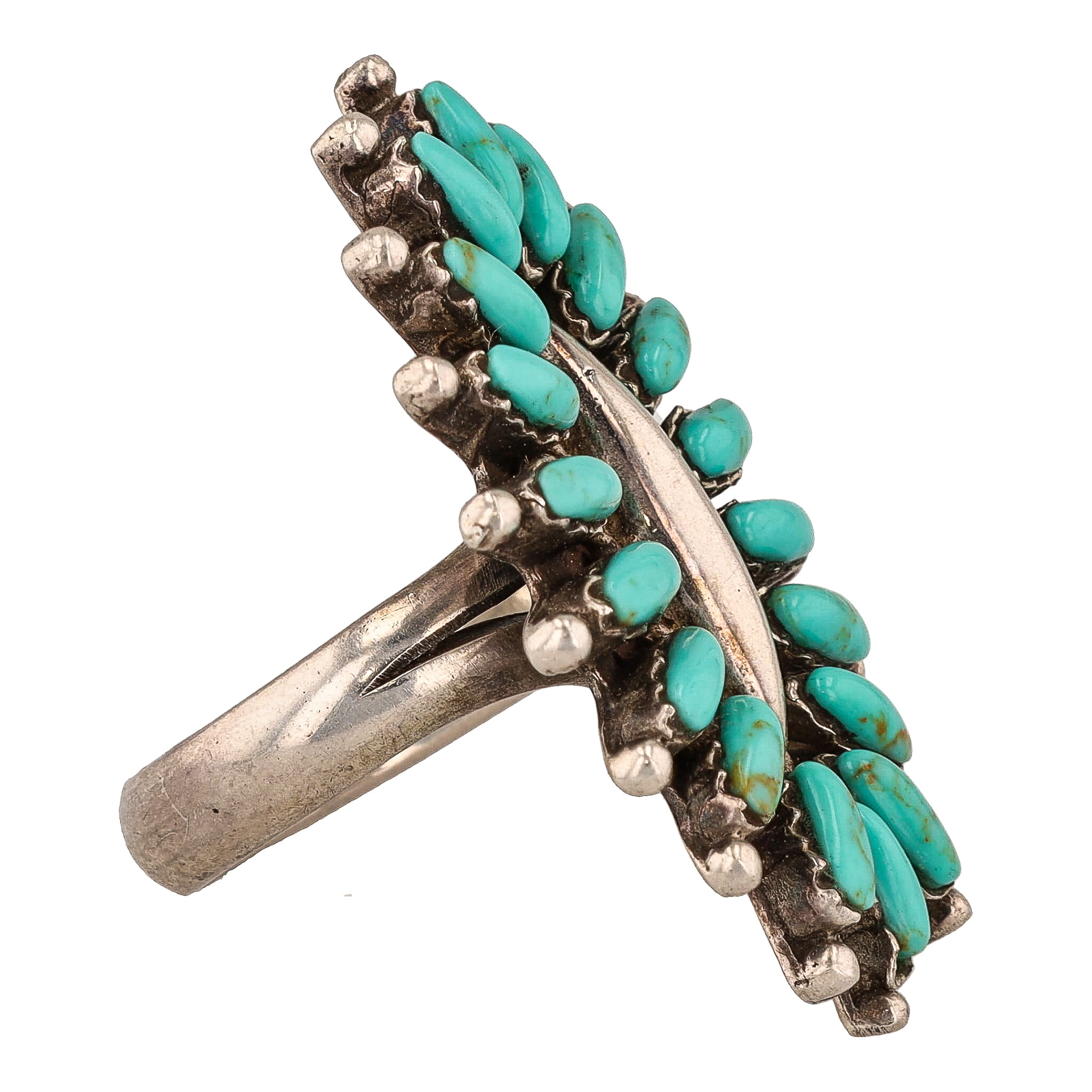 Vintage Zuni Turquoise Sterling Ring Sz. 7.5, 13.5g