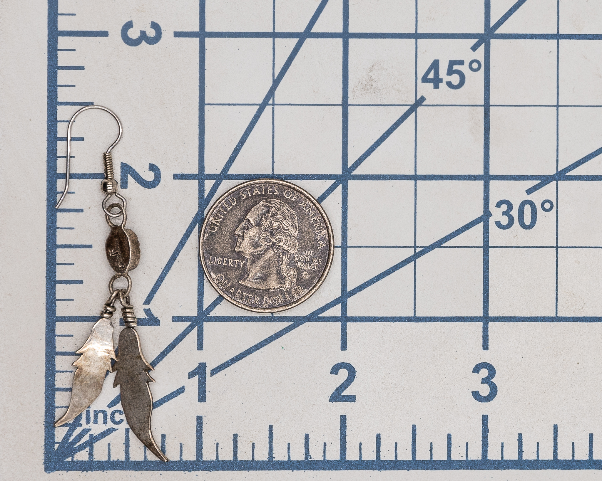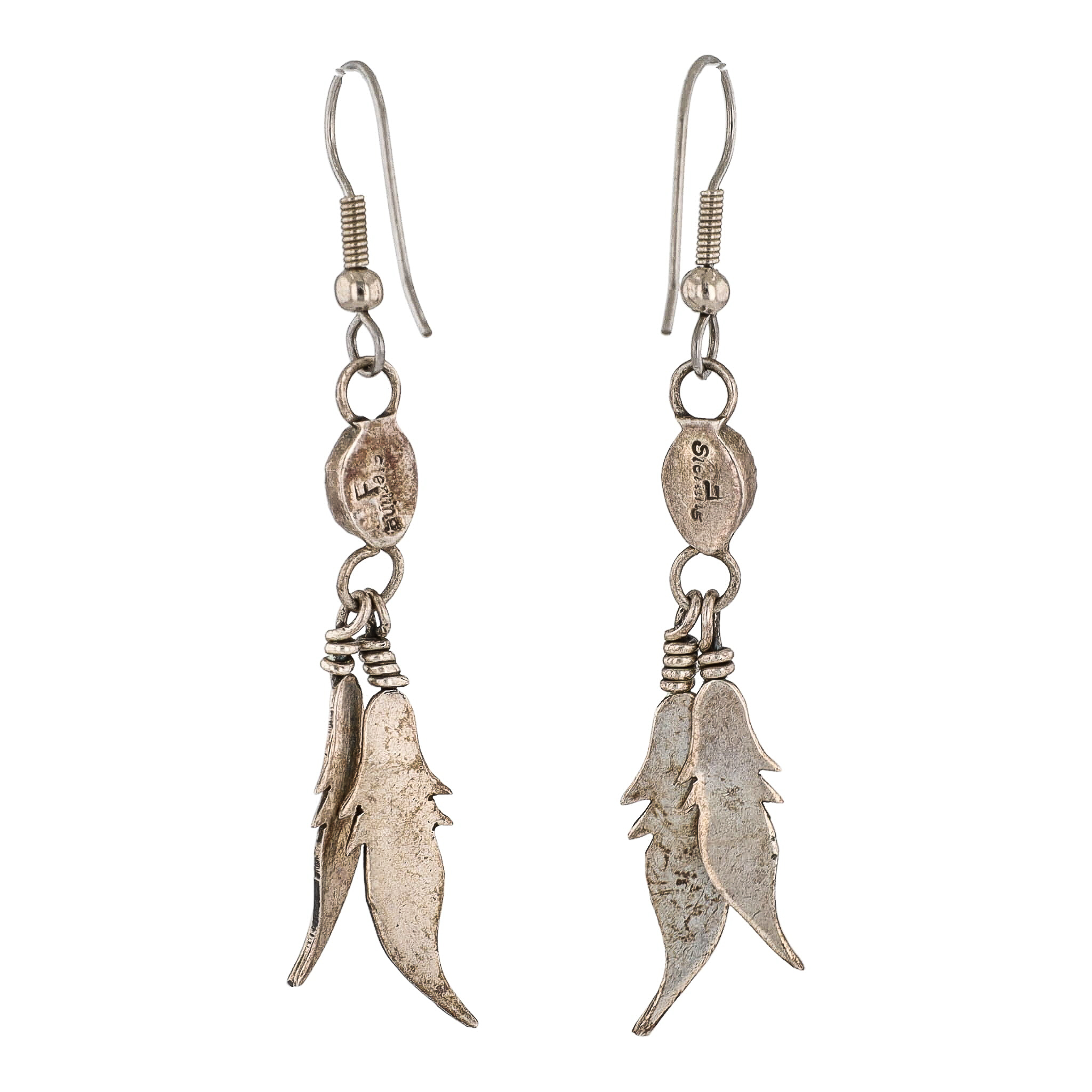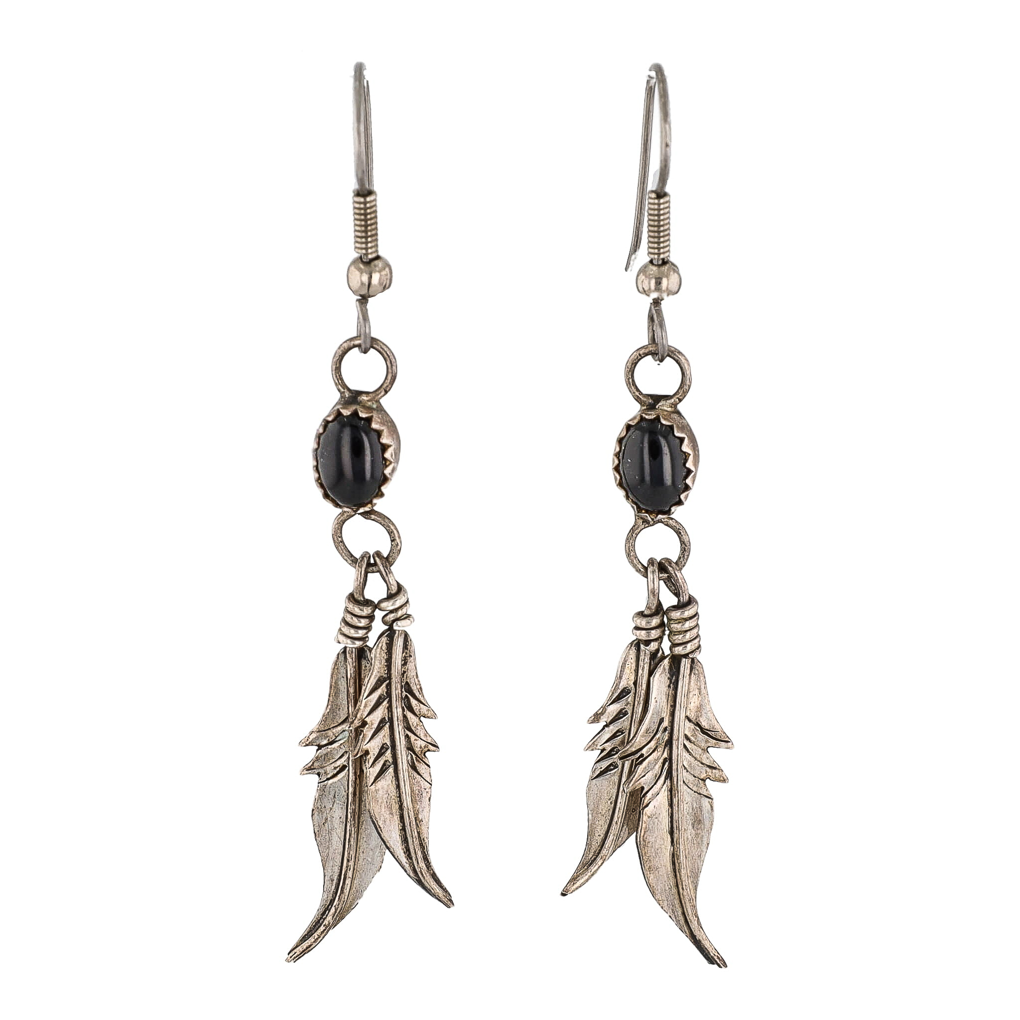 Fannie Platero Navajo Onyx Sterling Feather Drop Dangle Earrings 5g
