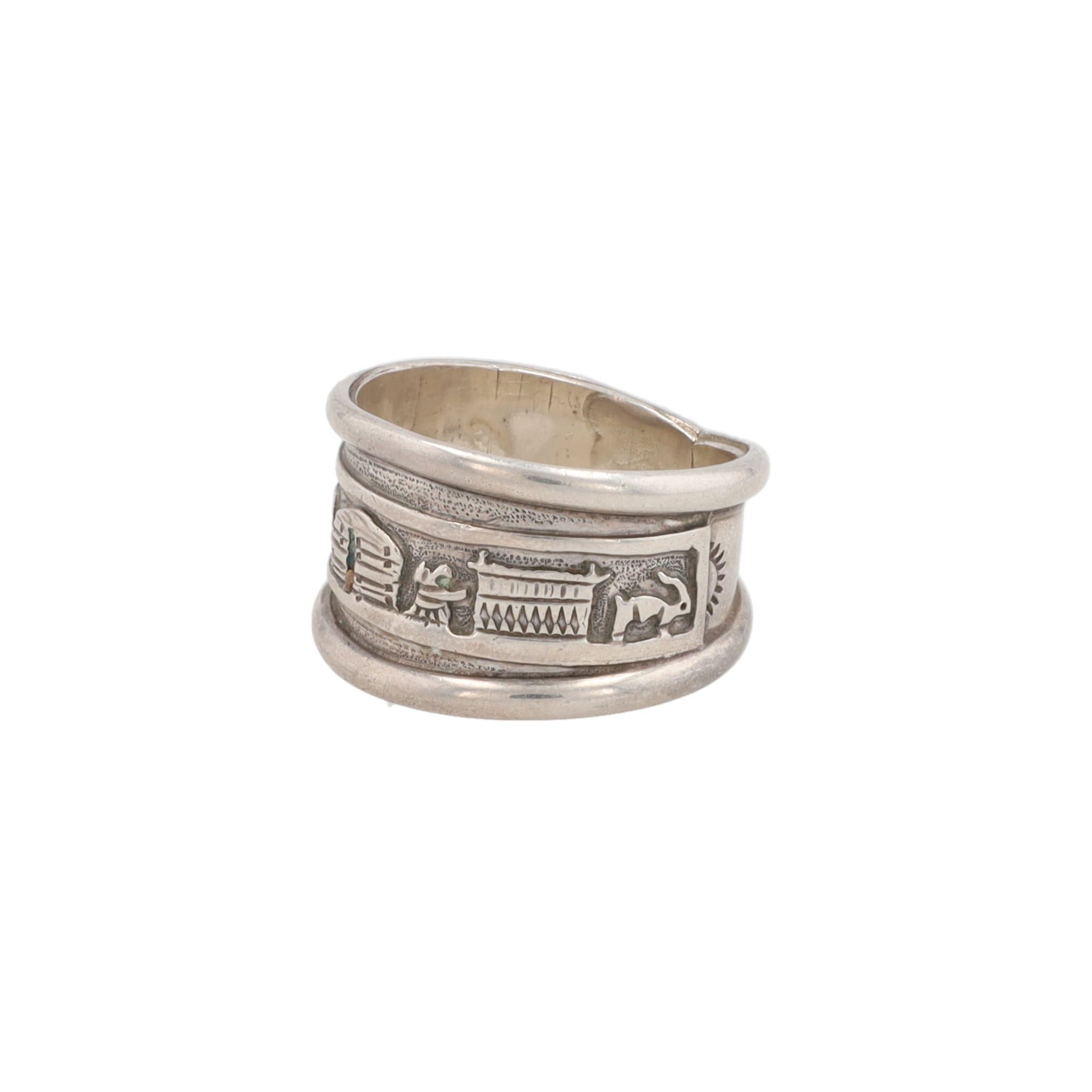 Signed H Navajo Sterling Storyteller Ring Sz. 8.75, 6g