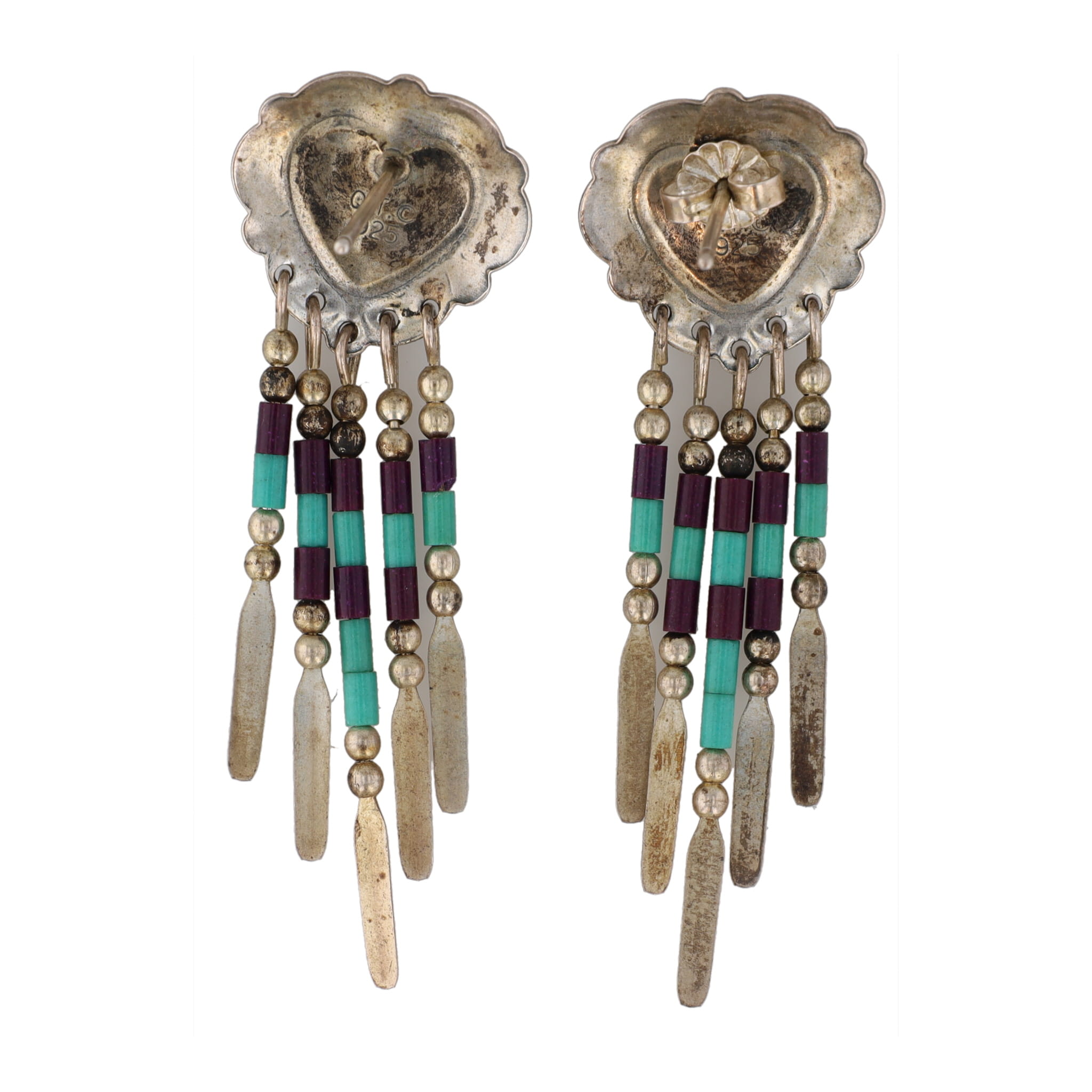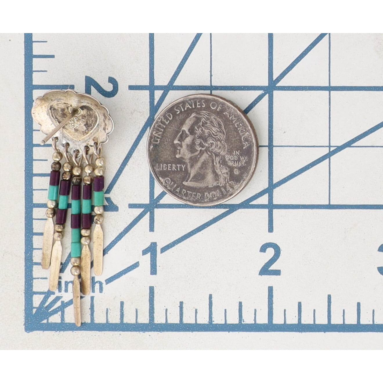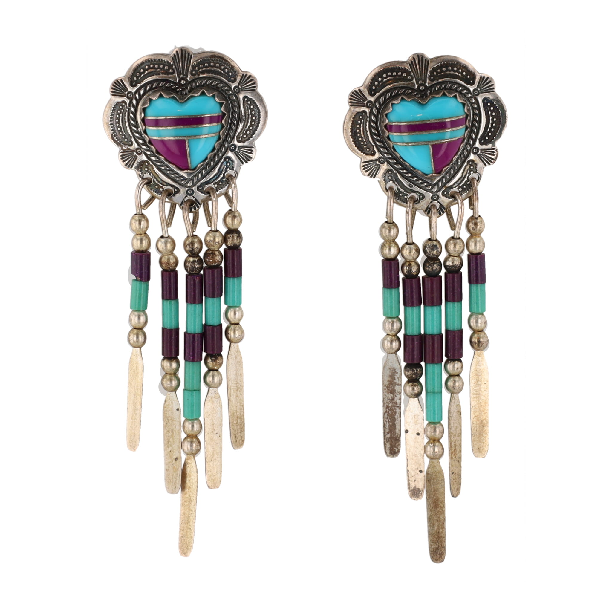 Quoc Trading Post Turquoise Charoite Sterling Inlay Earrings 5.5h