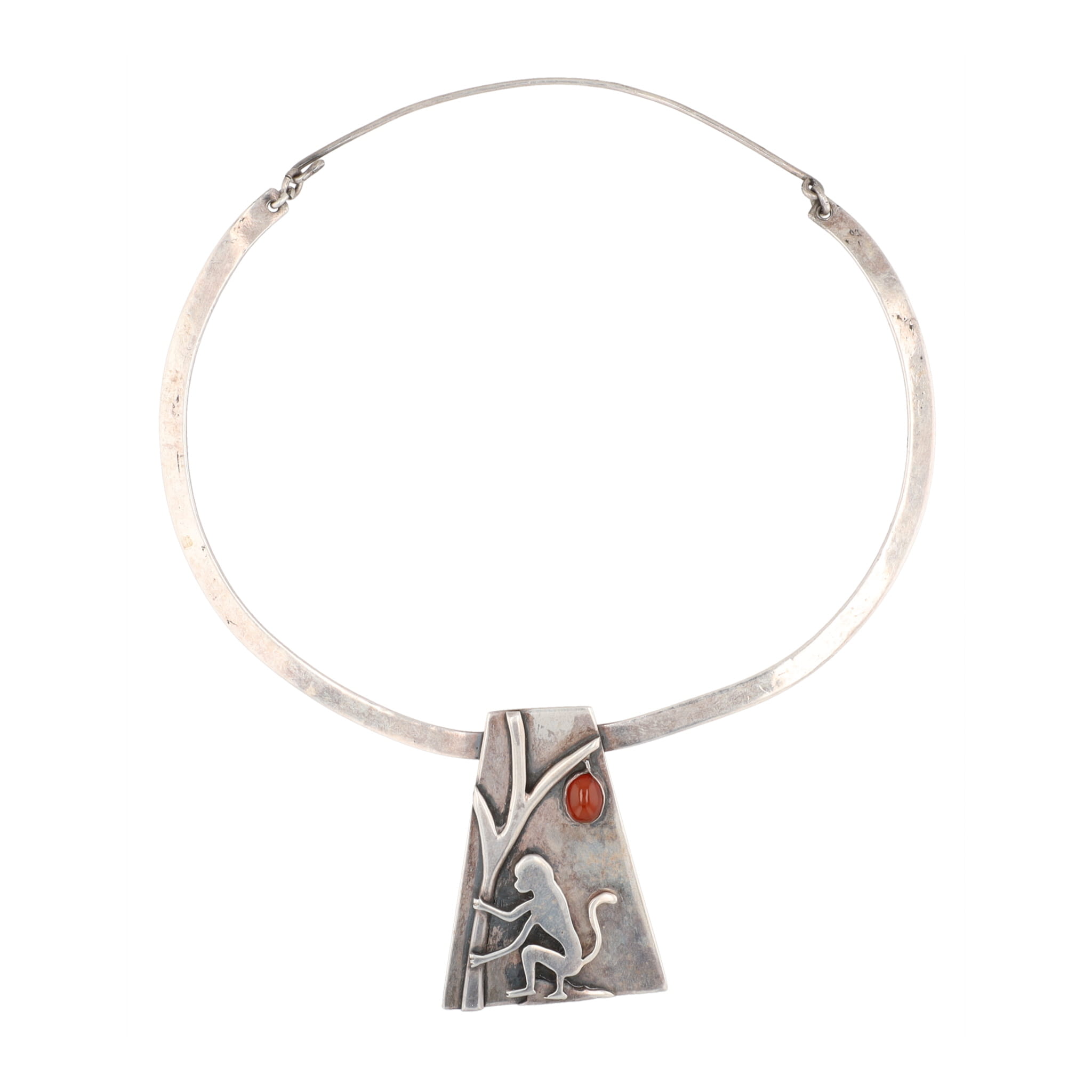 Jane Becker Carnelian Sterling Modernist Monkey Necklace