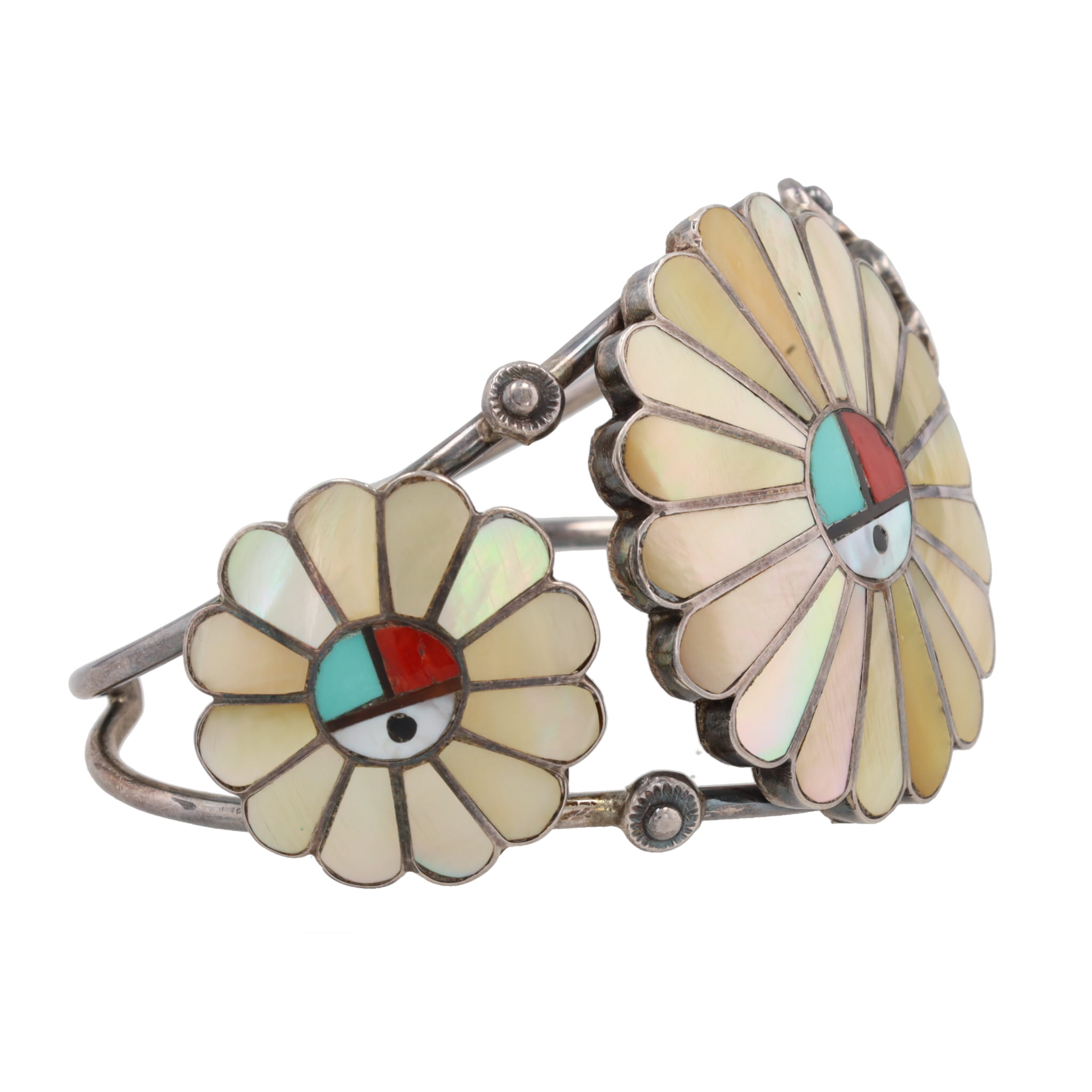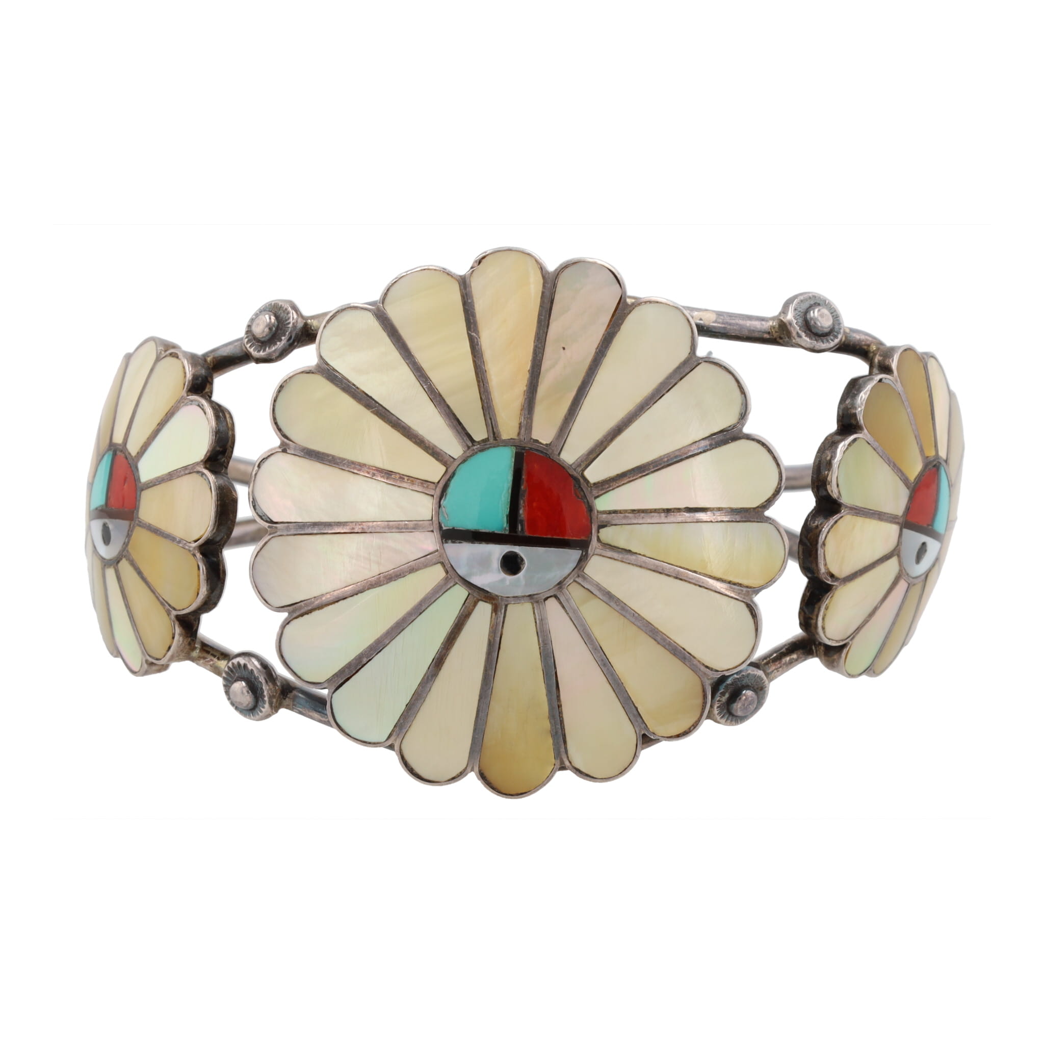Lorinda Dickson Zuni Multi Stone Sterling Sunface Inlay Cuff Bracelet