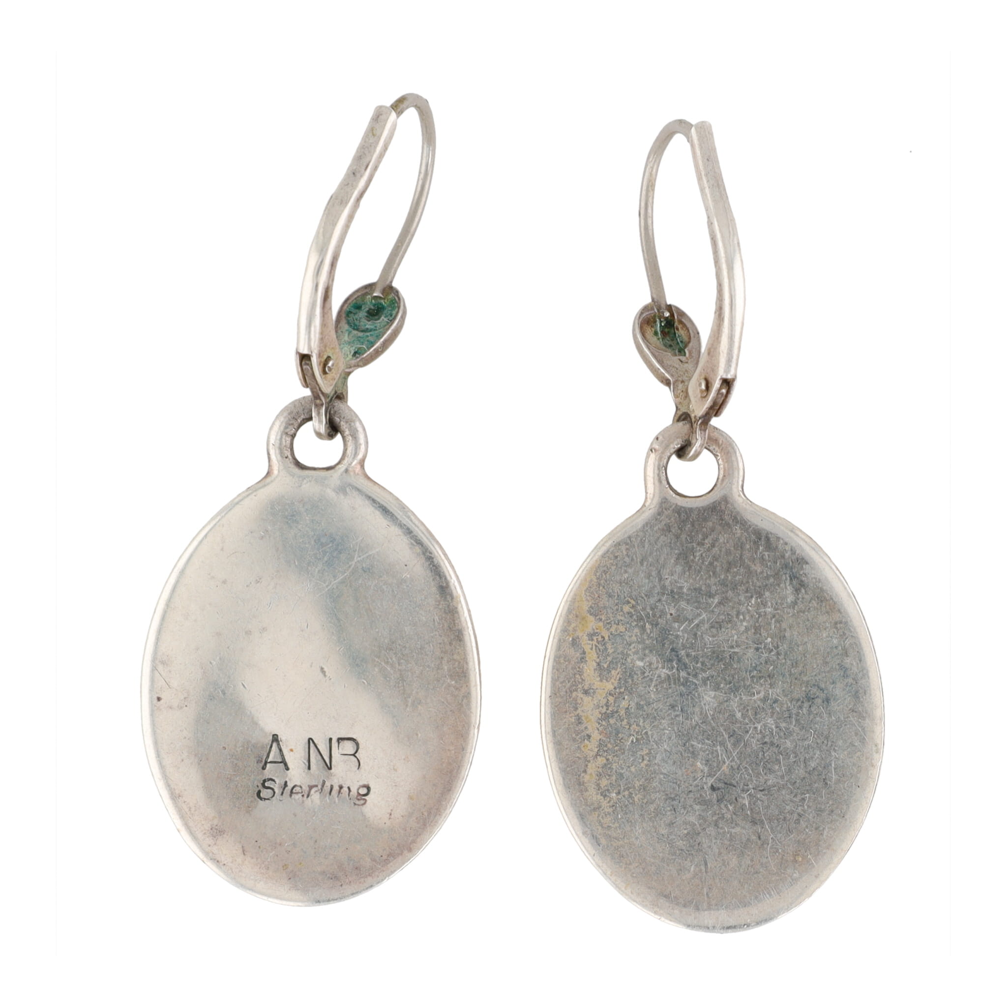 Signed ANB Navajo White Buffalo Turquoise Sterling Dangle Earrings 10.5g