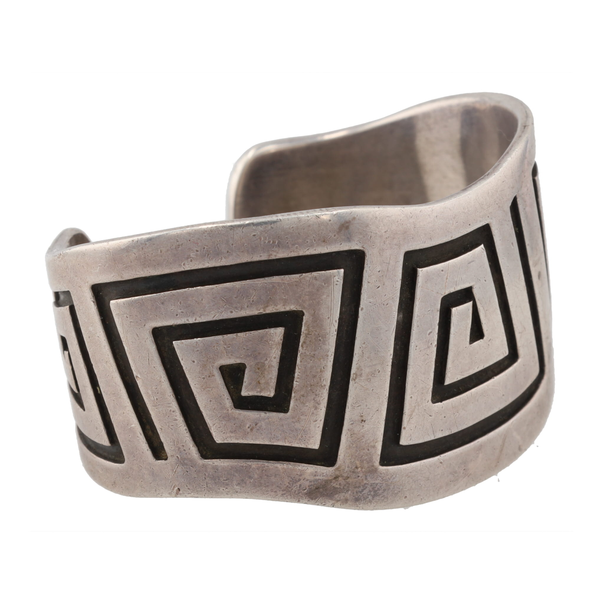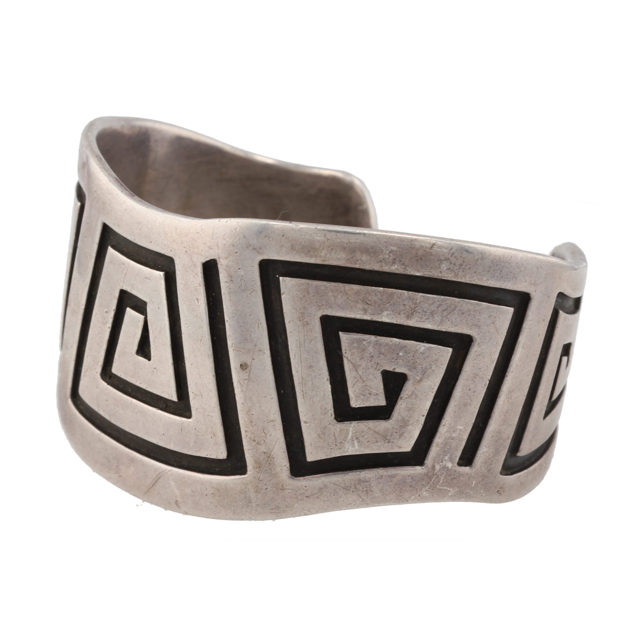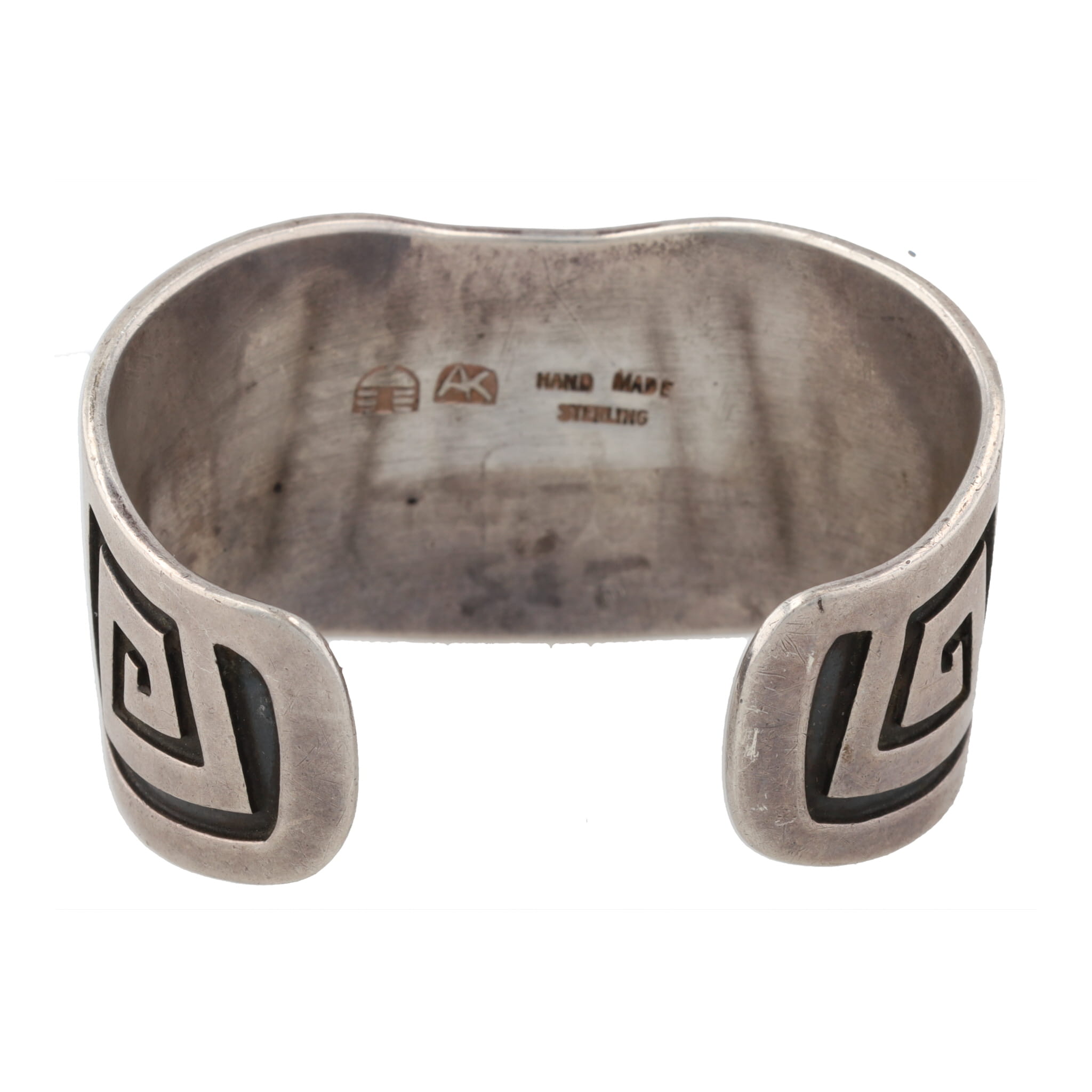 Rare Allen Kee Navajo White Hogan Shop Sterling Overlay Maze Cuff Bracelet 16g, 1950’s-60’s