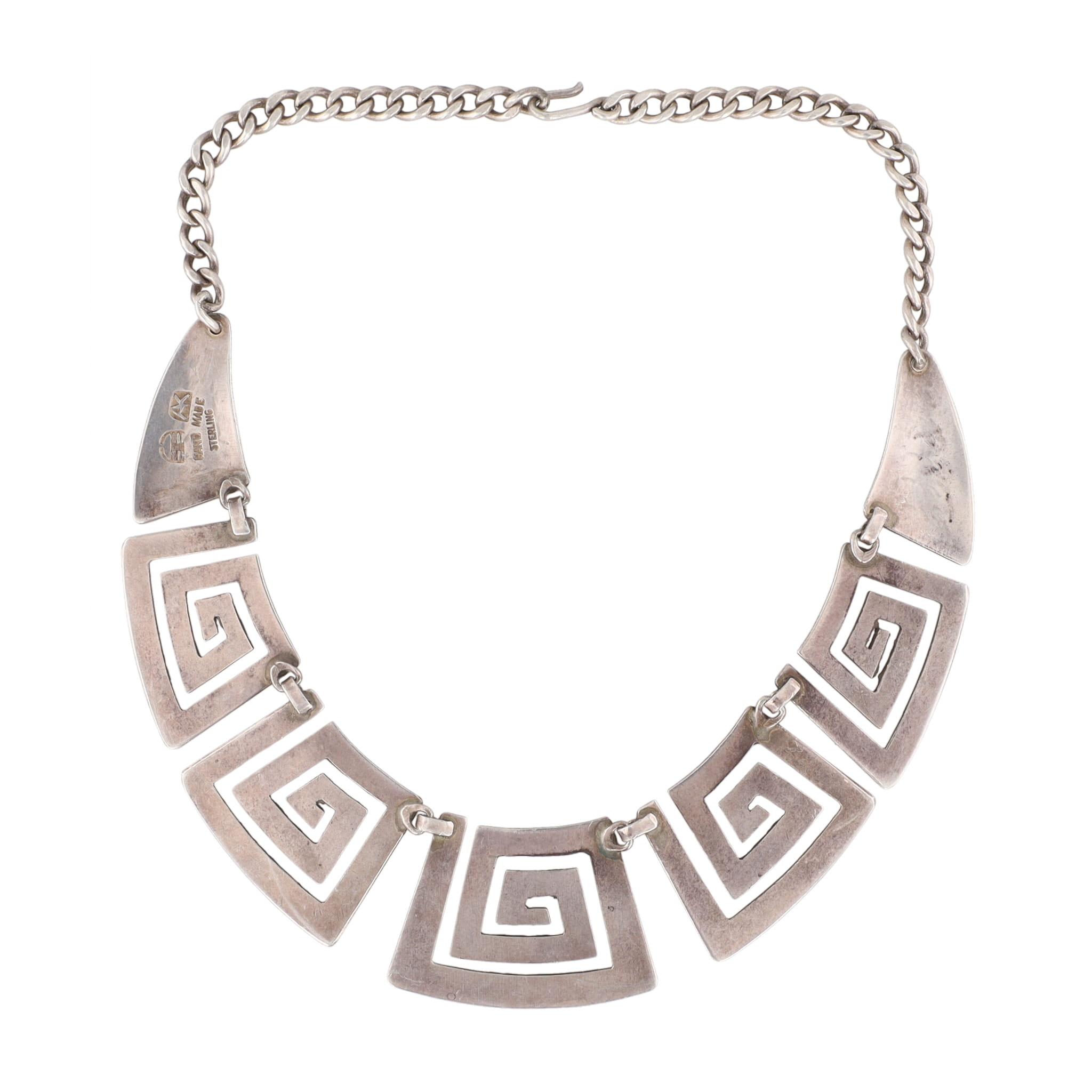 Rare Allen Kee Navajo White Hogan Shop Sterling Maze Necklace 51.5g, 1950’s-60’s