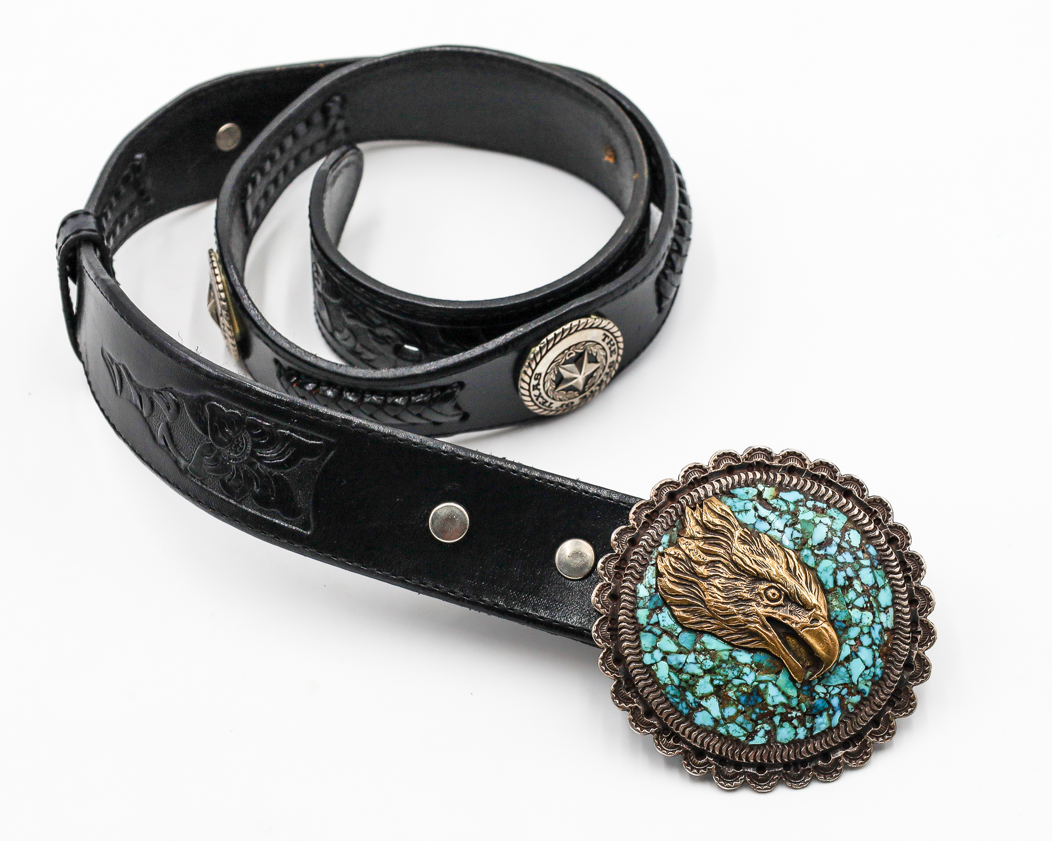 Huge Navajo Crushed Turquoise Sterling Belt Buckle Leather Belt. Buckle Only Weight 178g