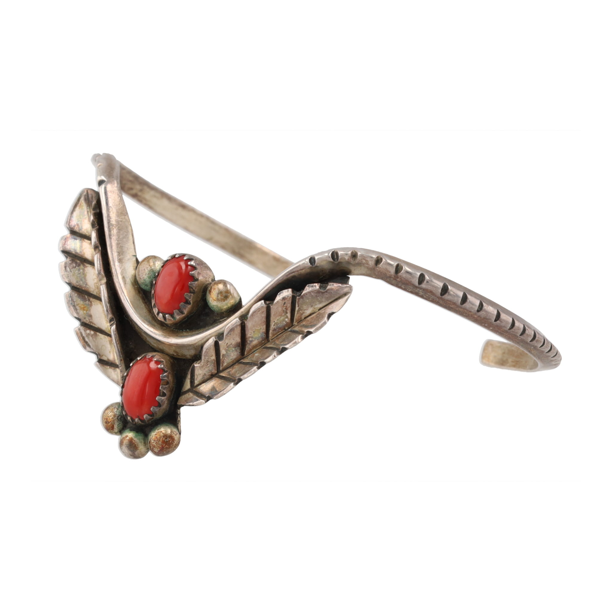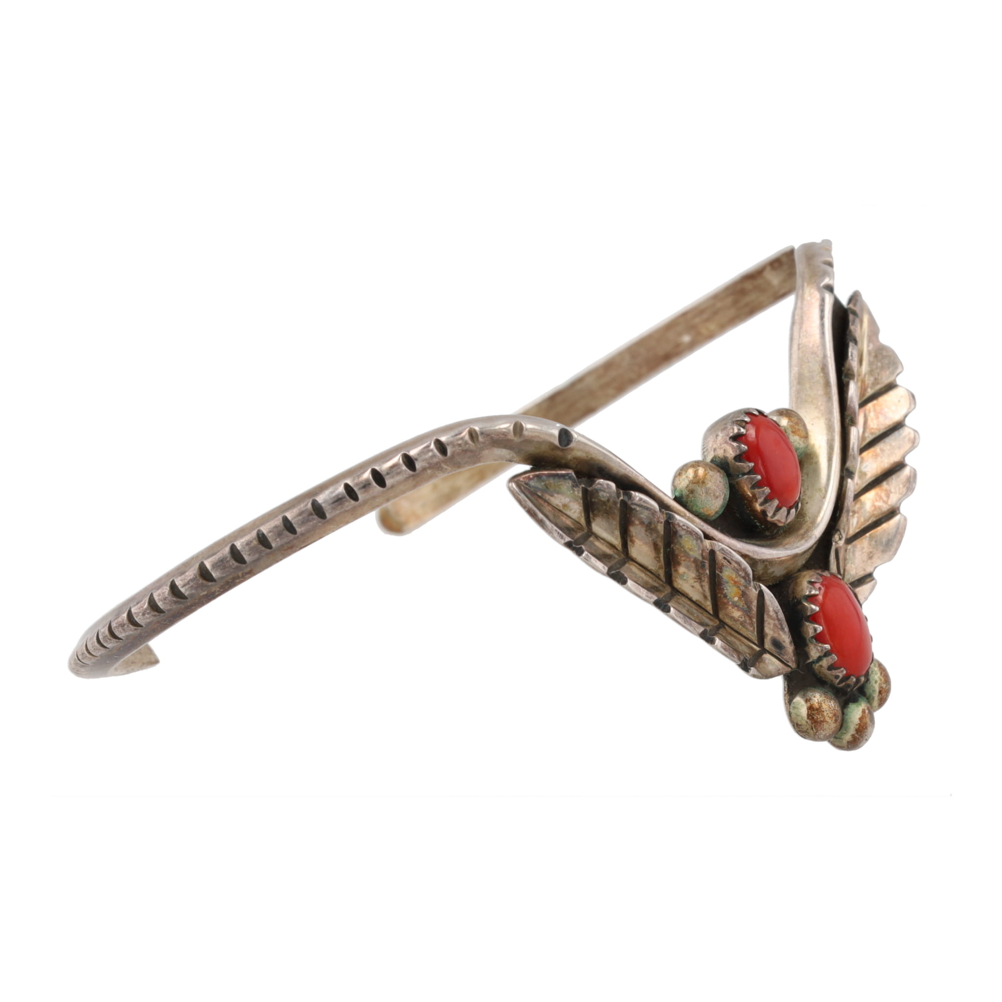 Mary S Lew Navajo Coral Sterling Cuff Bracelet 13g