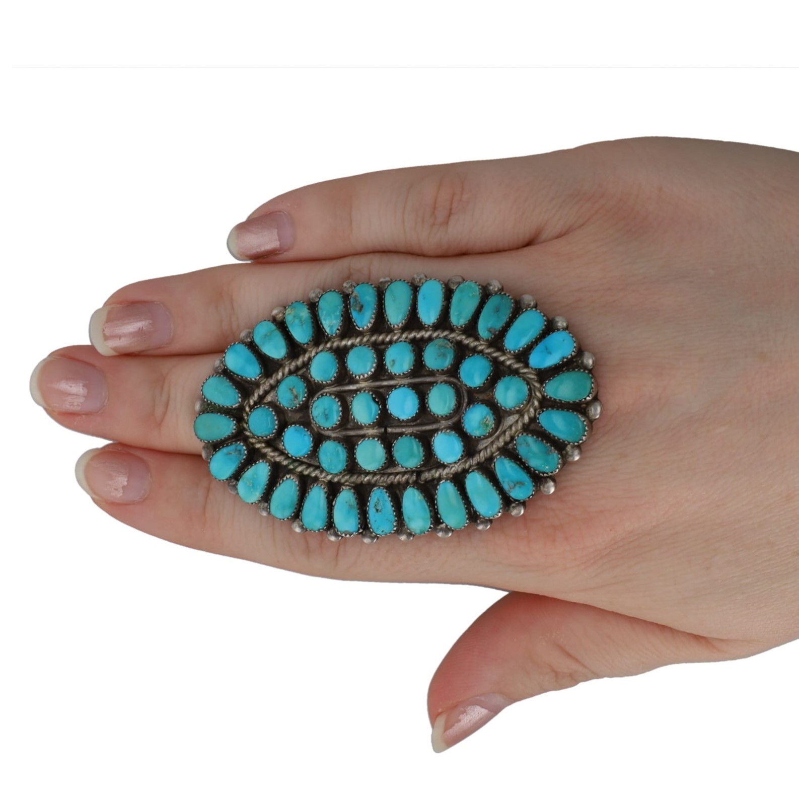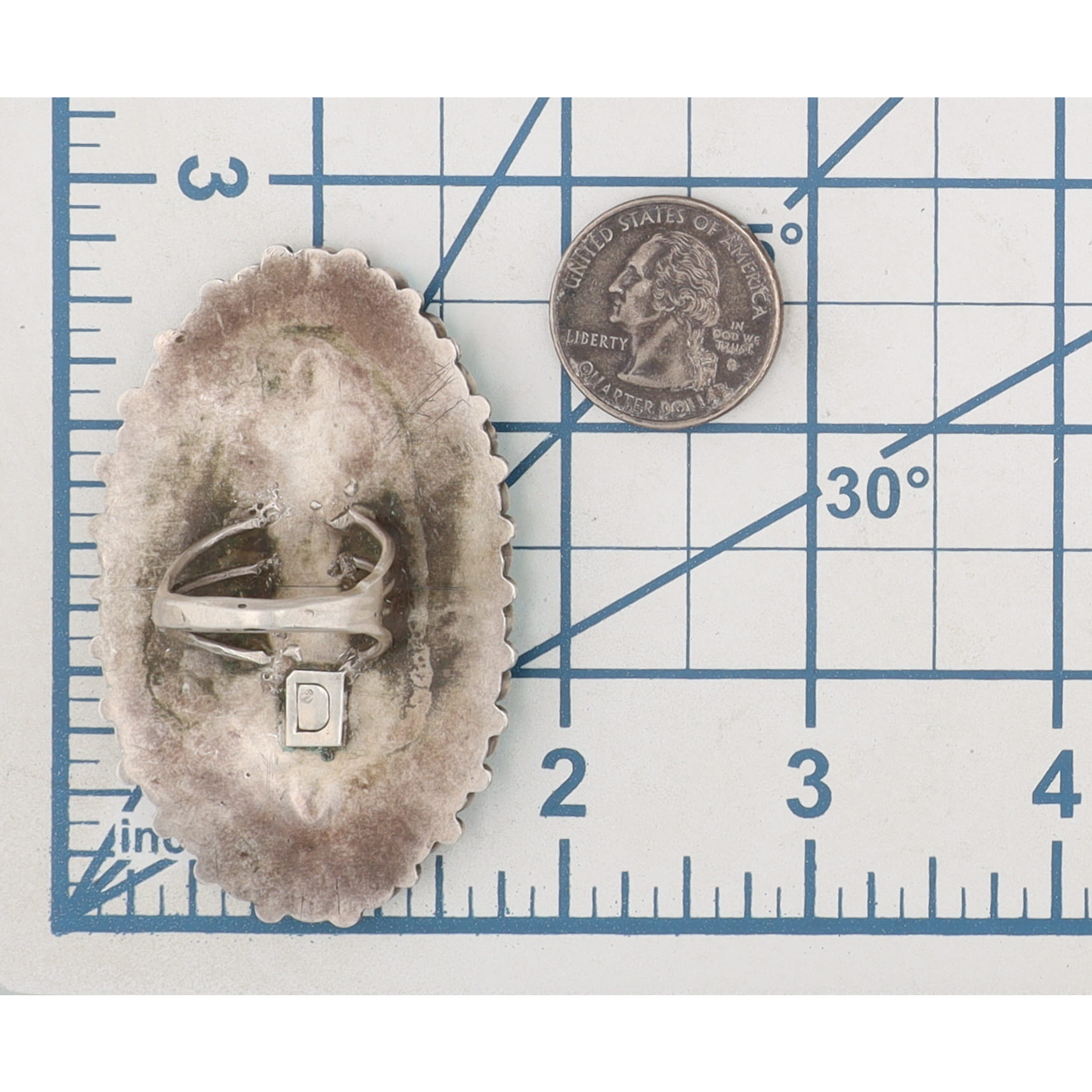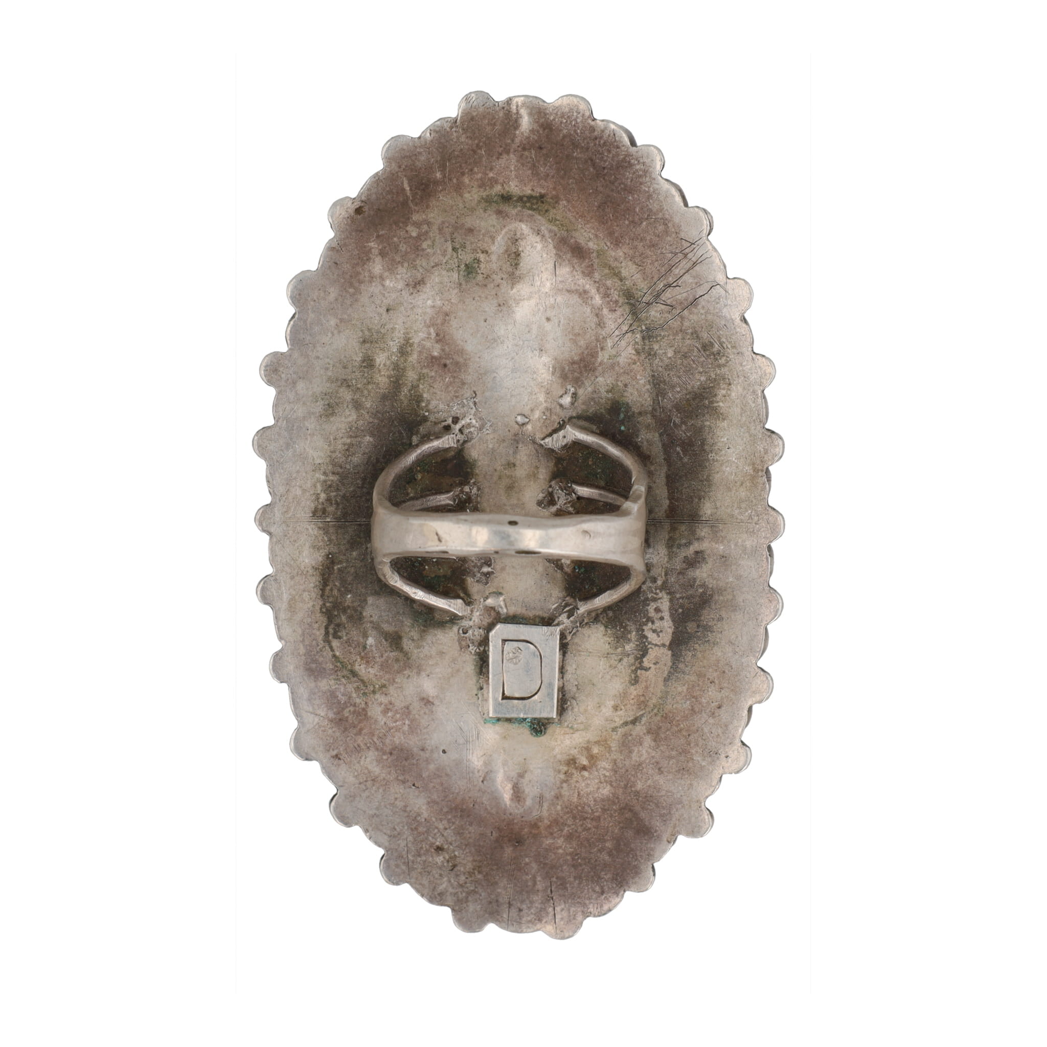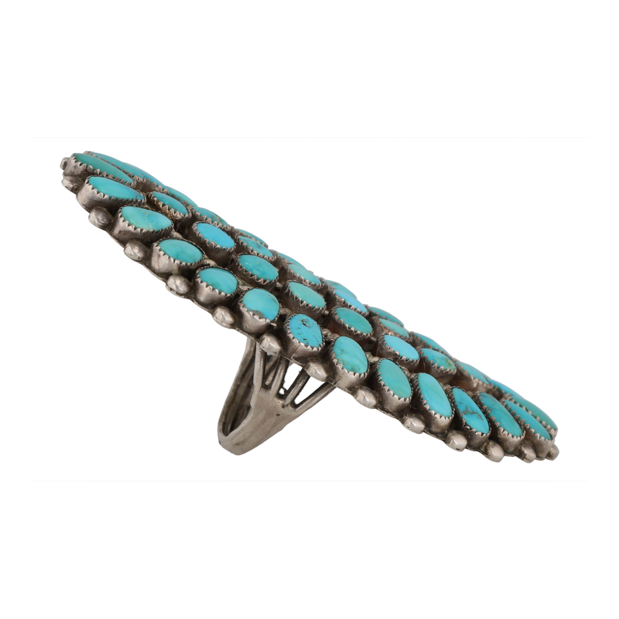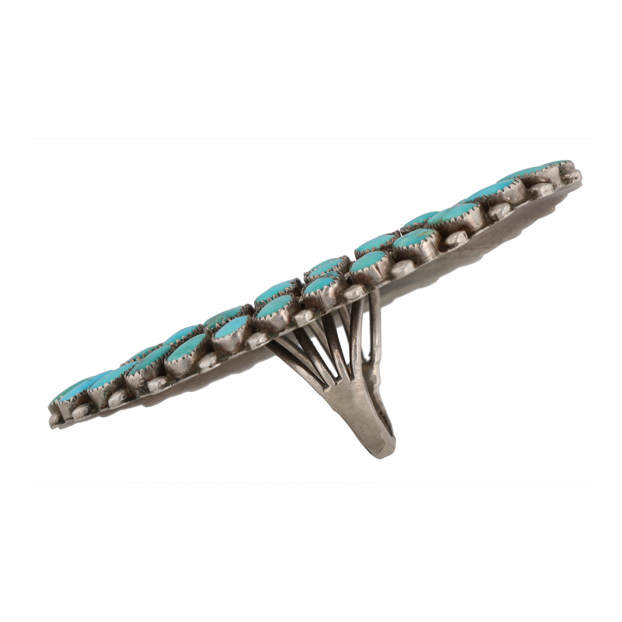 Huge Signed D Navajo Turquoise Cluster Sterling Ring Sz. 8, 26g