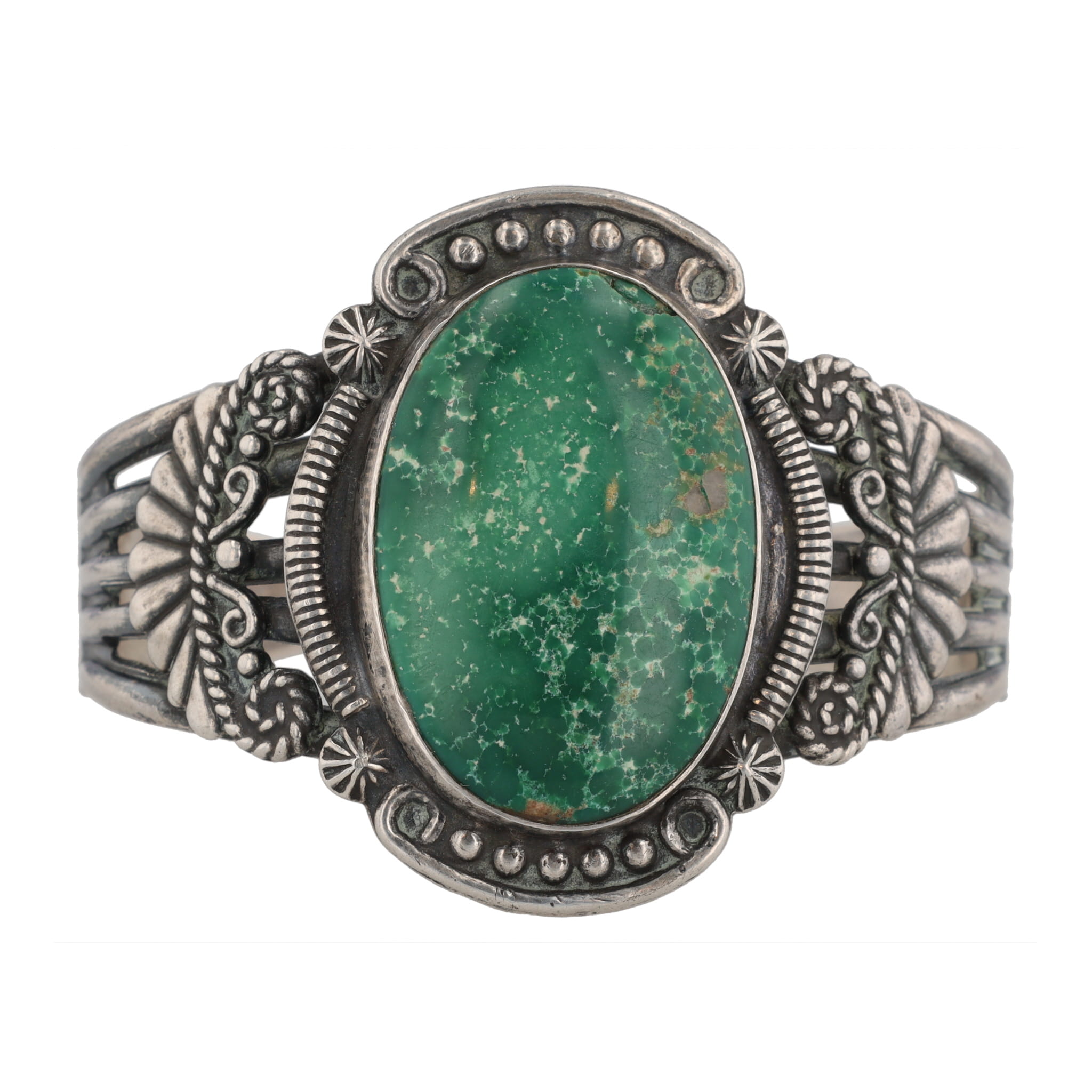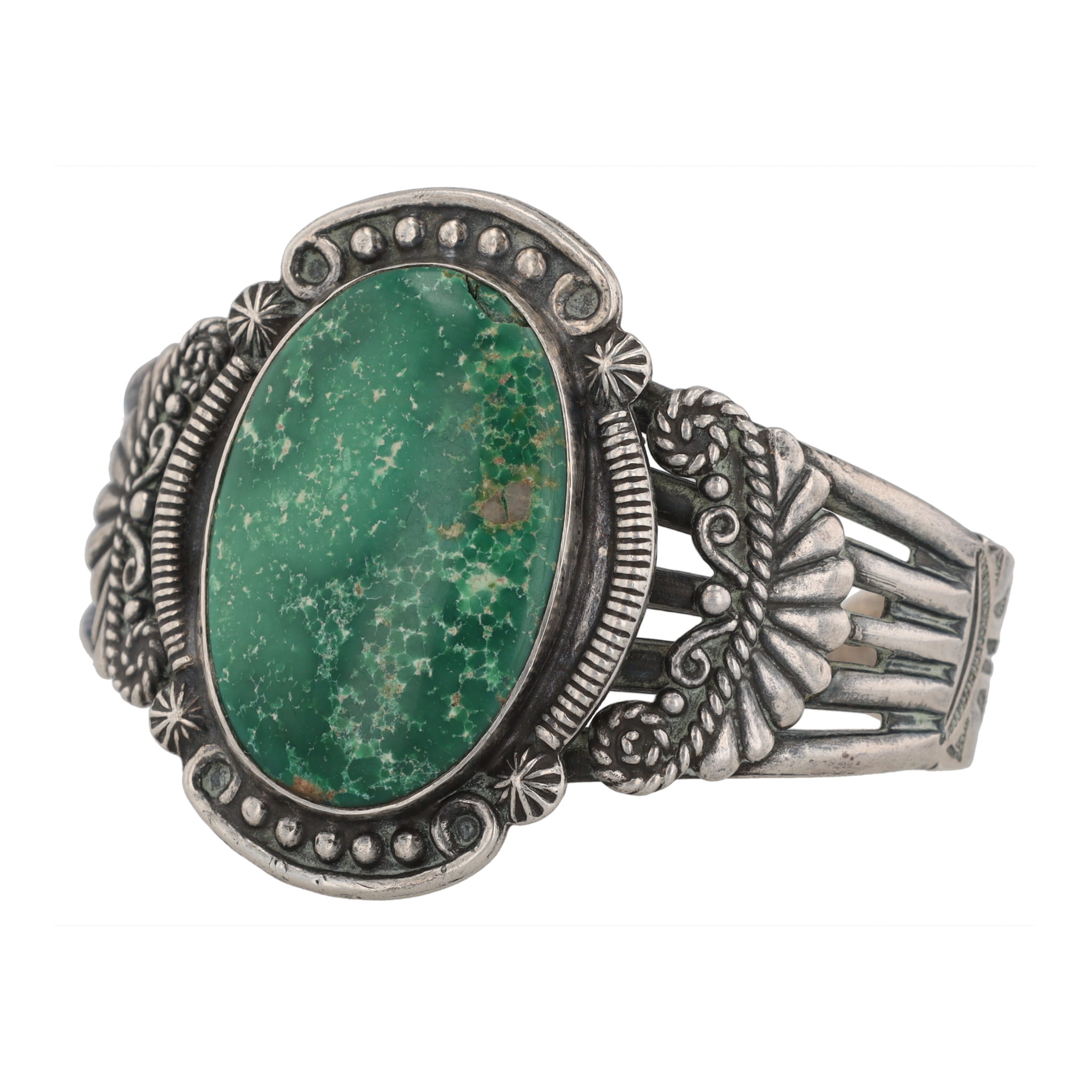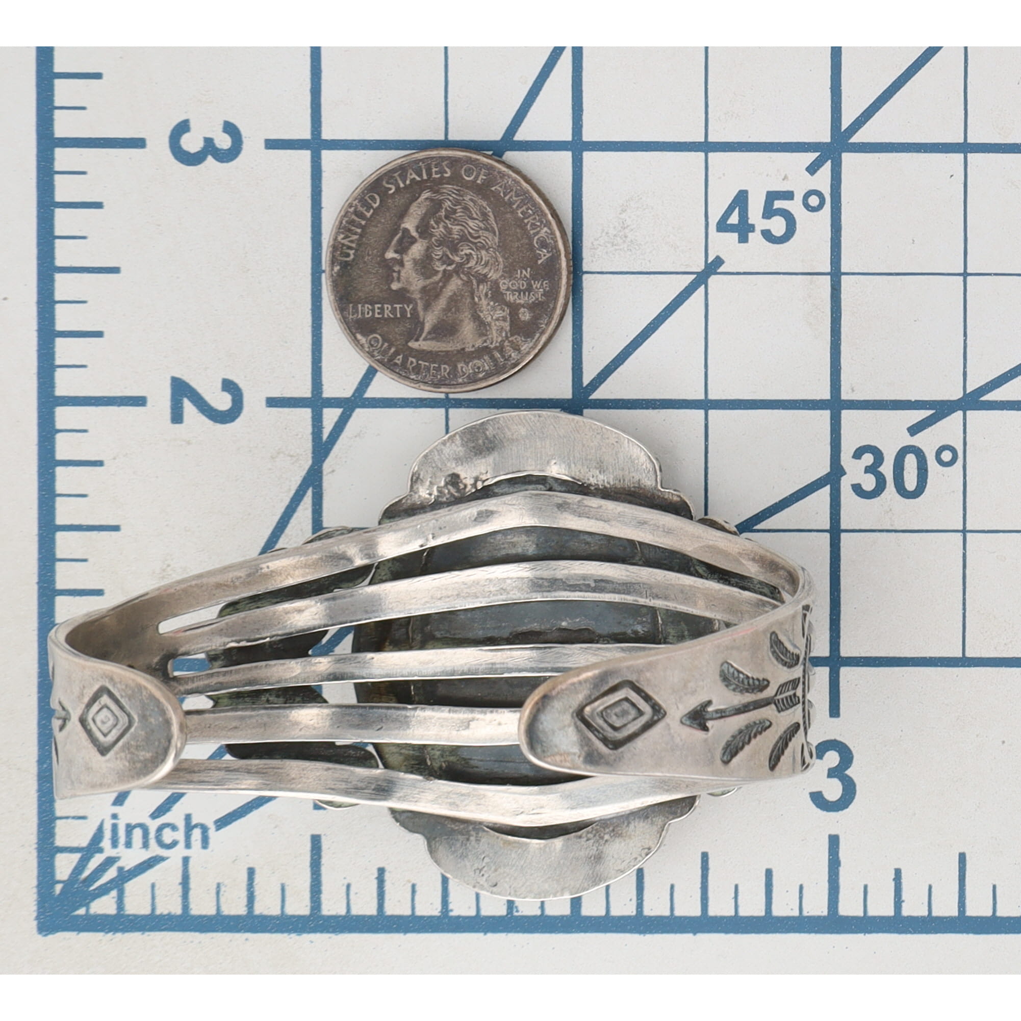 Early Navajo Nickel Silver Green Turquoise Cuff Bracelet 55.5g