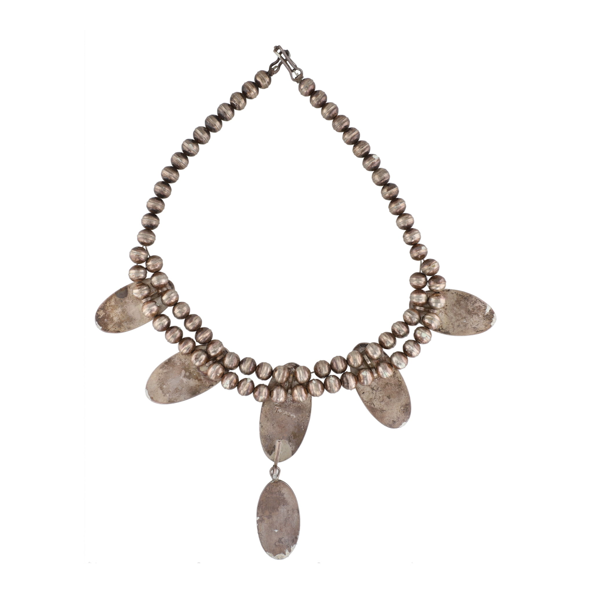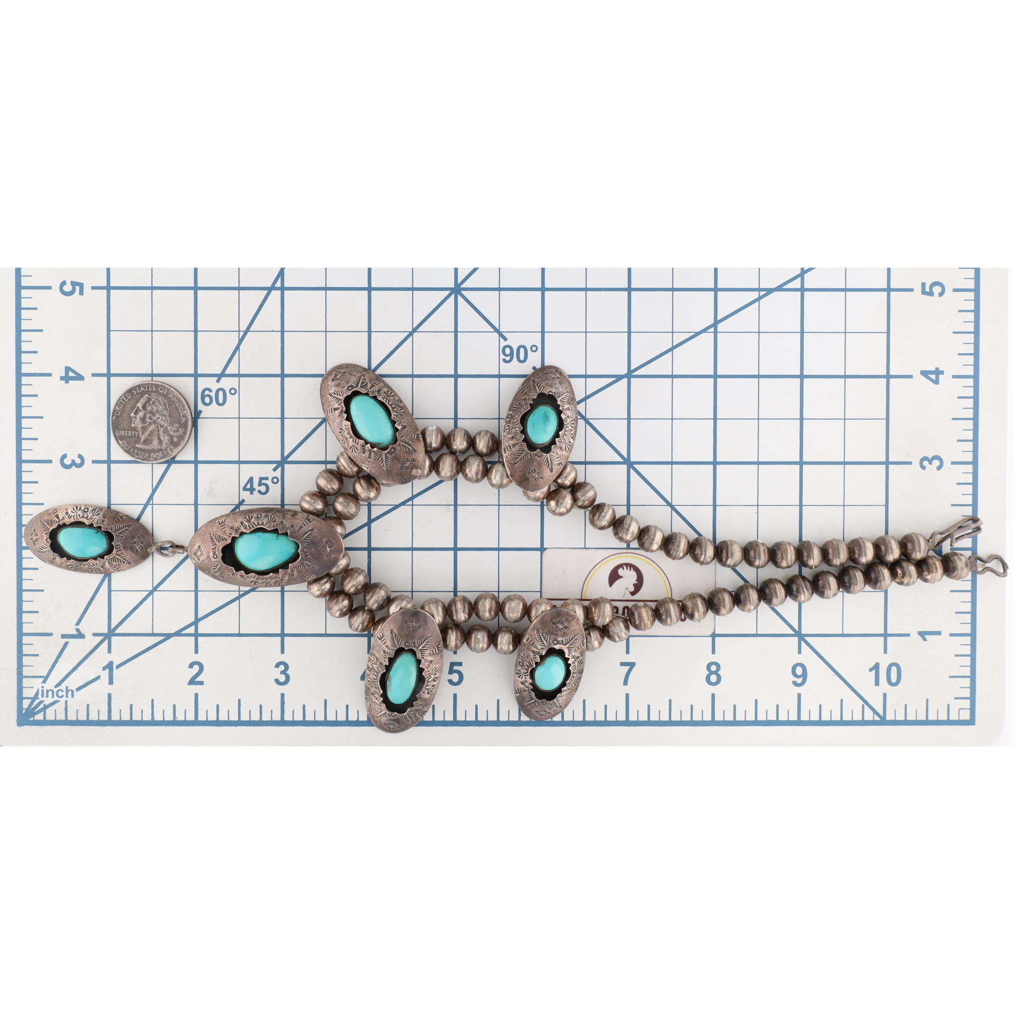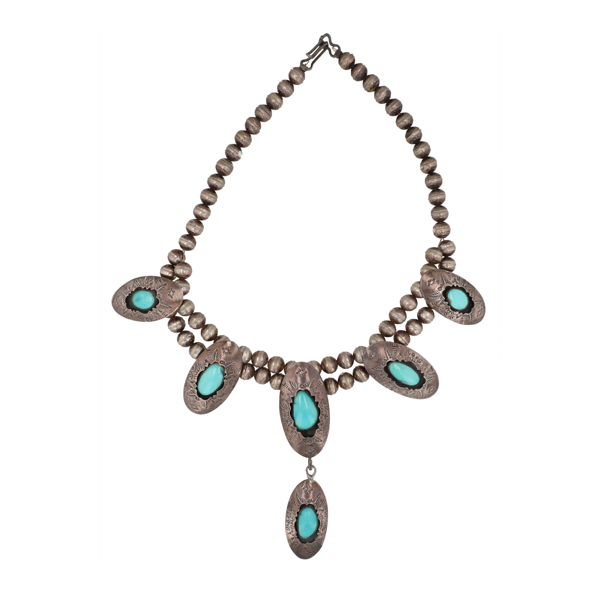 Teresa Signed Navajo Turquoise Sterling Bead Shadow Box Necklace 73.5g