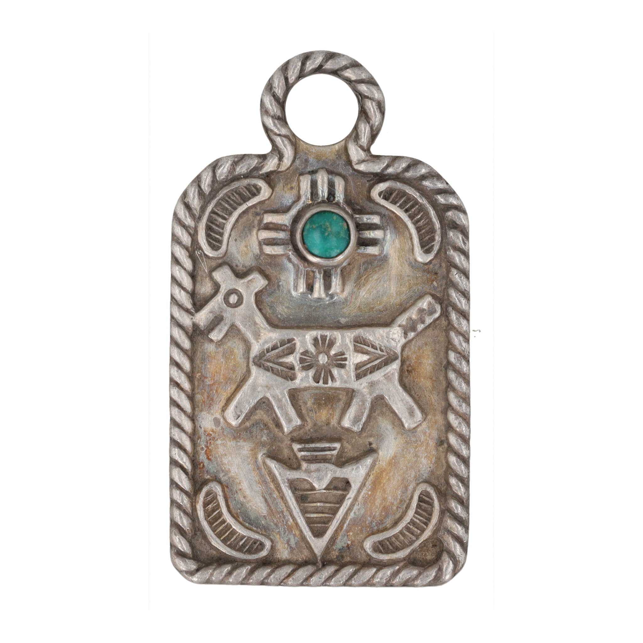 Navajo Turquoise Sterling Pictograph Pendant 6.5g