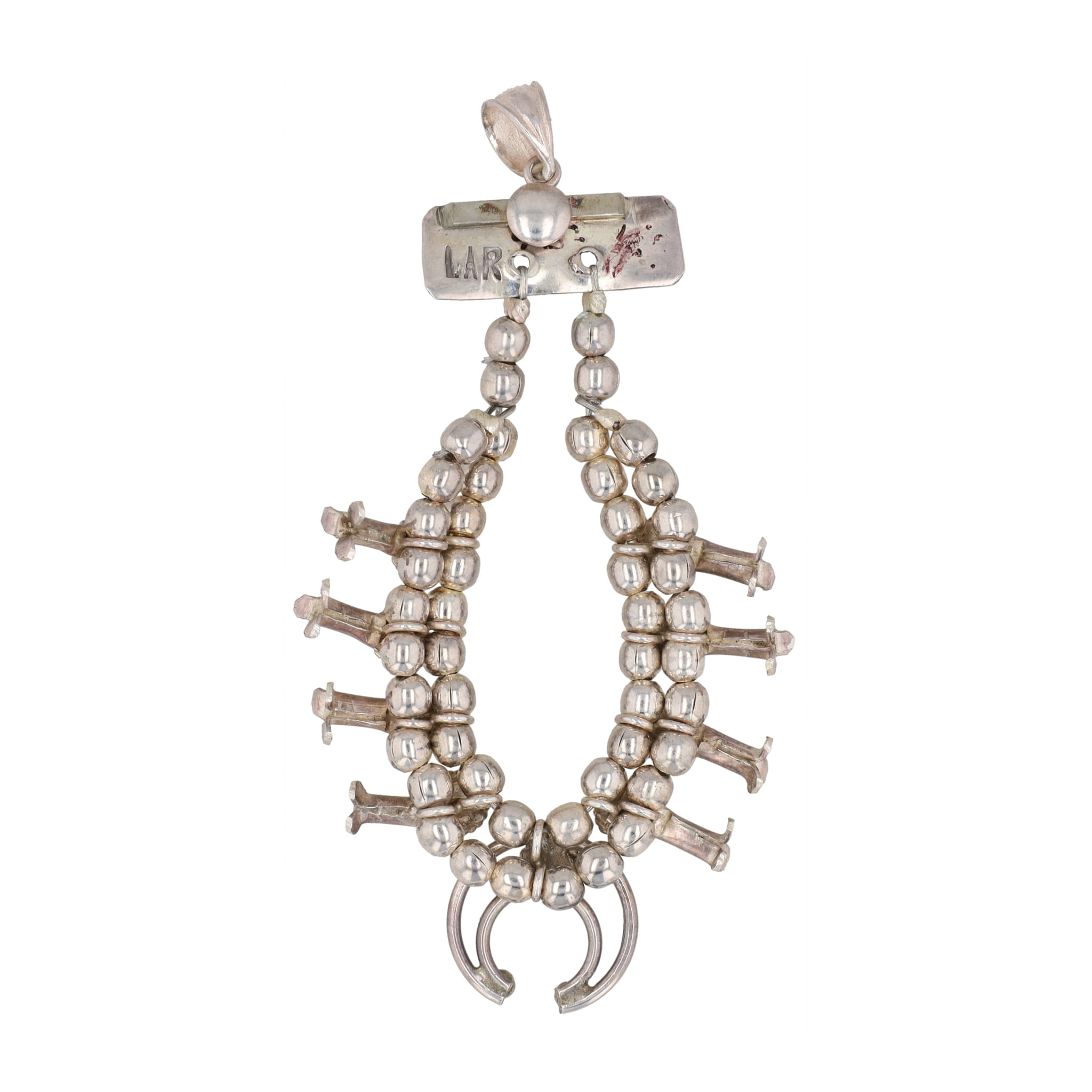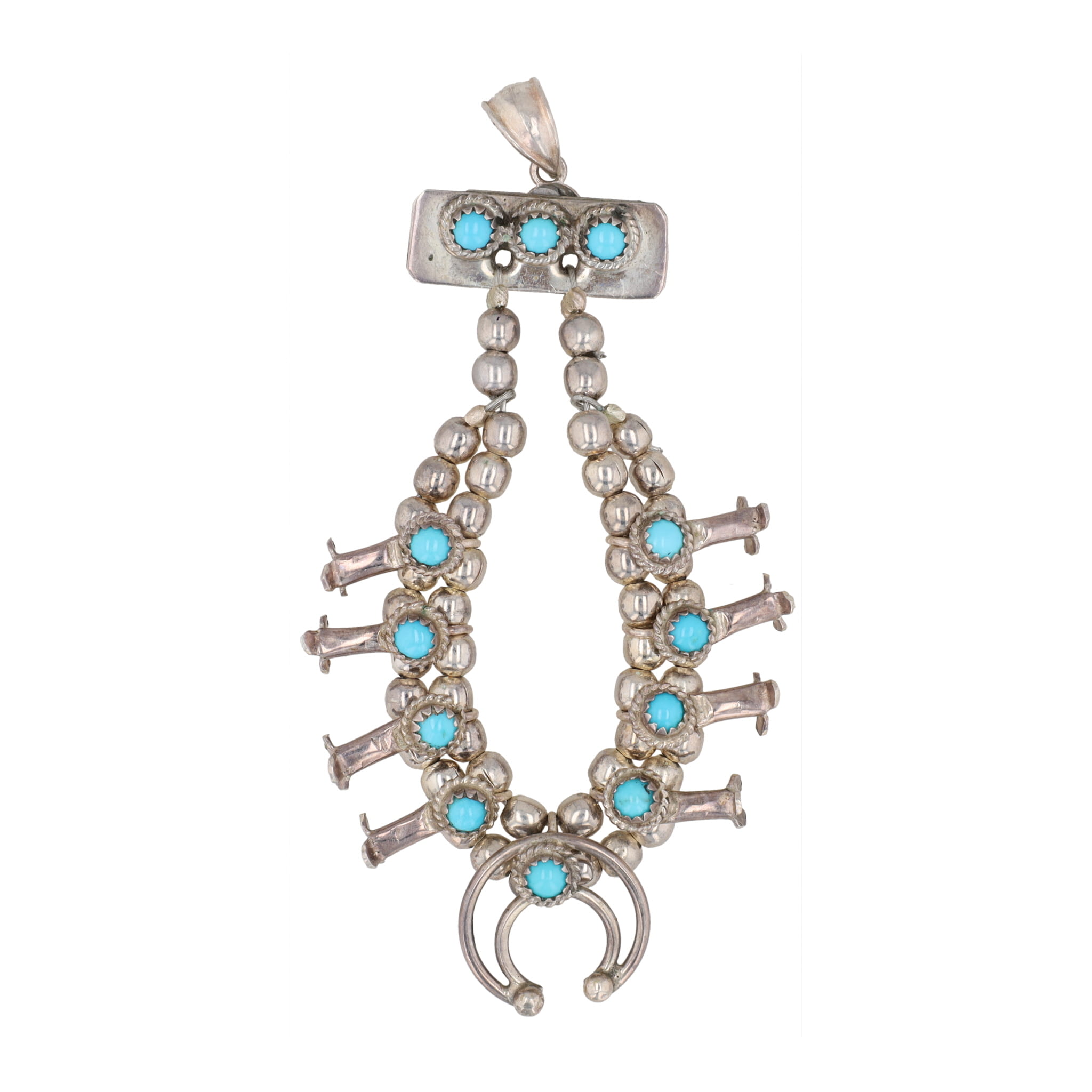 Signed Navajo Snake Eye Turquoise Sterling Mini Squash Blossom Pendant