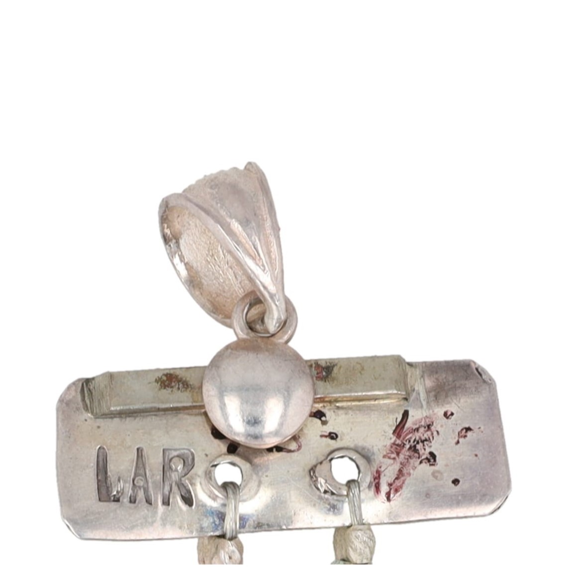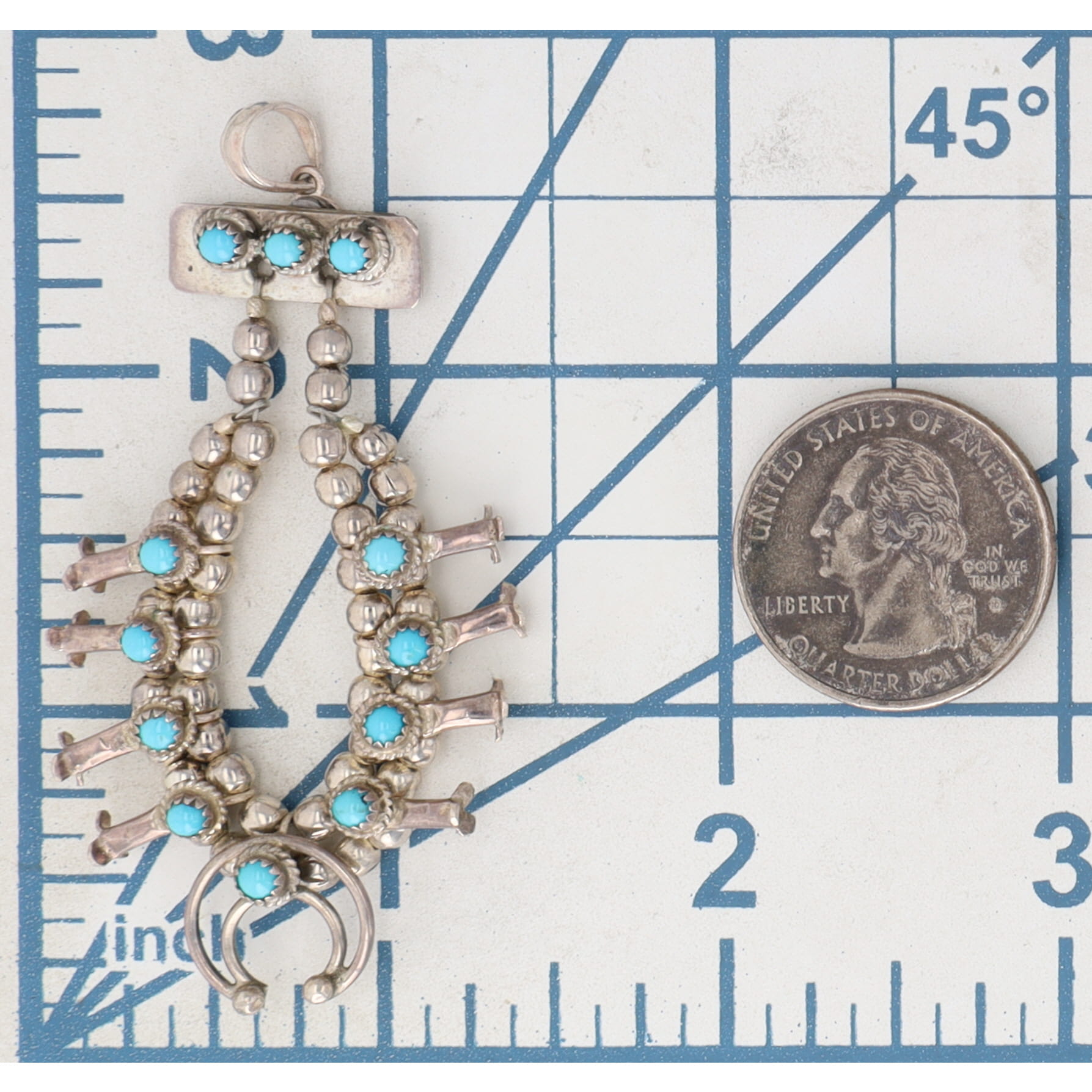 Signed Navajo Snake Eye Turquoise Sterling Mini Squash Blossom Pendant 9.5g