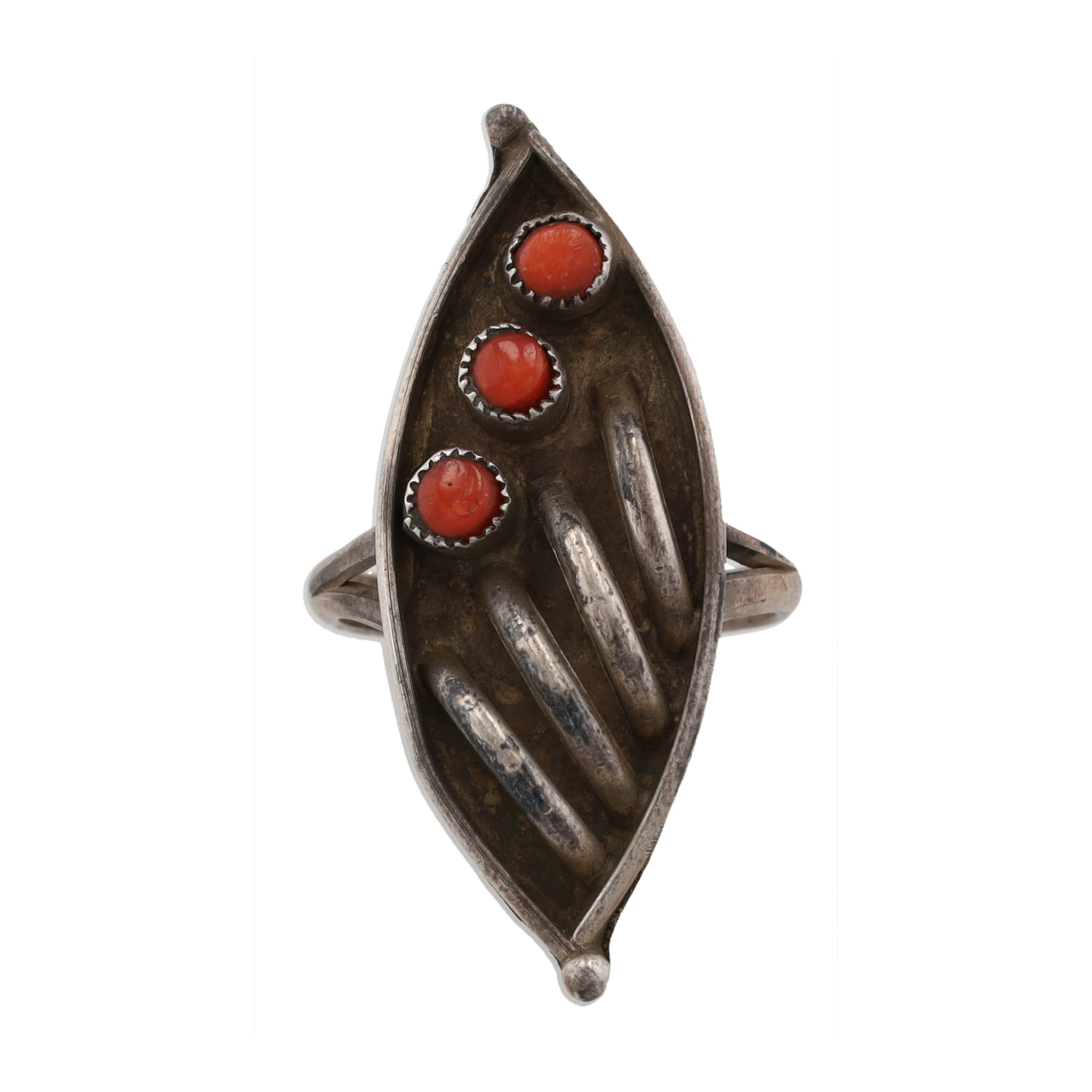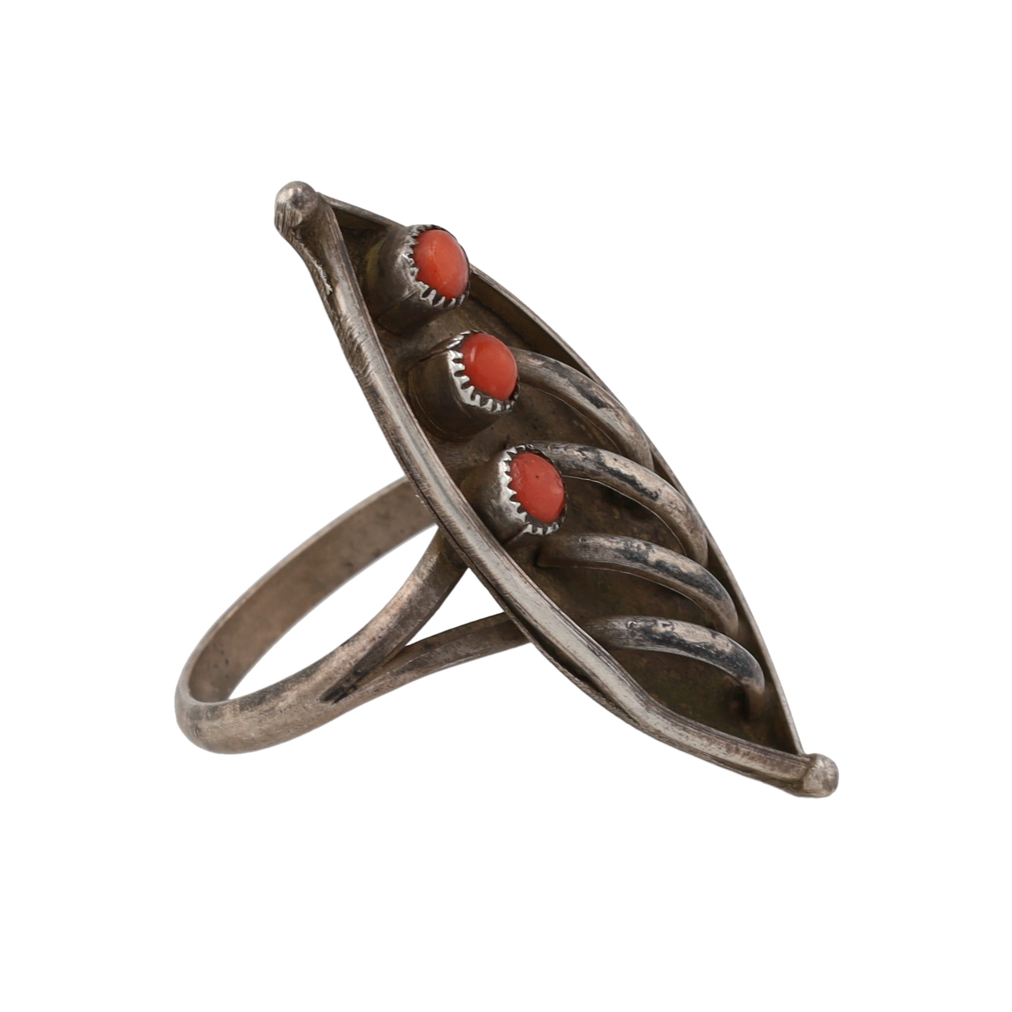 DA Dishta Zuni Coral Sterling Ring Sz. 7, 4.5g