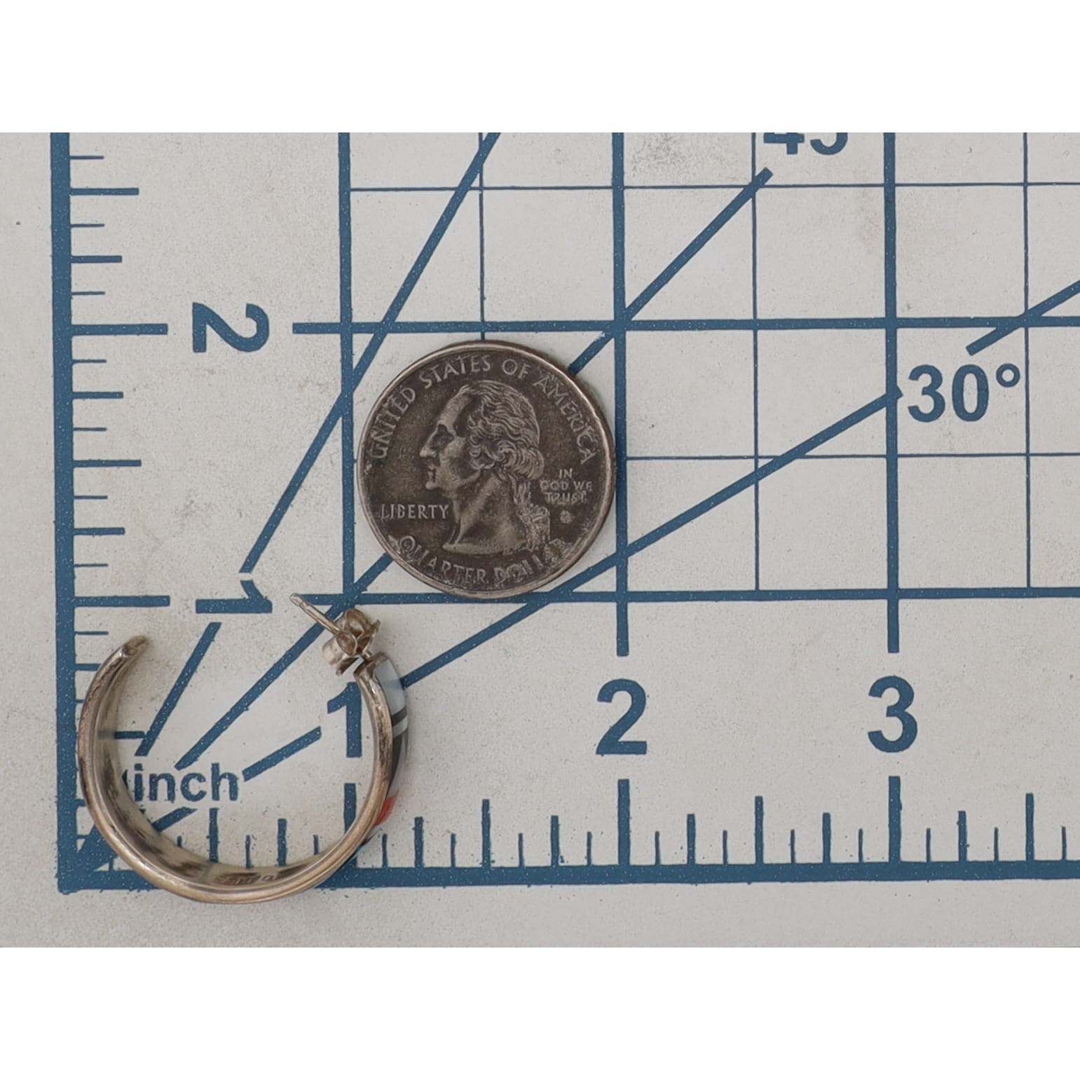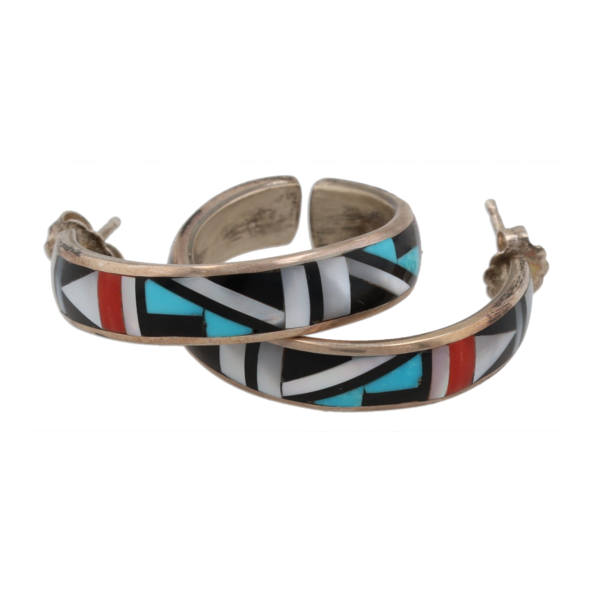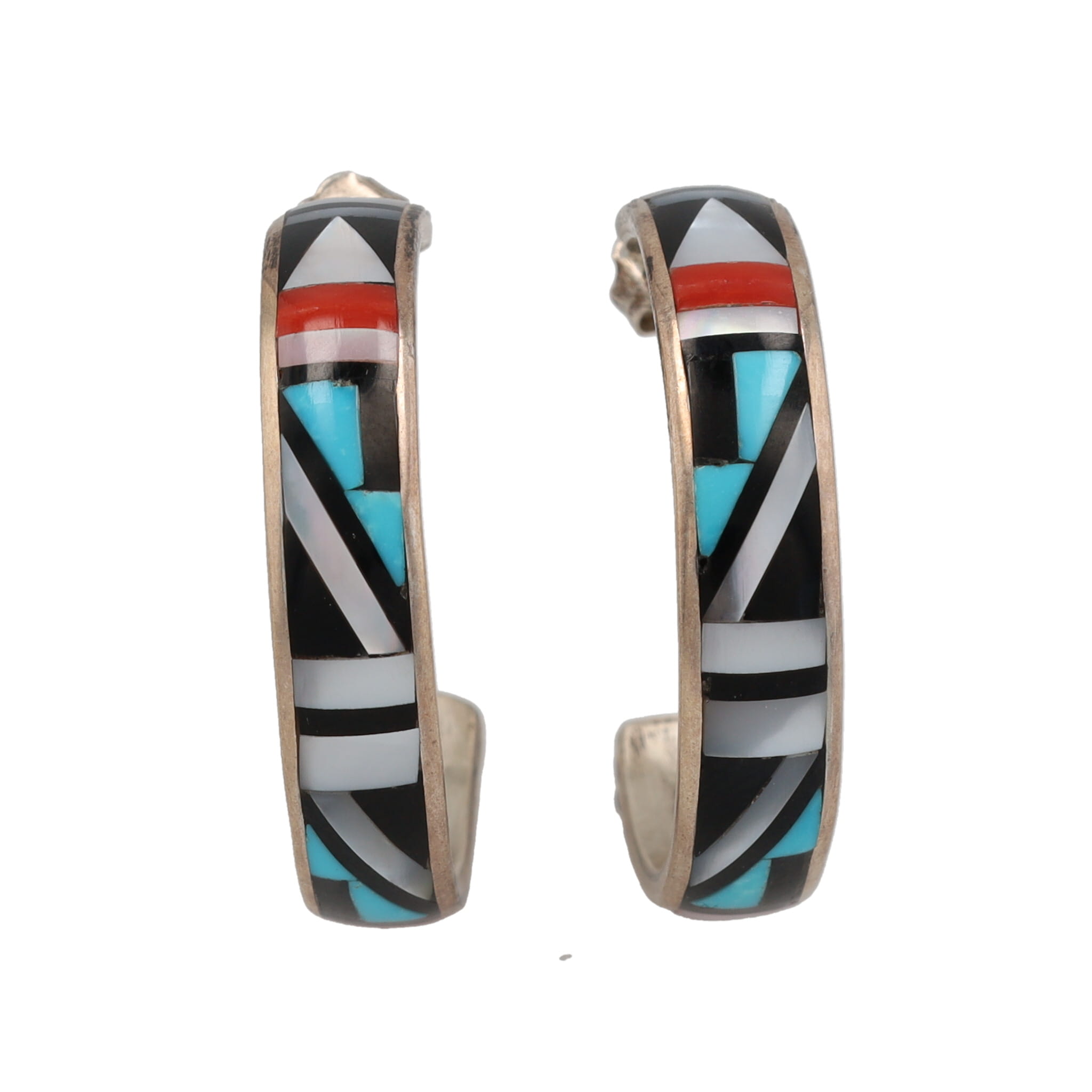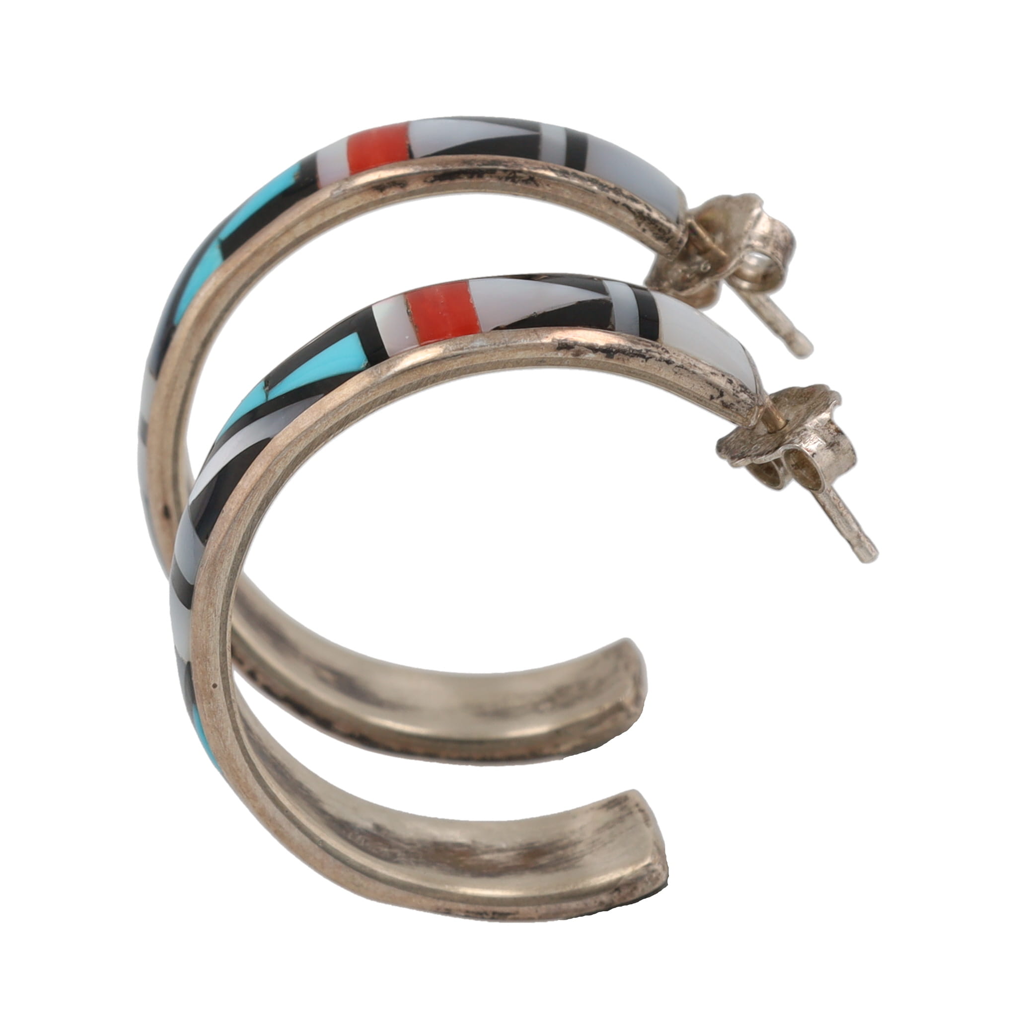 Delberta Boone Zuni Multi Stone Sterling Inlay Hoop Earrings