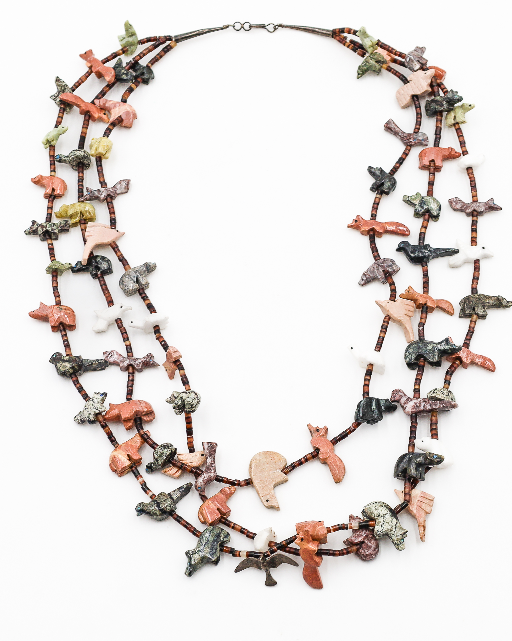Zuni Multi Stone Sterling Fetish 3 Strand Necklace 136g