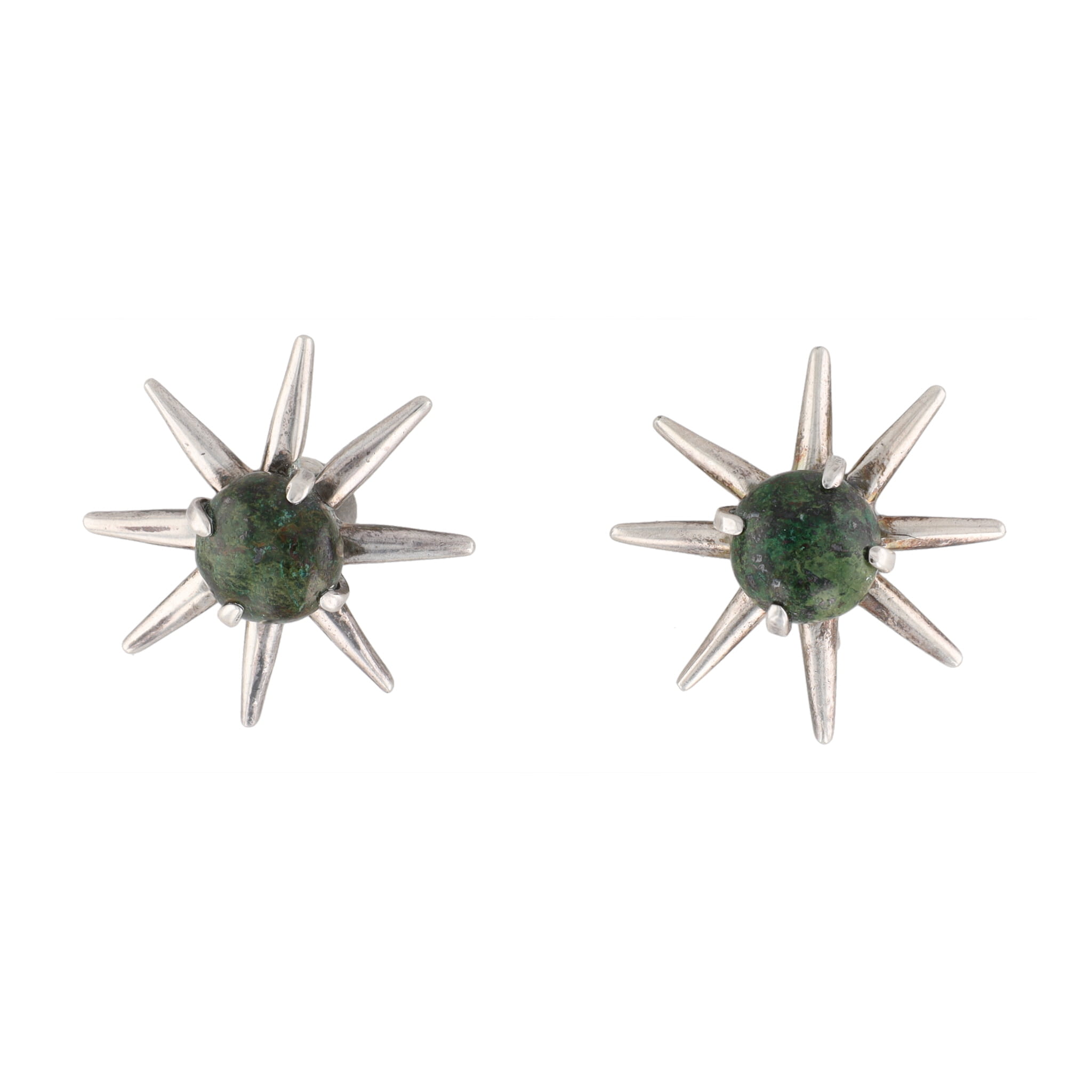 Rare Salvador Teran Jasper Sterling Starburst Earrings 16g, 1960’s
