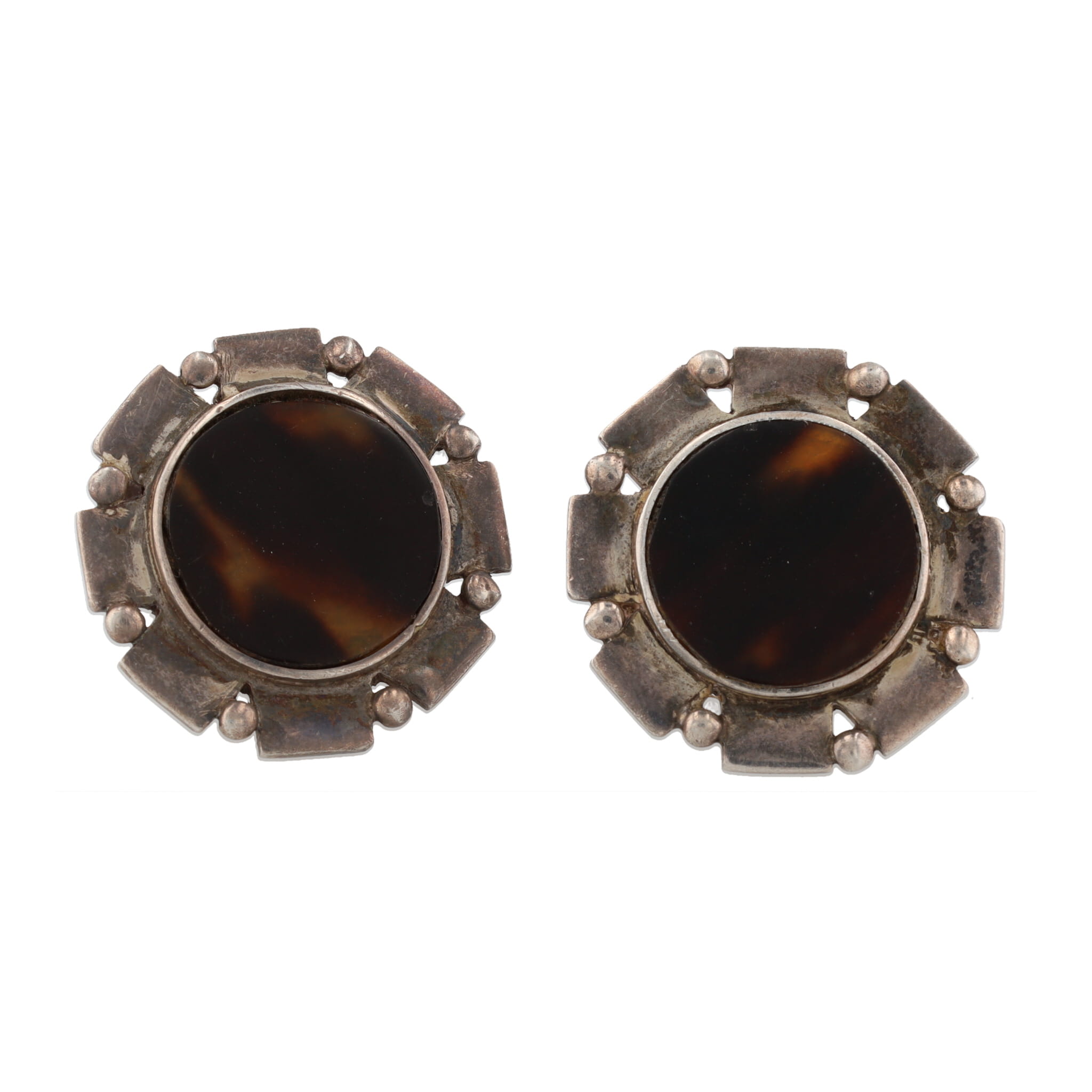 William Spratling Mexico Shell Sterling Round Cufflinks As Is 21g