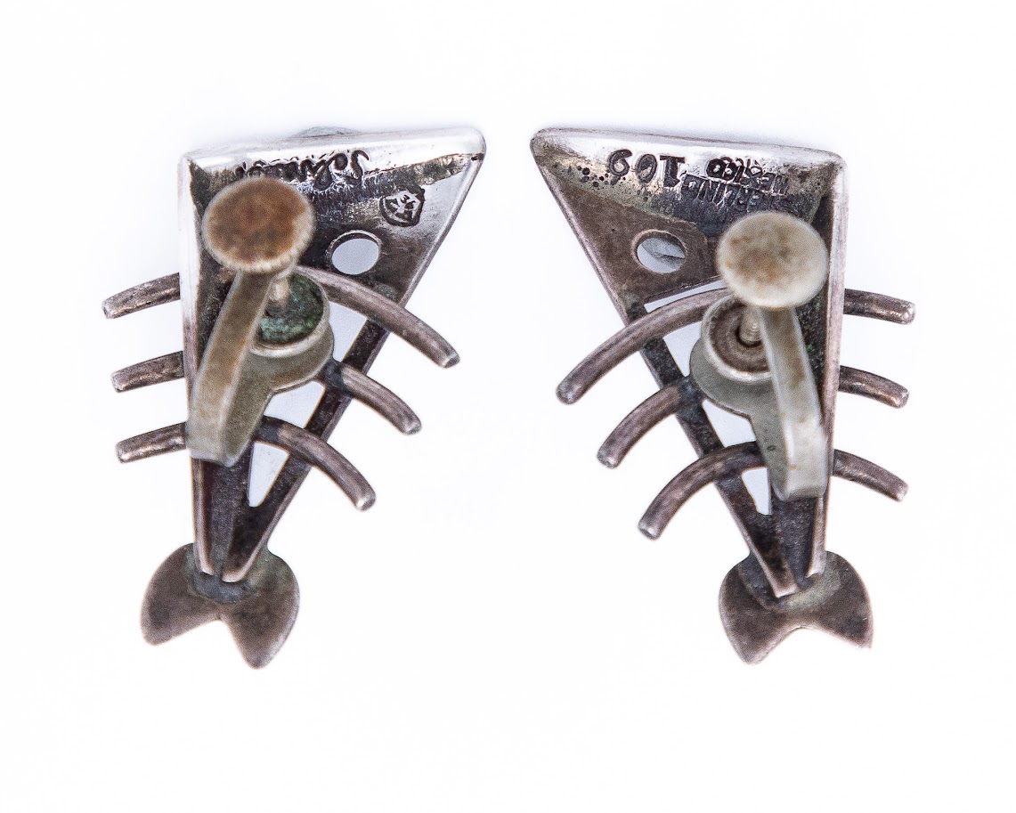 Rare Salvador Teran #109 Eagle 36 Mexico Sterling Fish Bone Earrings 10.5g