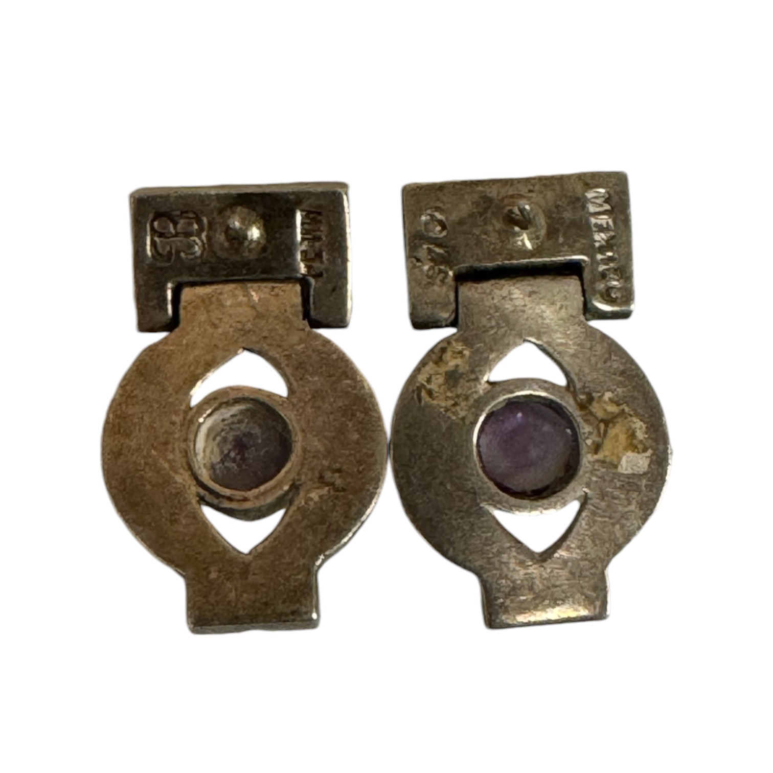 Los Ballesteros Taxco Sterling Amethyst Earrings, 970 Sterling, MM-34 20g