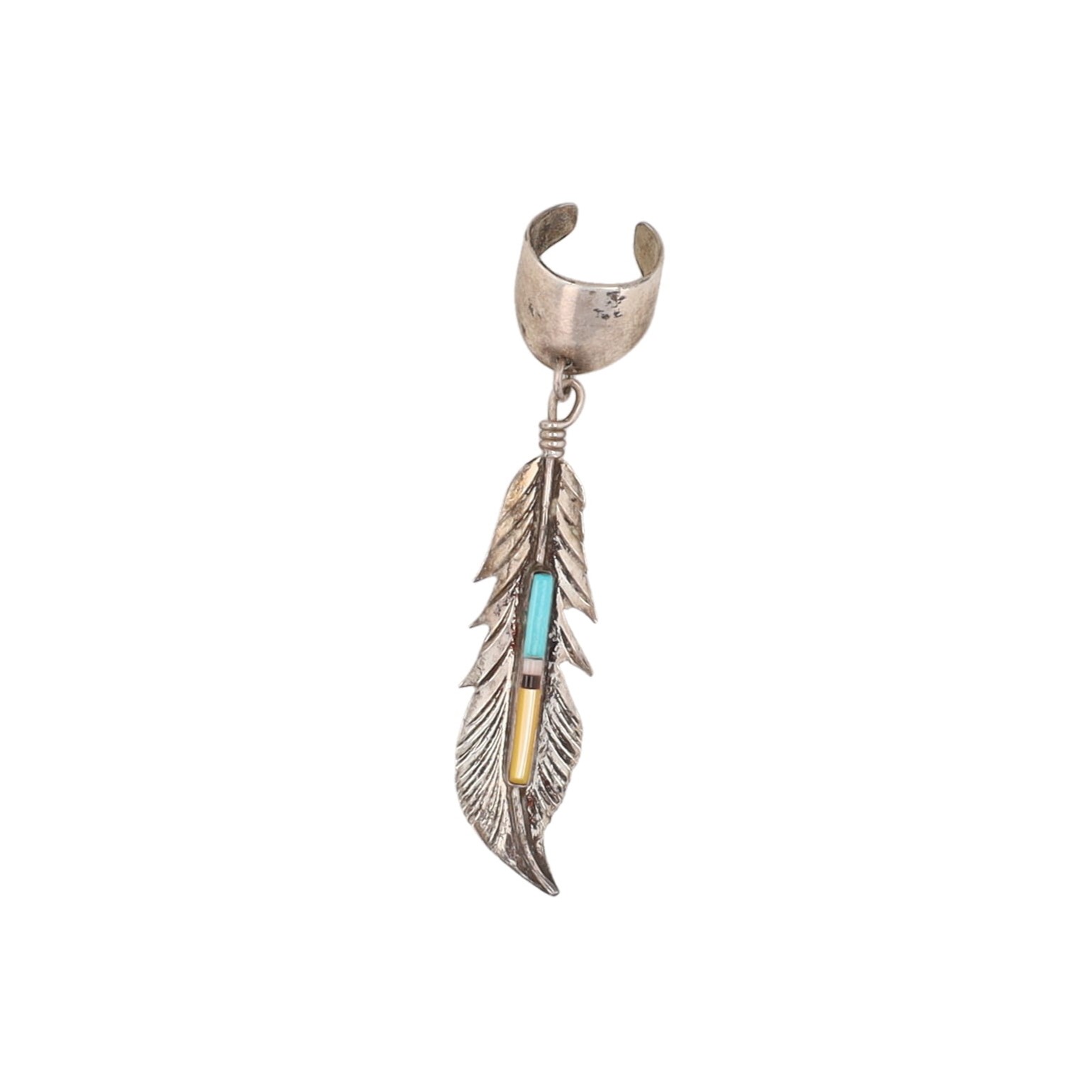 Navajo Turquoise Mother of Pearl Sterling Feather Ear Cuff 4g