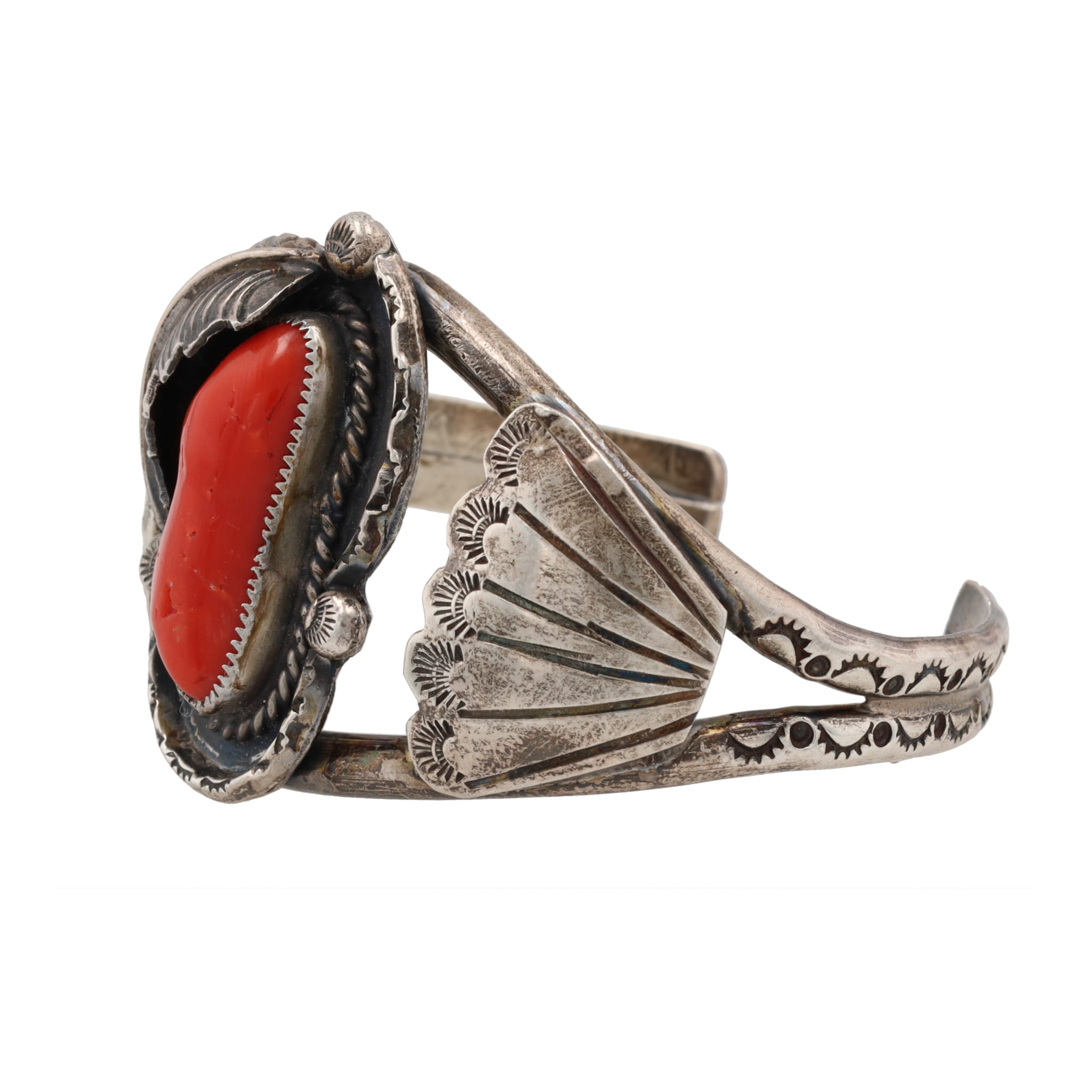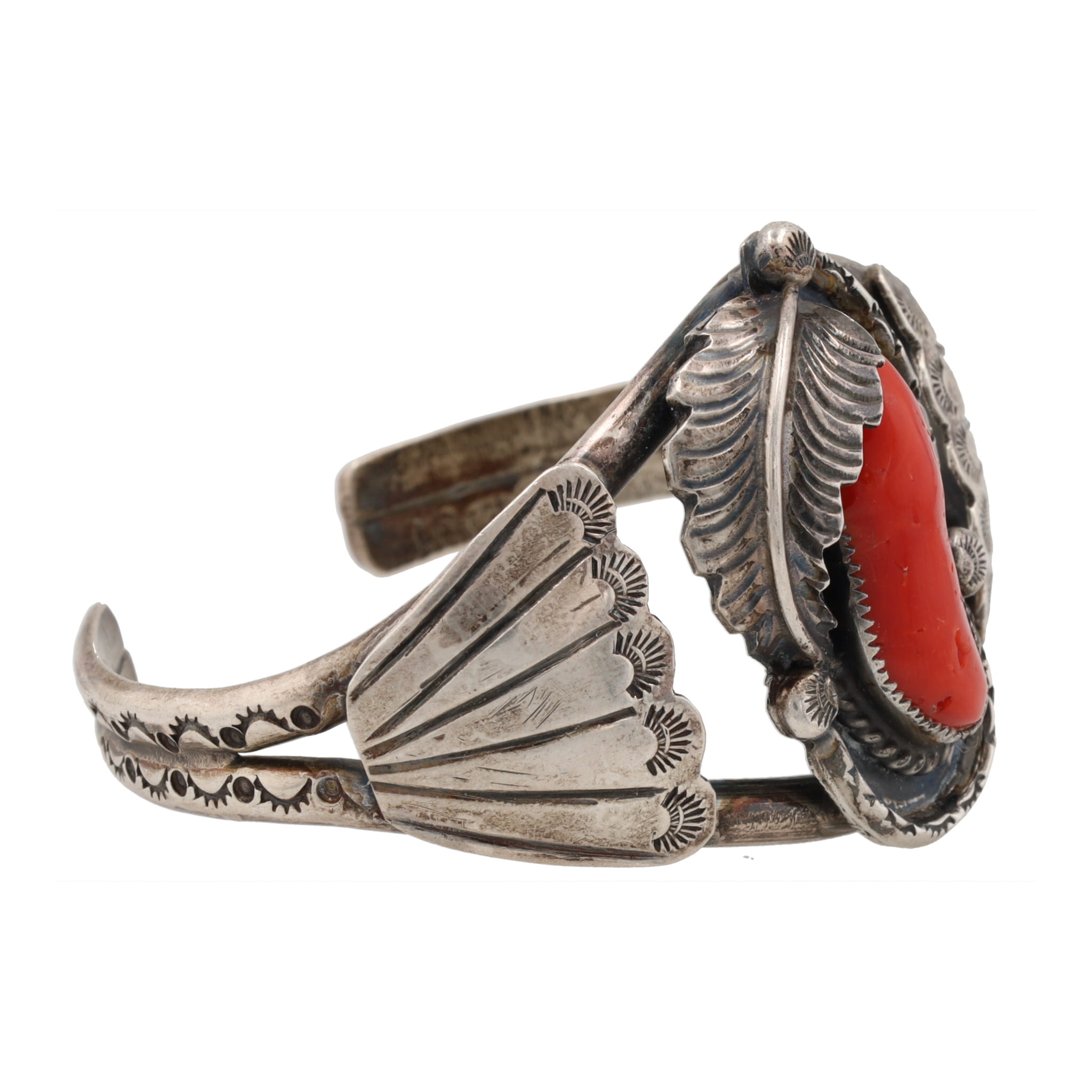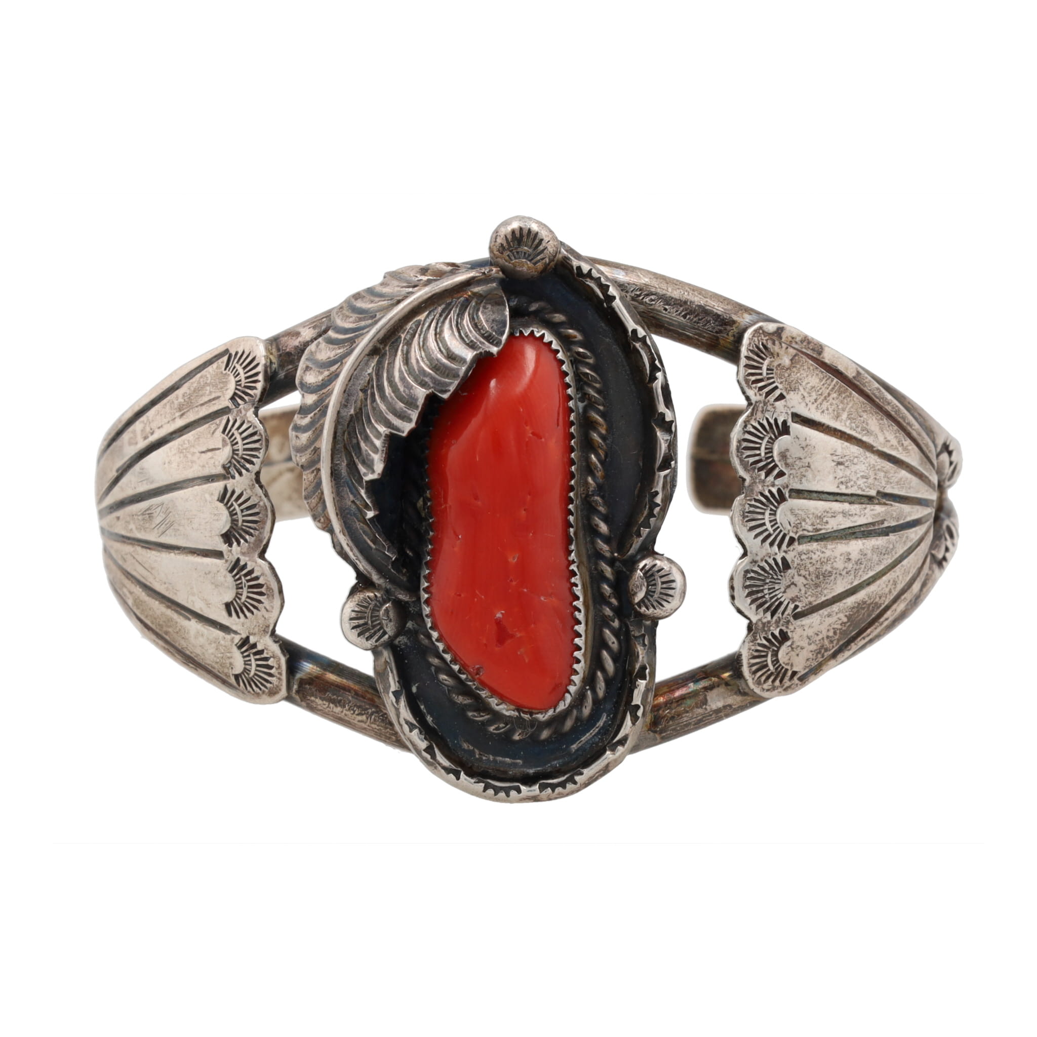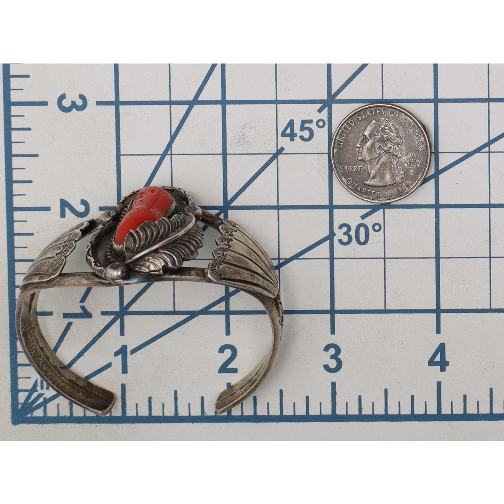 Albert Yazzie Navajo Coral Sterling Cuff Bracelet 36g
