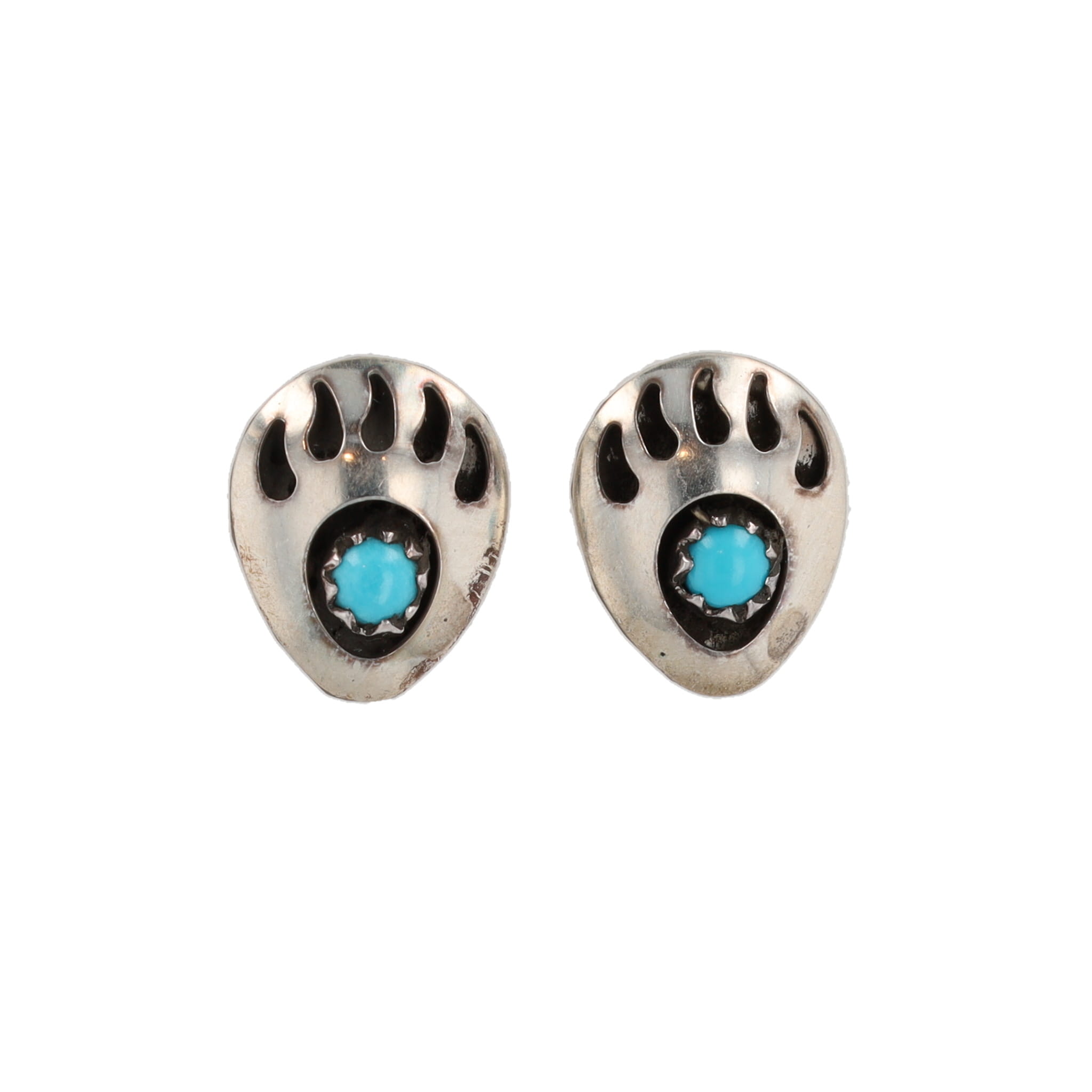 Navajo Turquoise Sterling Bear Paw Earrings 1.5g