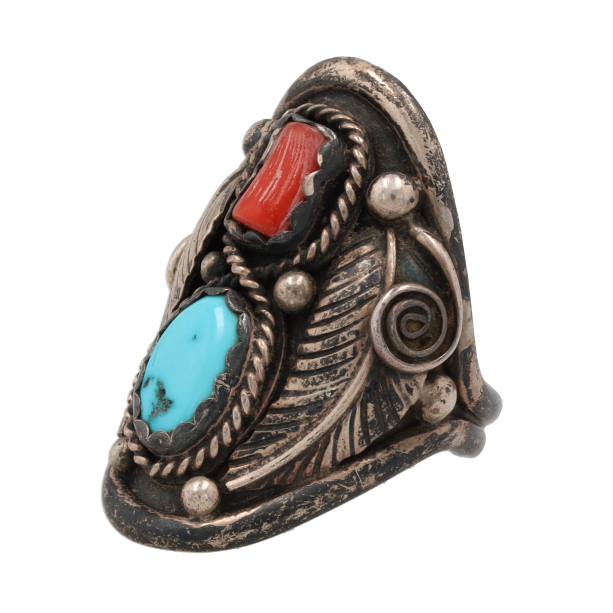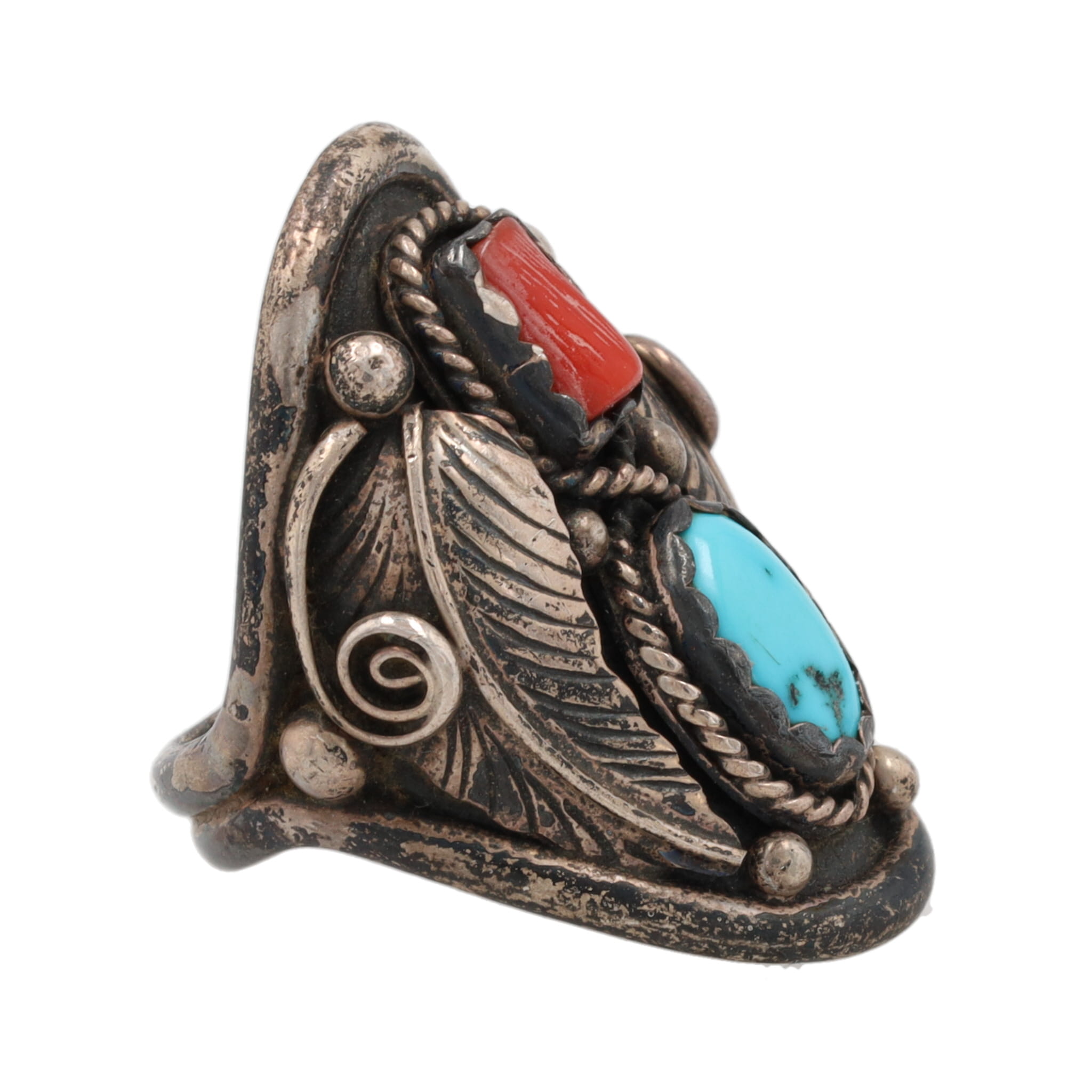 Sylvia Chee Navajo Turquoise Coral Sterling Ring Sz. 8.5, 14.5g