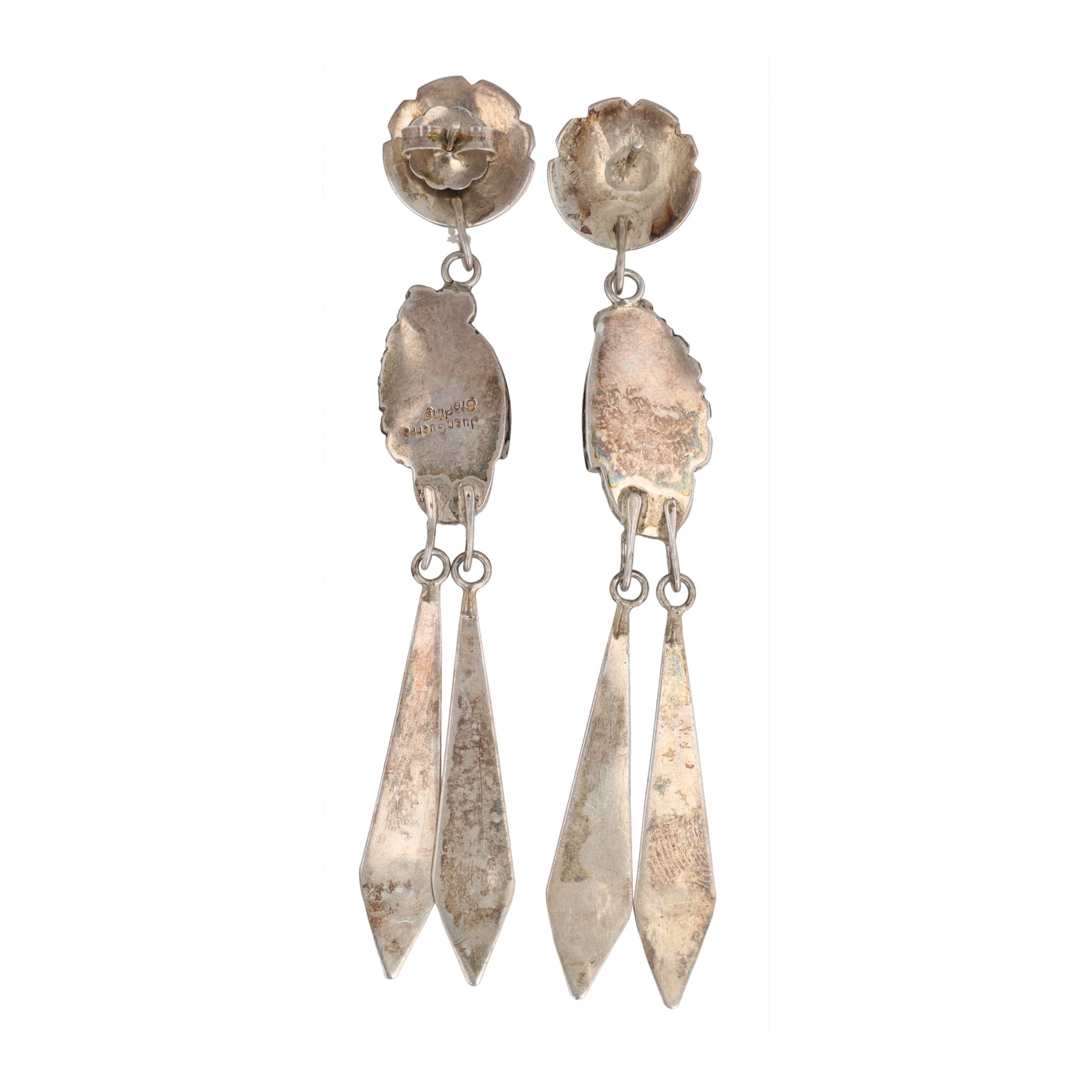 Juan Guerro Navajo Turquoise Sterling Feather Dangle Earrings 14g