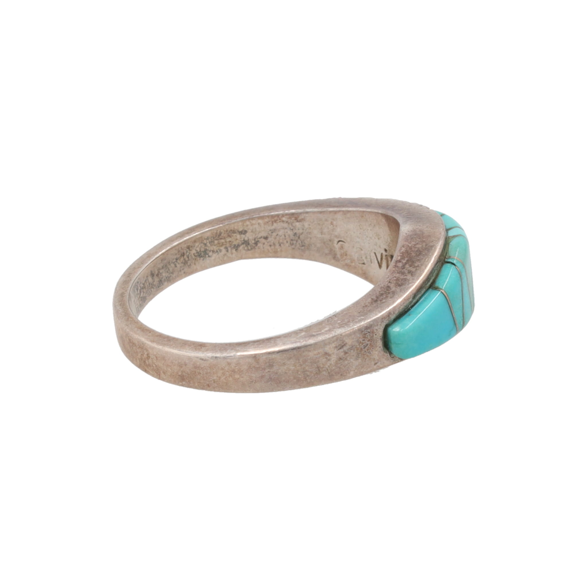 Calvin Begay Navajo Turquoise Sterling Inlay Ring Sz. 7.75, 5.5g