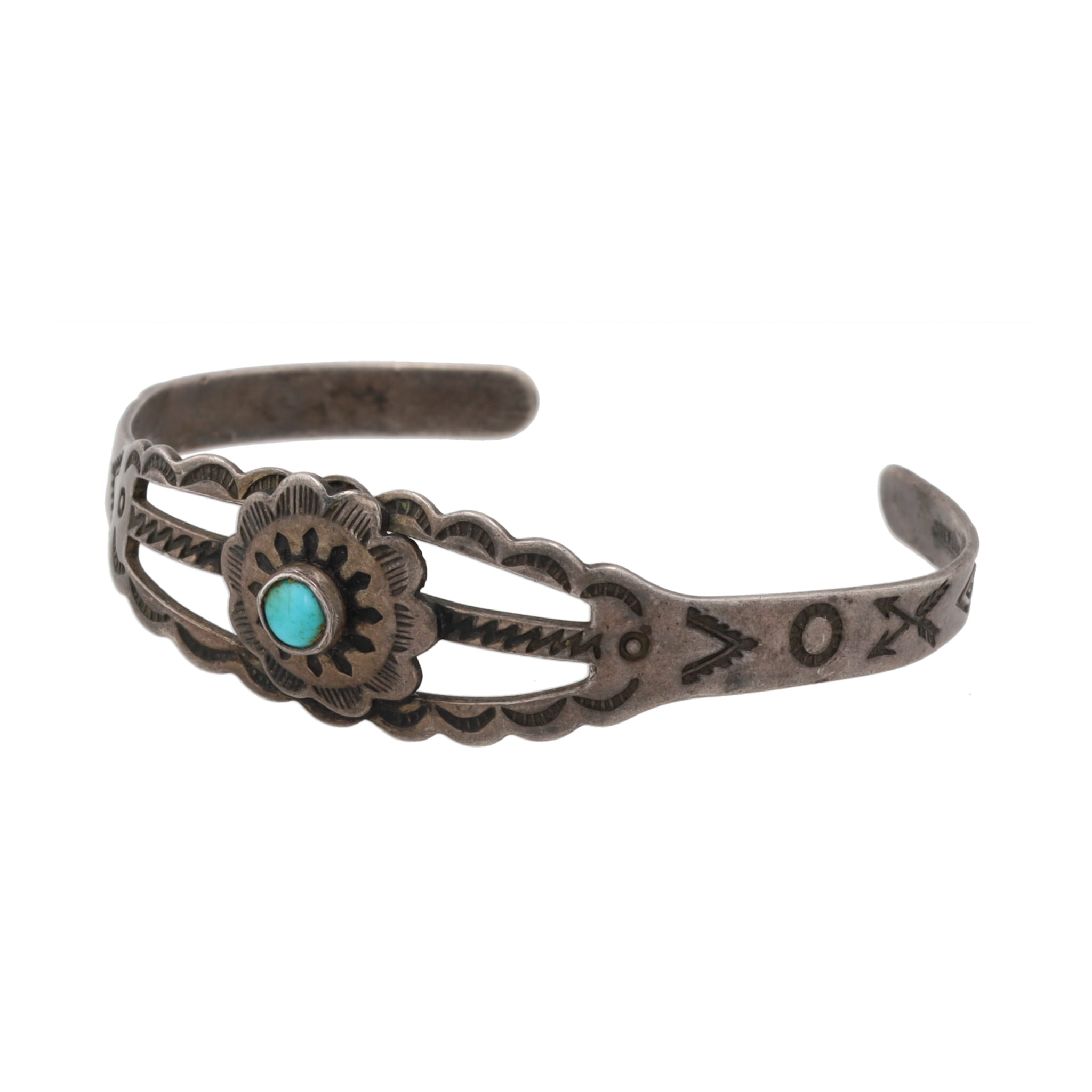 Fred Harvey Era Navajo Turquoise Sterling Childrens Cuff Bracelet 5.5g