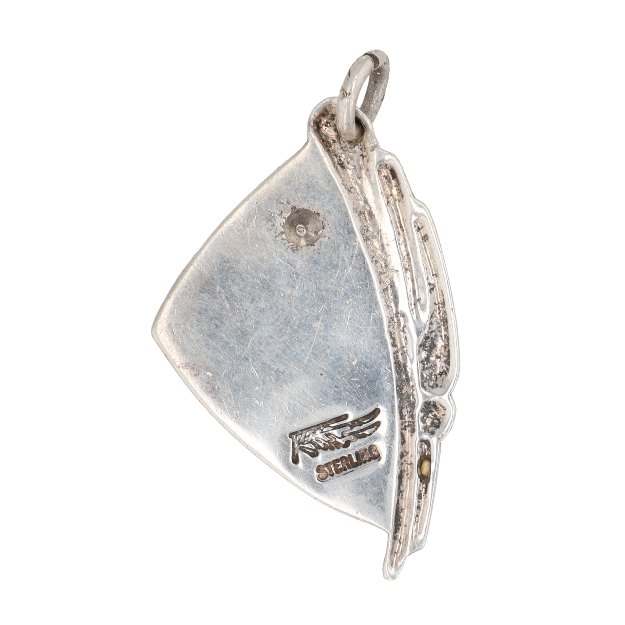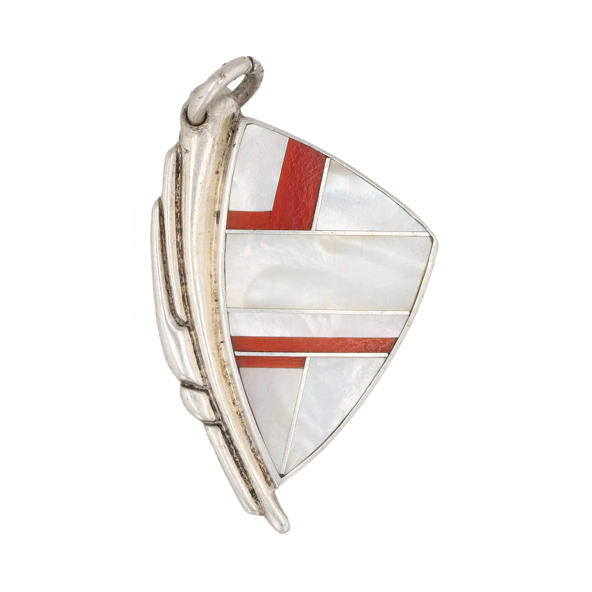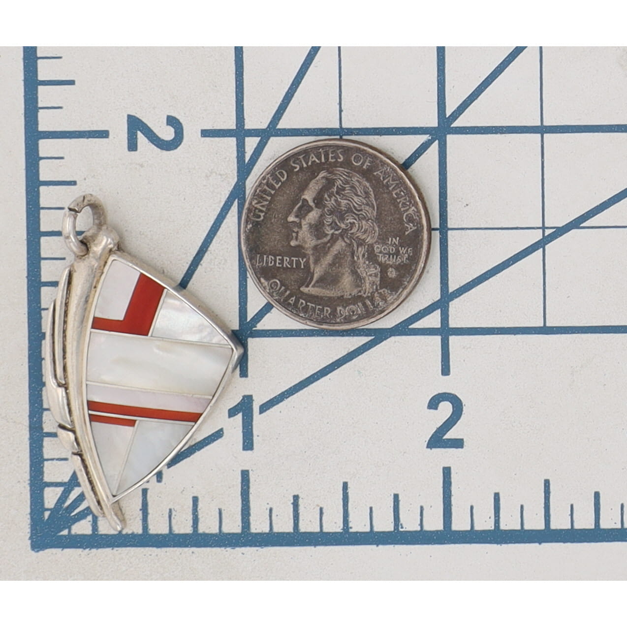 Ray Tracey Knifewing Navajo Coral Mother Of Pearl Sterling Inlay Pendant 9.5g