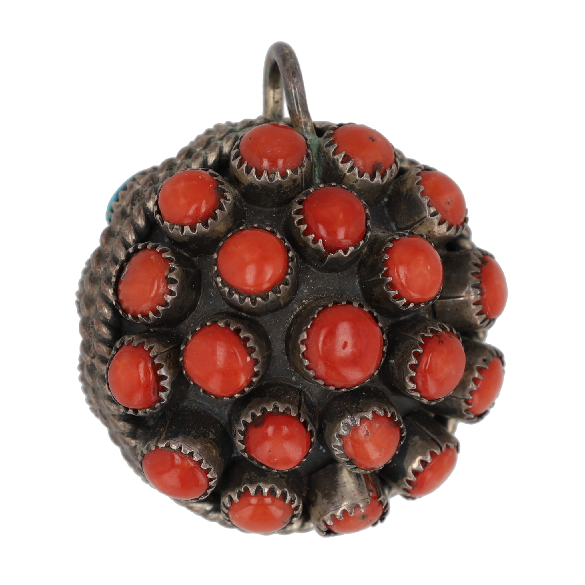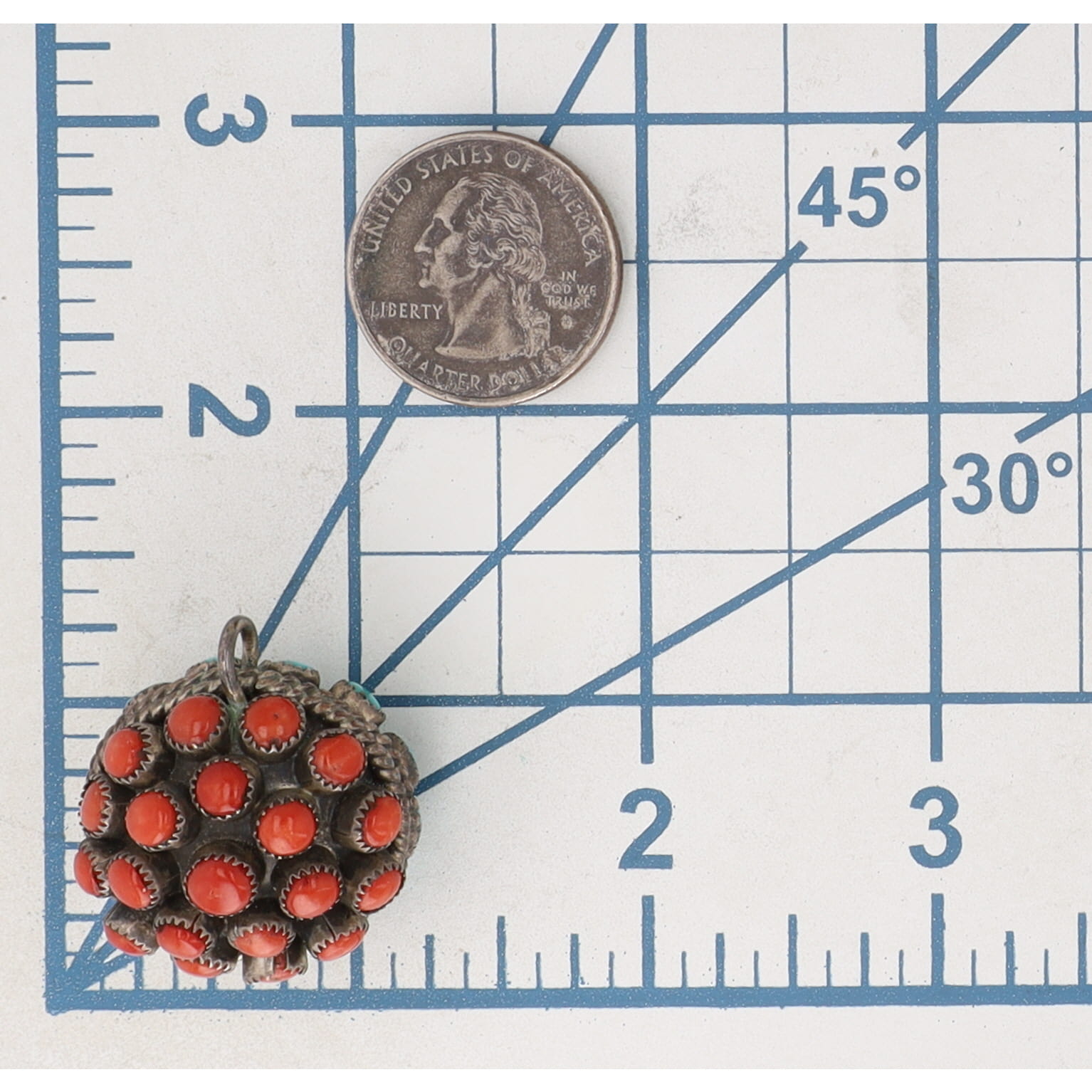 Navajo Coral Turquoise Sterling Reversible Pendant 15g